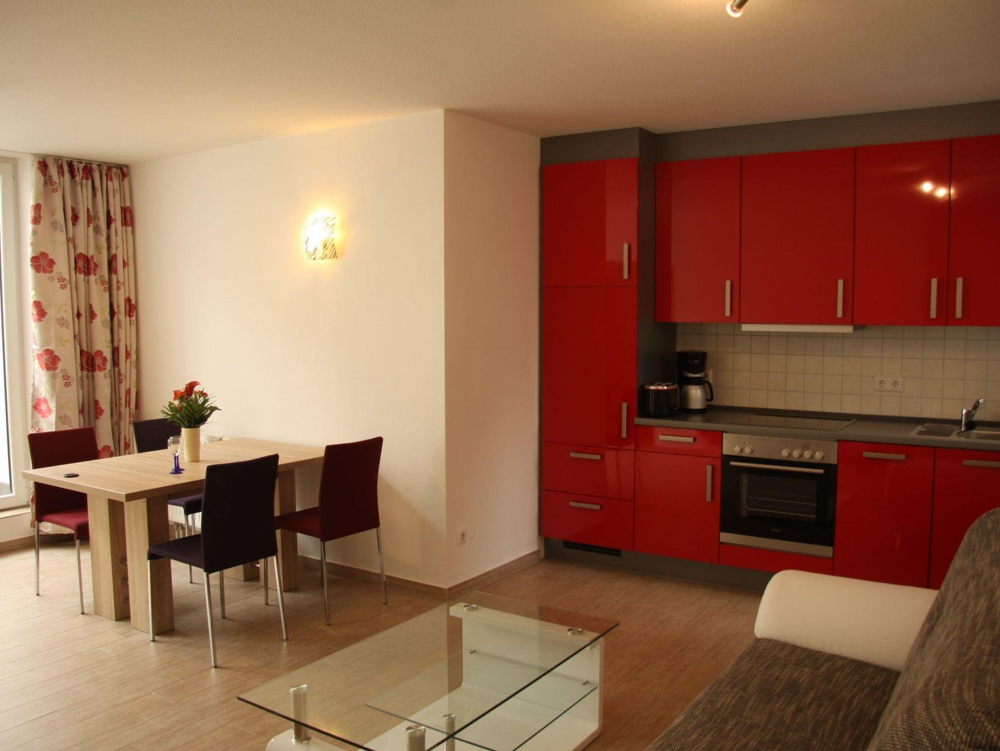 - moderne, komplett ausgestattete Küche (Ceranfeld, Herd mit Backofen, Geschirrspülmaschine, Kühlschrank mit 4*Eisfach, lKaffeemaschine, Wasserkocher)