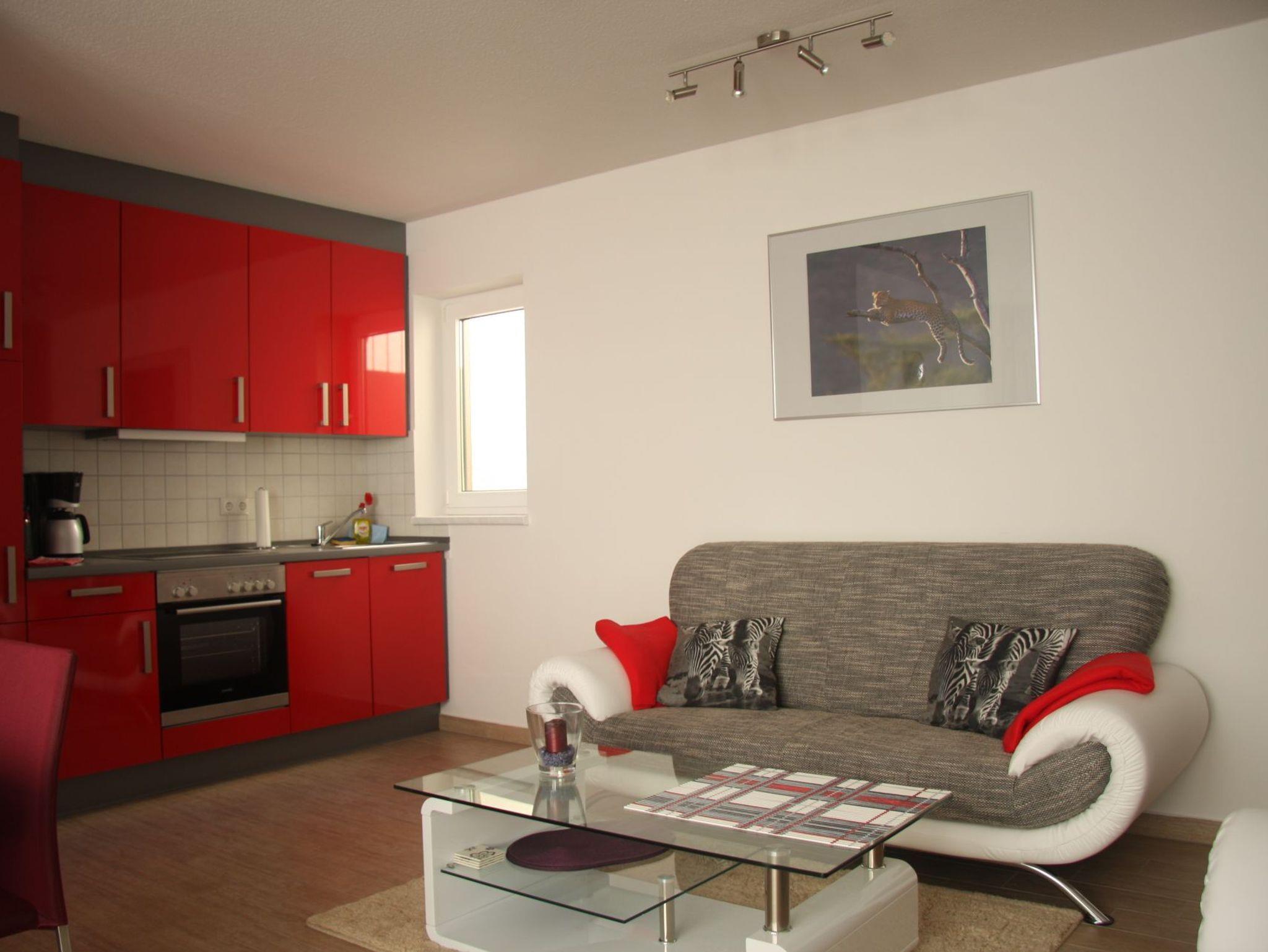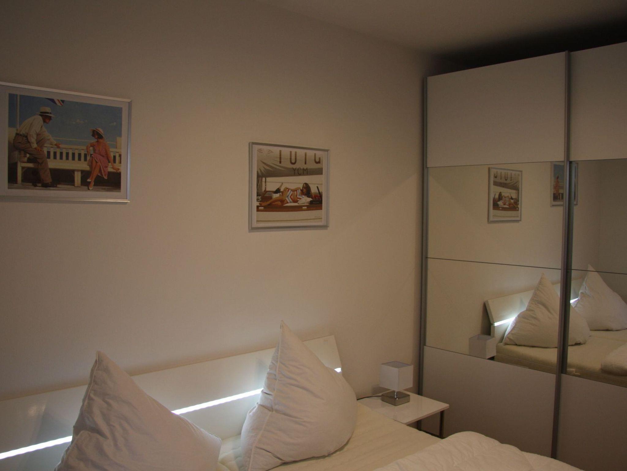 Die in 2014 neu gestaltete, 55 qm große Souterrain-Wohnung verfügt über zwei getrennte Schlafzimmer und eignet sich deshalb sowohl für Familien, als auch für zwei Paare: ein Zimmer mit Doppelbett und ein weiteres mit zwei Einzelbetten, die zusammen gestellt werden können, einem Badezimmer, einem hellen offenen Wohn- und Essbereich mit Zugang zur Terrasse und einer modernen, komplett ausgestatteten Küche. Die Ferienwohnung ist sehr komfortabel mit Waschmaschine, Geschirrspülmaschine, Parkett und Fußbodenheizung ausgestattet, ein Auto-Stellplatz ist vorhanden.
