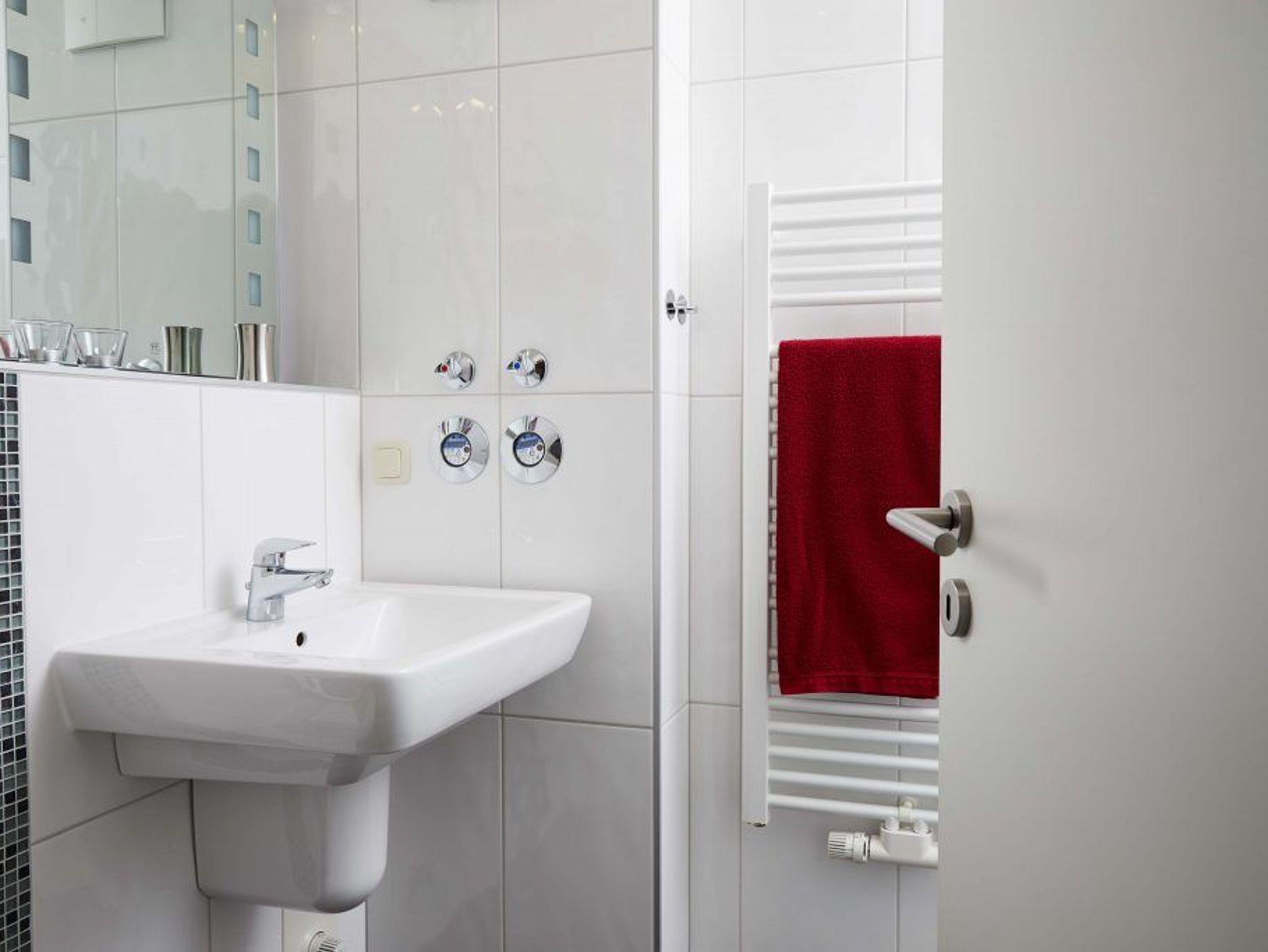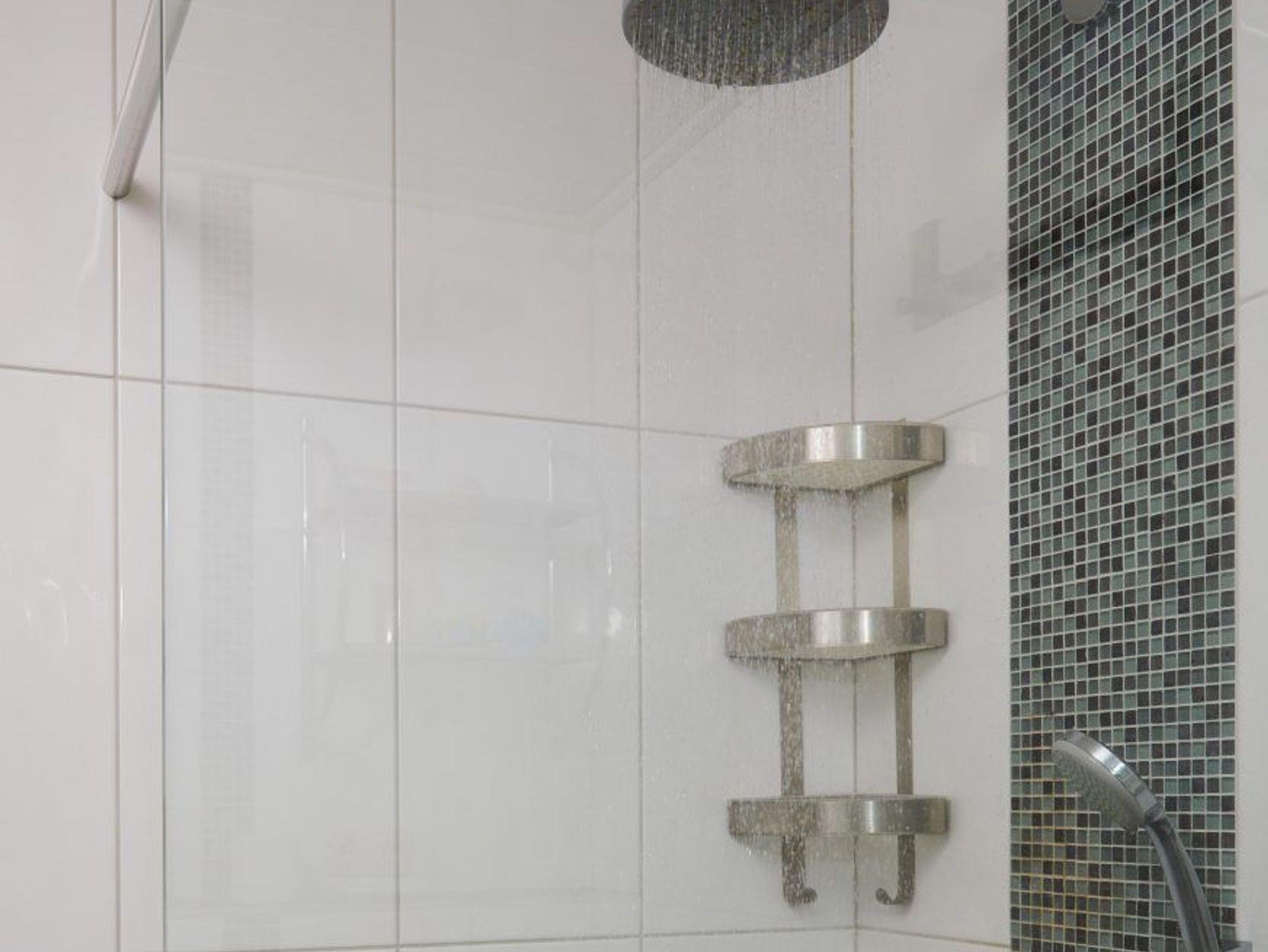 Das Badezimmer verfügt über eine ebenerdige Dusche (160 x 90 cm) und Fußbodenheizung. Ein Schlafzimmer ist mit einem Doppelbett (180 x 200) und 32'' LED-Flachbildschirm ausgestattet. Im zweiten Schlafzimmer sind zwei Einzelbetten (80 x 190) und ein kleiner Kleiderschrank vorhanden. Babybett und Hochstuhl stehen bei Bedarf kostenlos zur Verfügung.