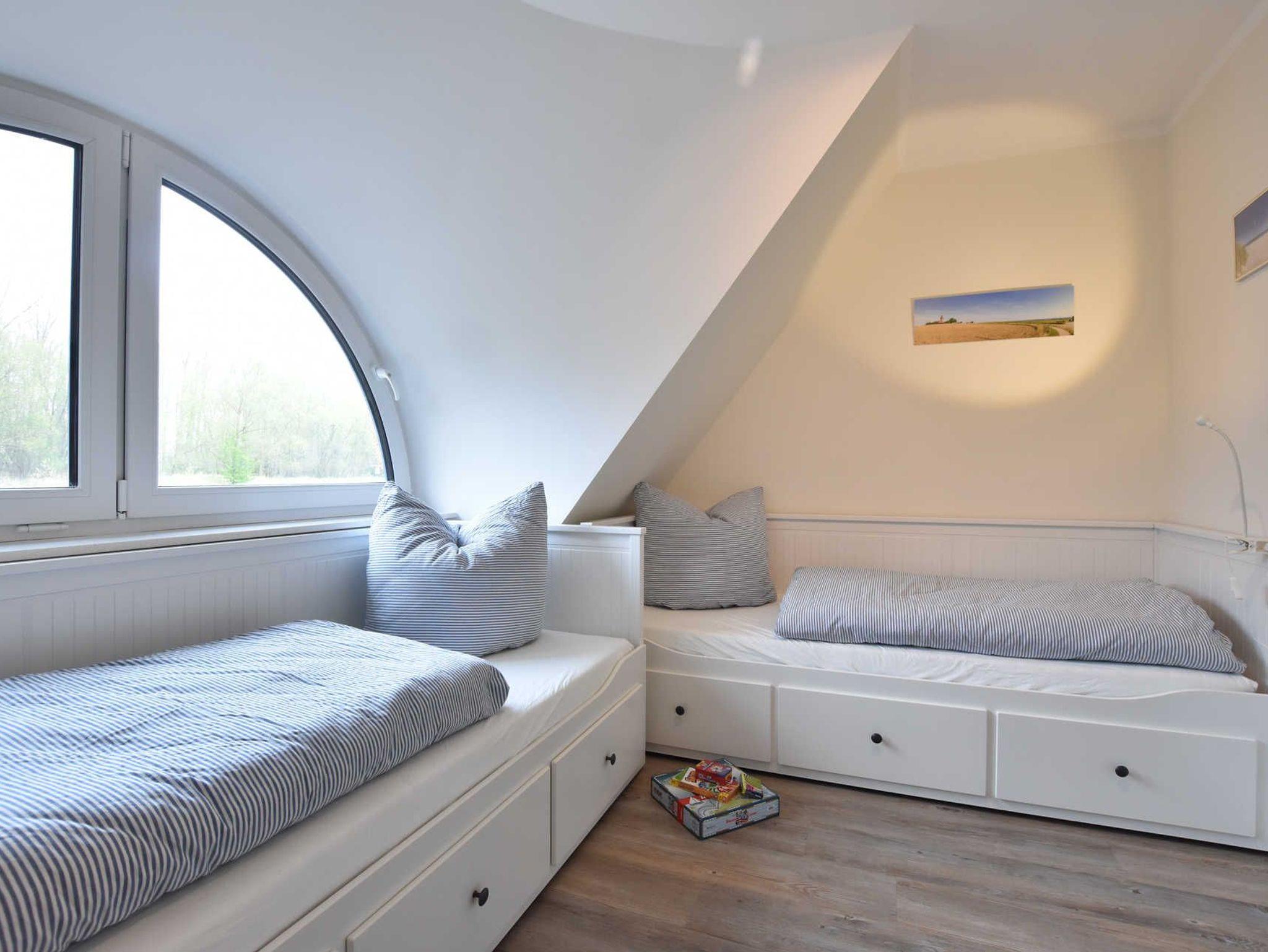Insgesamt finden Sie hier 6 separate Schlafzimmer (3x je 1 Doppelbett + 2x je 2 Einzelbetten + 1x 1 Einzelbett). In der linken Haushälfte befindet sich ein Kamin, wo man einen erlebnisreichen Tag gemütlich ausklingen lassen kann.