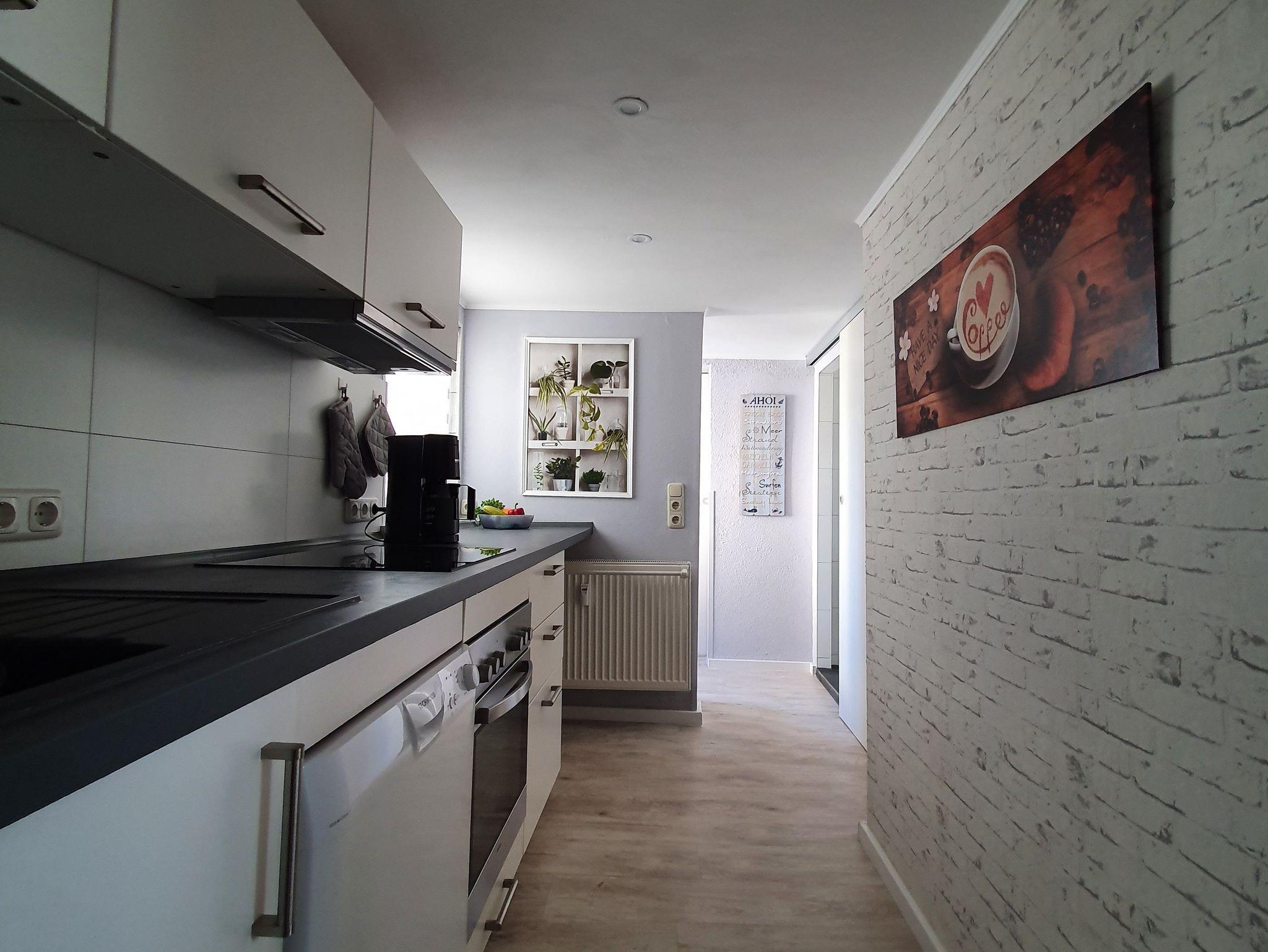 Es erwartet Sie eine Einbauküche mit allen notwendigen Geräten (wie Herd mit Ceranfeld, Geschirrspüler, Kühlschrank, Kaffeemaschine, Wasserkocher, Mikrowelle und natürlich genügend Geschirr und Küchenutensilien
