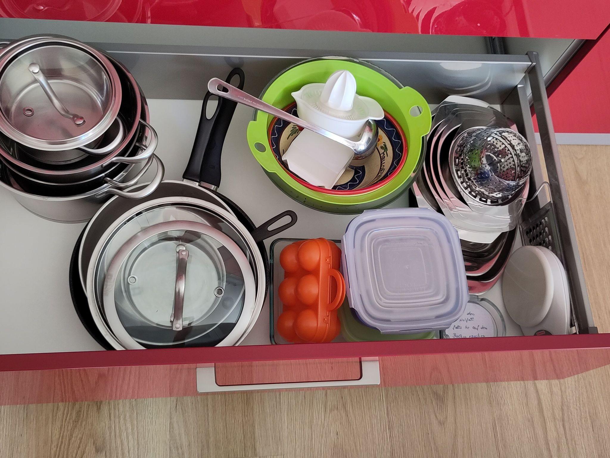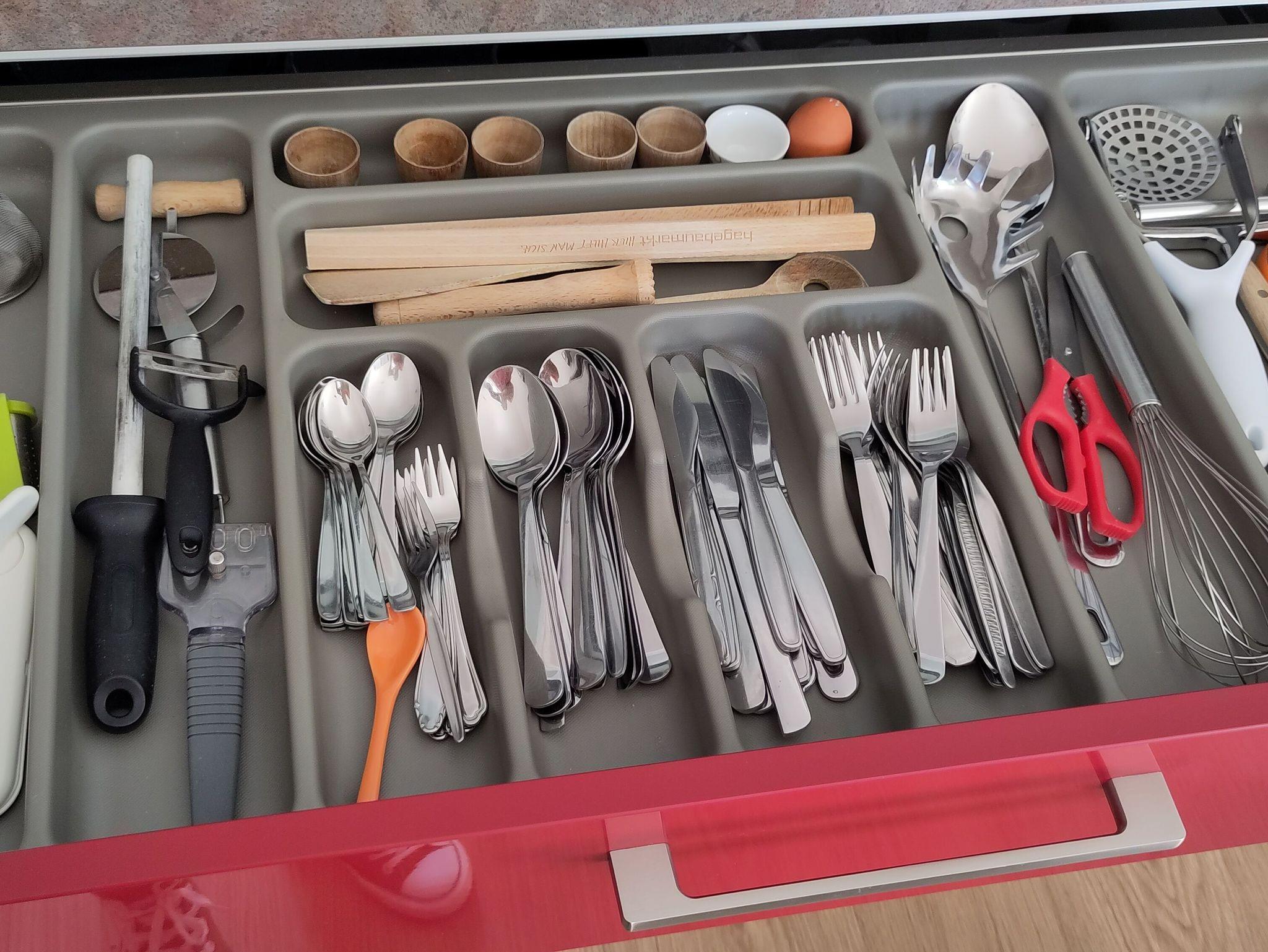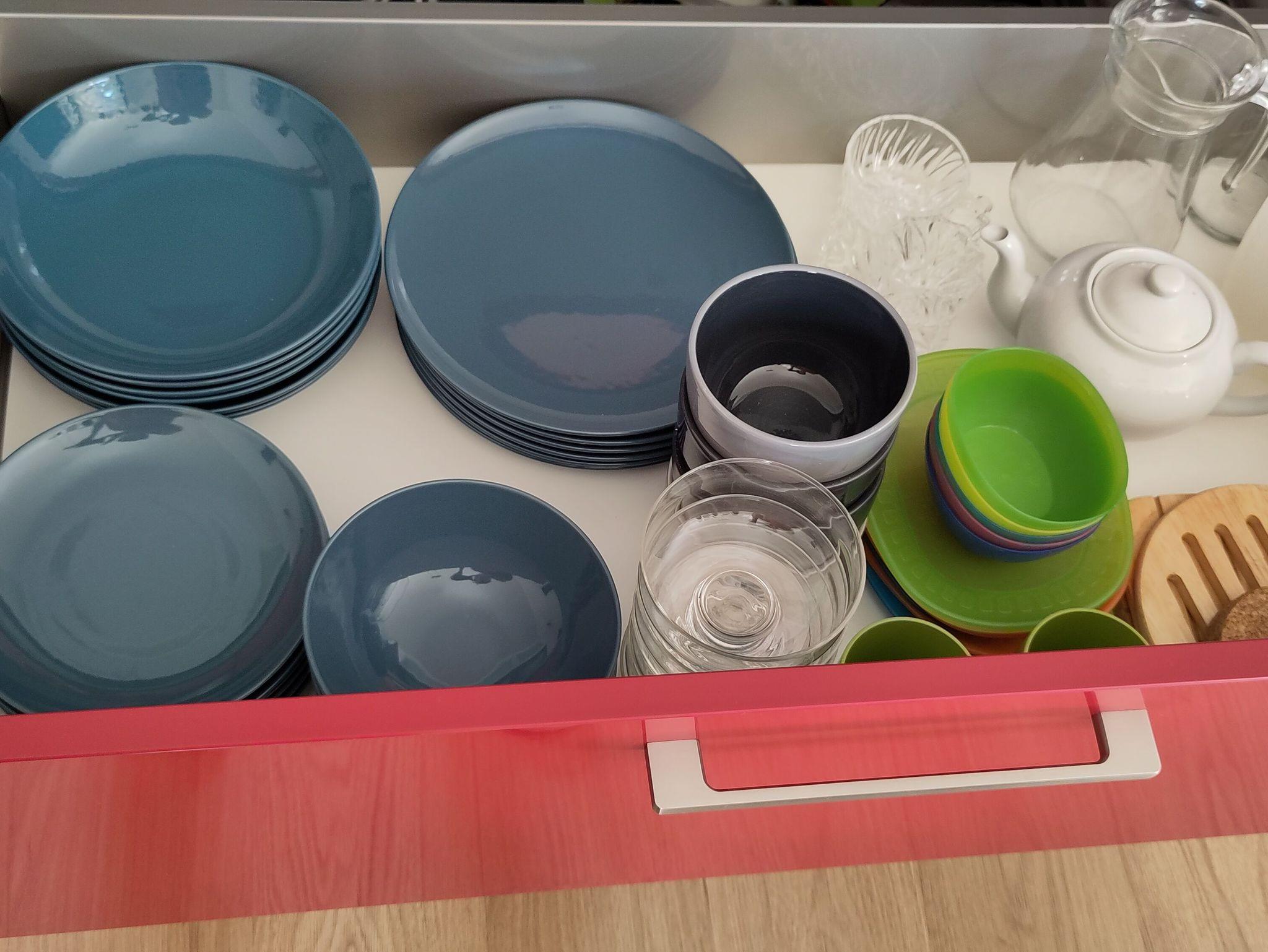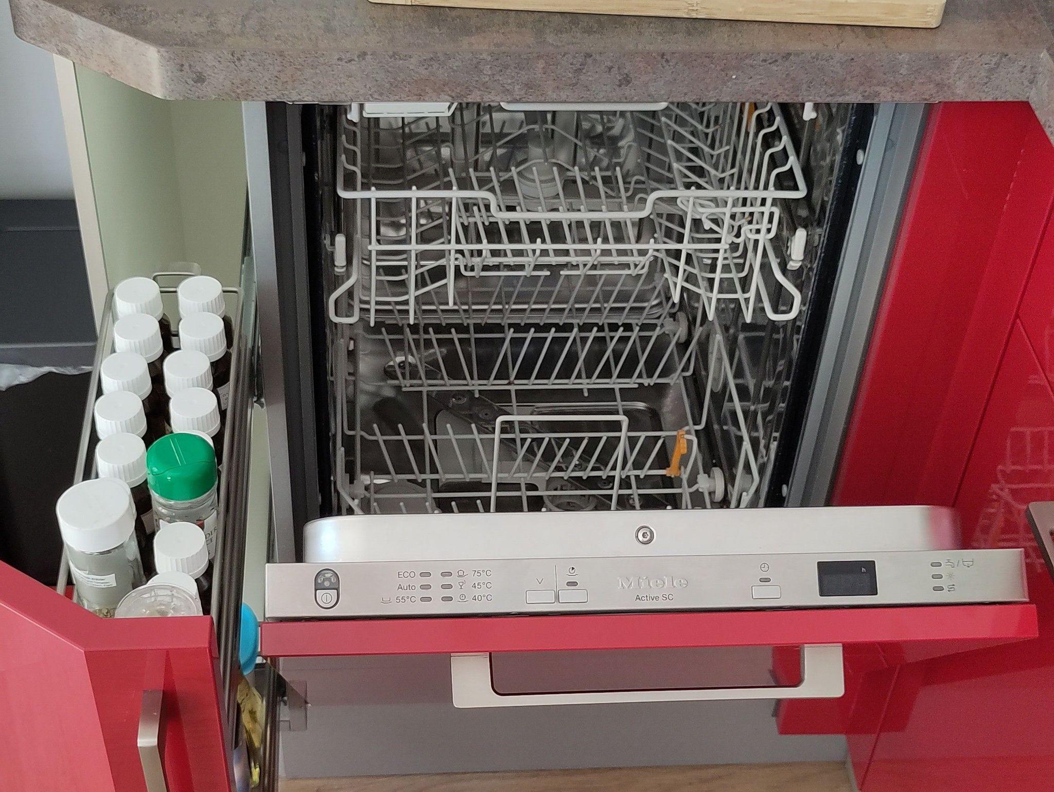 Voll ausgestattete Küche mit Ceran-Kochfeld, Backofen, Geschirrspüler, Espressokocher. Filter-Kaffeemaschine, elektrischer Wasserkocher und Toaster sind selbstverständlich. Ebenso der superleise (34dB) Kühlschrank mit Gefrierfach.