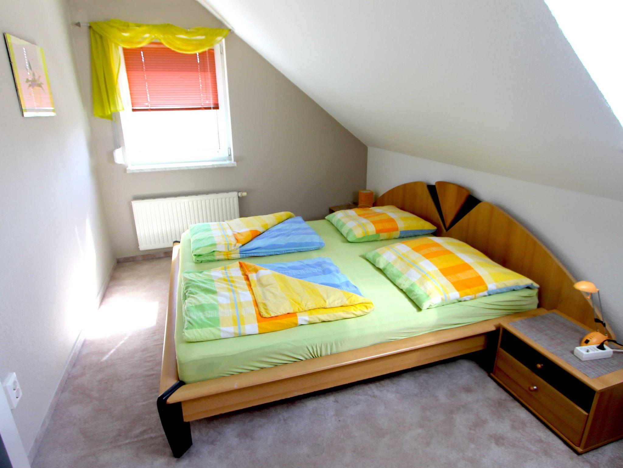 Das Ferienhaus verfügt über zwei separate Schlafzimmer im Obergeschoss ( 1 x Doppelbett sowie 1 Einzelbett und 1 Futonbett ).