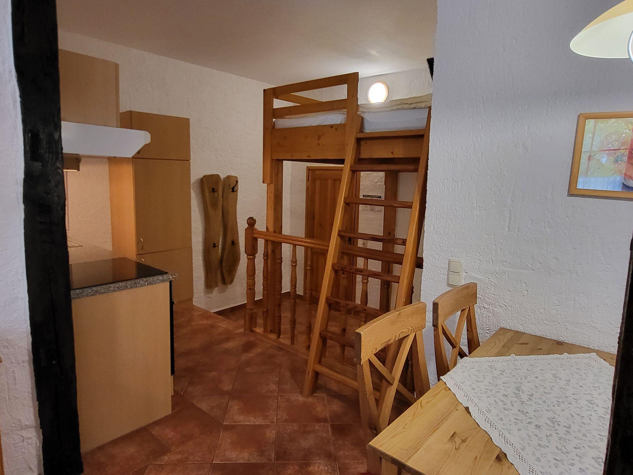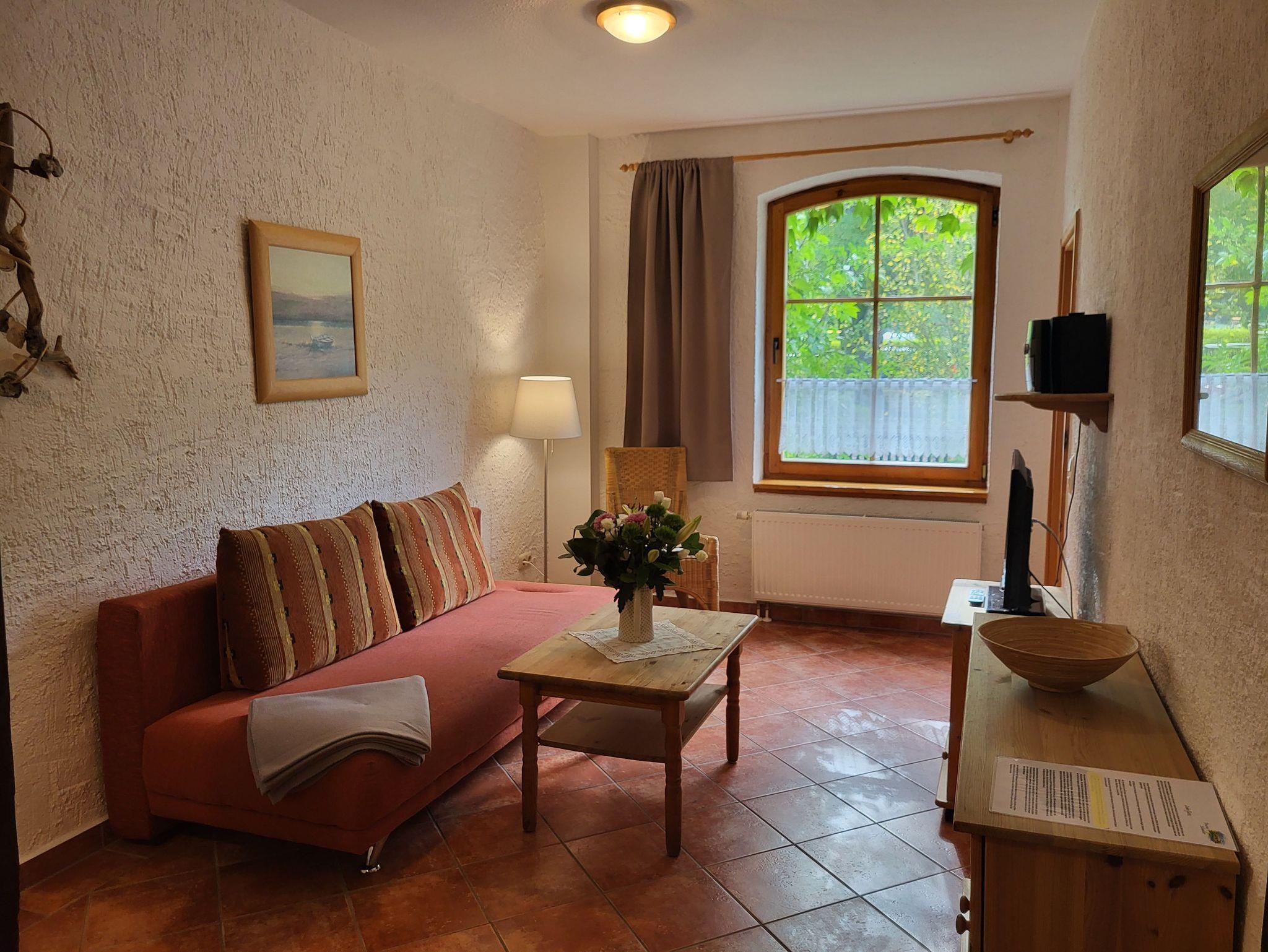 Das 2-Zimmer-Appartement ist landseitig mit separatem Schafzimmer, im Wohnzimmer mit Schlafboden, im Erdgeschoß und 46 qm groß. Dieses Apartment ist erst für Kinder ab 10 Jahren geeignet, da der Schlafboden im Wohnzimmer nur über eine Leiter erreichbar ist.