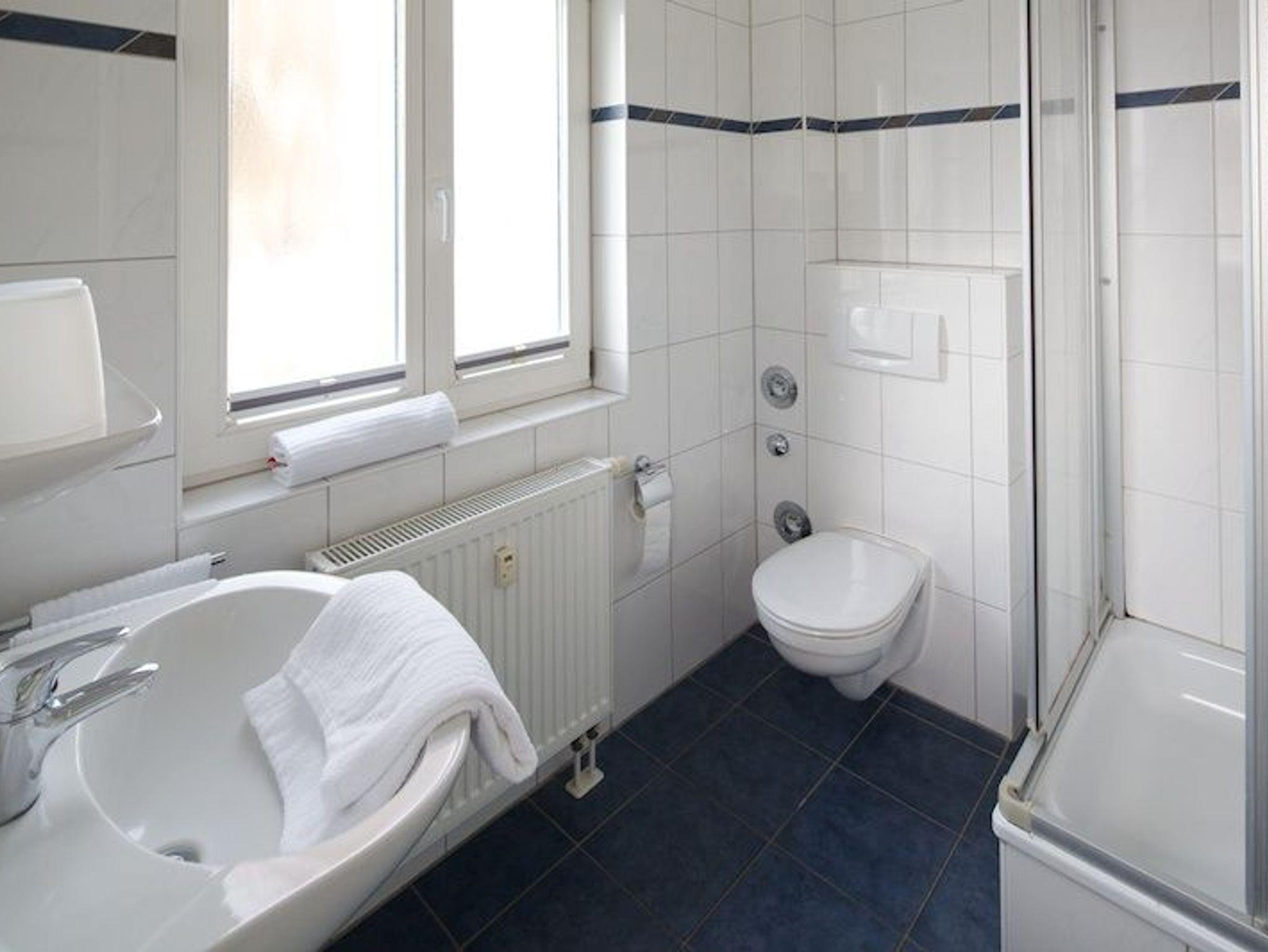 Die beiden Schlafzimmer befinden sind im oberen Bereich der Wohnung. Vom größeren Schafzimmer mit Doppelbett ( 2 einzelne Matratzen mit durchgehendem Topper) hat man Ausblick auf das Salzhaff. Das kleinere Schlafzimmer ist mit zwei einzelnen Betten ausgestattet.