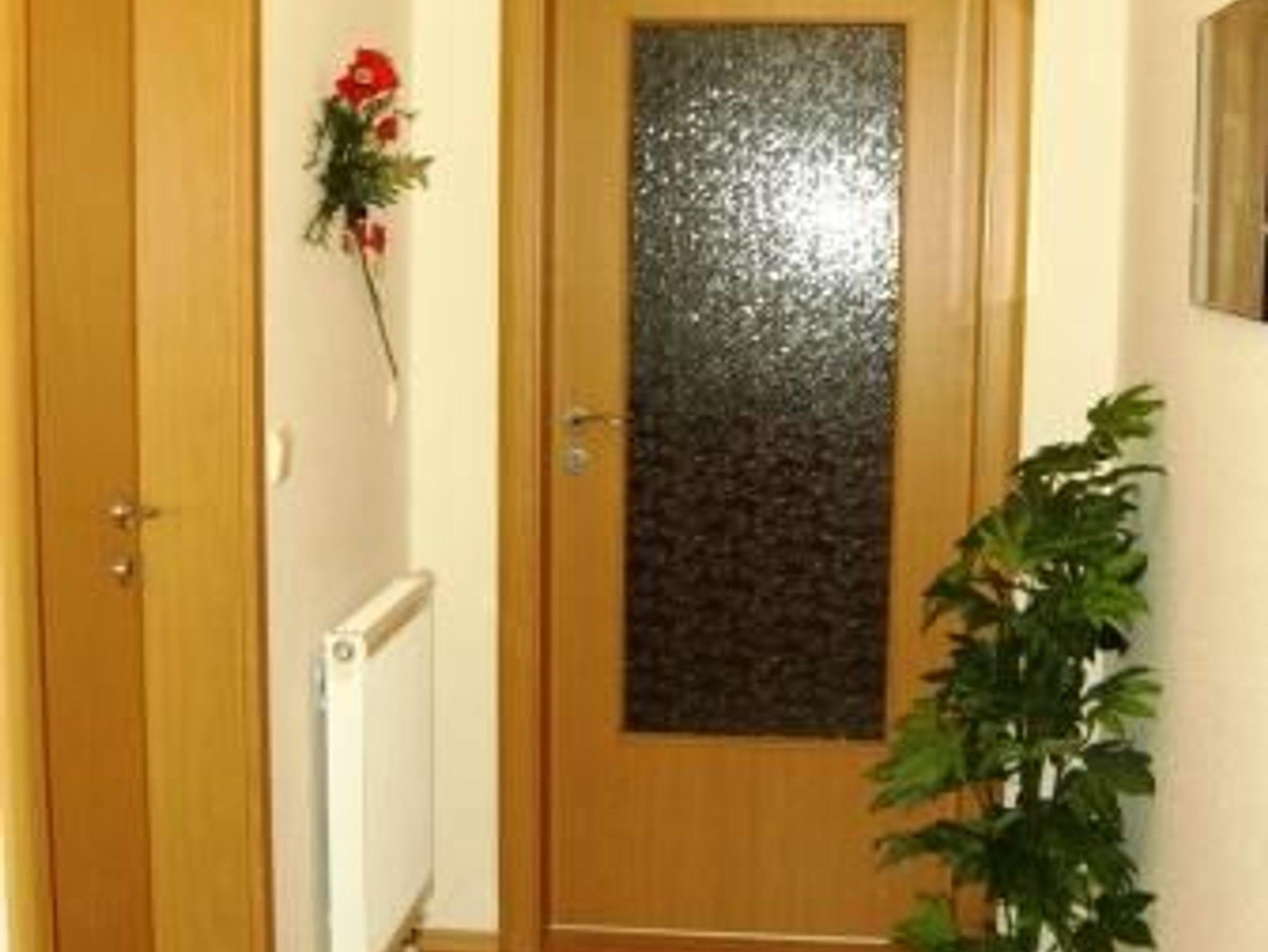 Die Wohnung ist für max. 4 Personen gut geeignet. Sie umfasst ein helles, sonniges Wohnzimmer mit integrierter Pantryküche, ein Schlafzimmer mit Doppelbett, ein Kinderzimmer mit Doppelstockbett, in dem auch Erwachsene reichlich Platz finden, sowie ein Bad mit Dusche und Fenster. An der Westseite mit Zugang vom Wohnzimmer befindet sich der Balkon. Alle Zimmer sind über einen geräumigen Korridor erreichbar.
