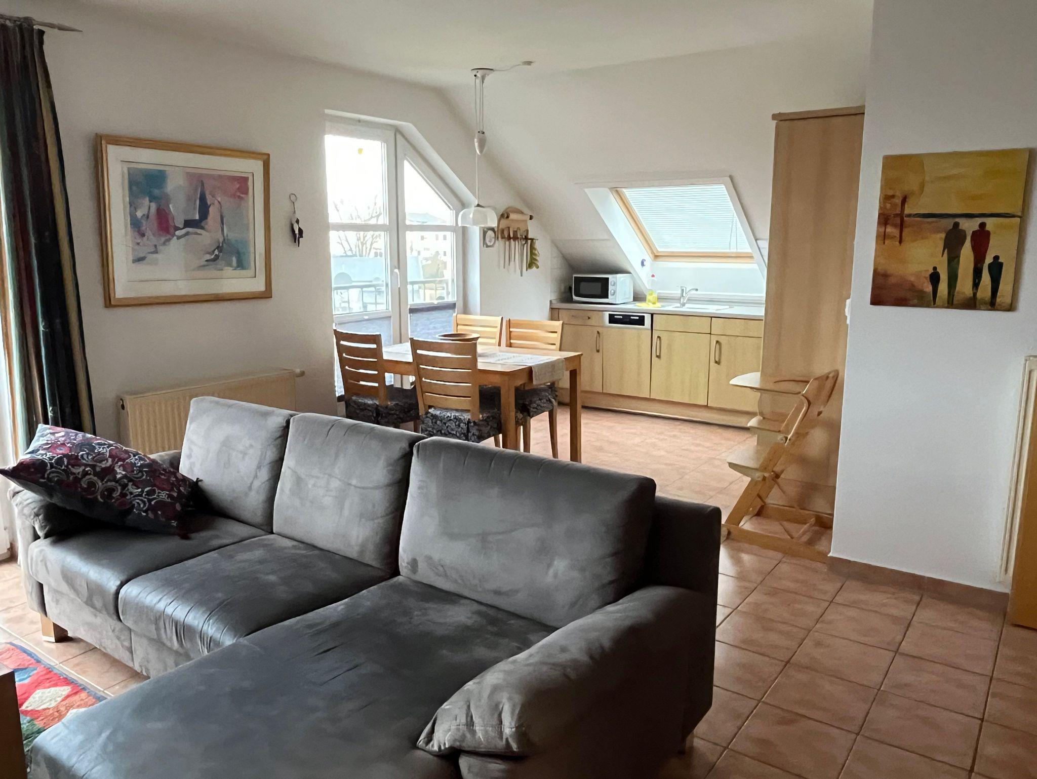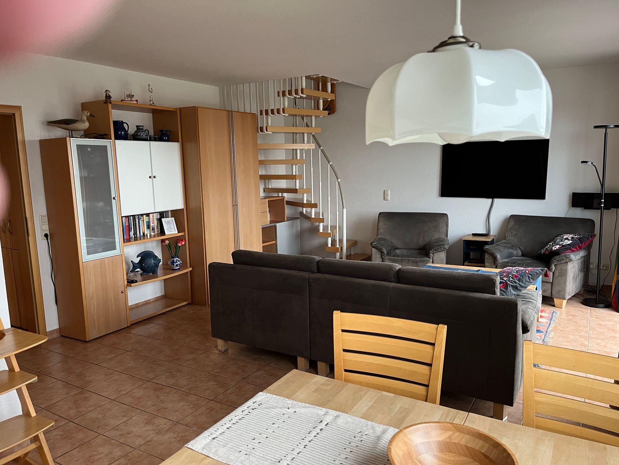 Eingang der Wohnung liegt im 2. OG, von der Tiefgarage daher 3 Stockwerke hoch gelegen (kein Fahrstuhl!). Keine schweren Koffer als Gepäck nutzen, sondern möglichst nicht so schwere Reisetaschen. Vermietung an Familien mit Kindern unter 4 Jahren nur auf eigene Gefahr (kein spezielles Kinderbett vorhanden, keine Kindersicherung an Treppe zum DG).