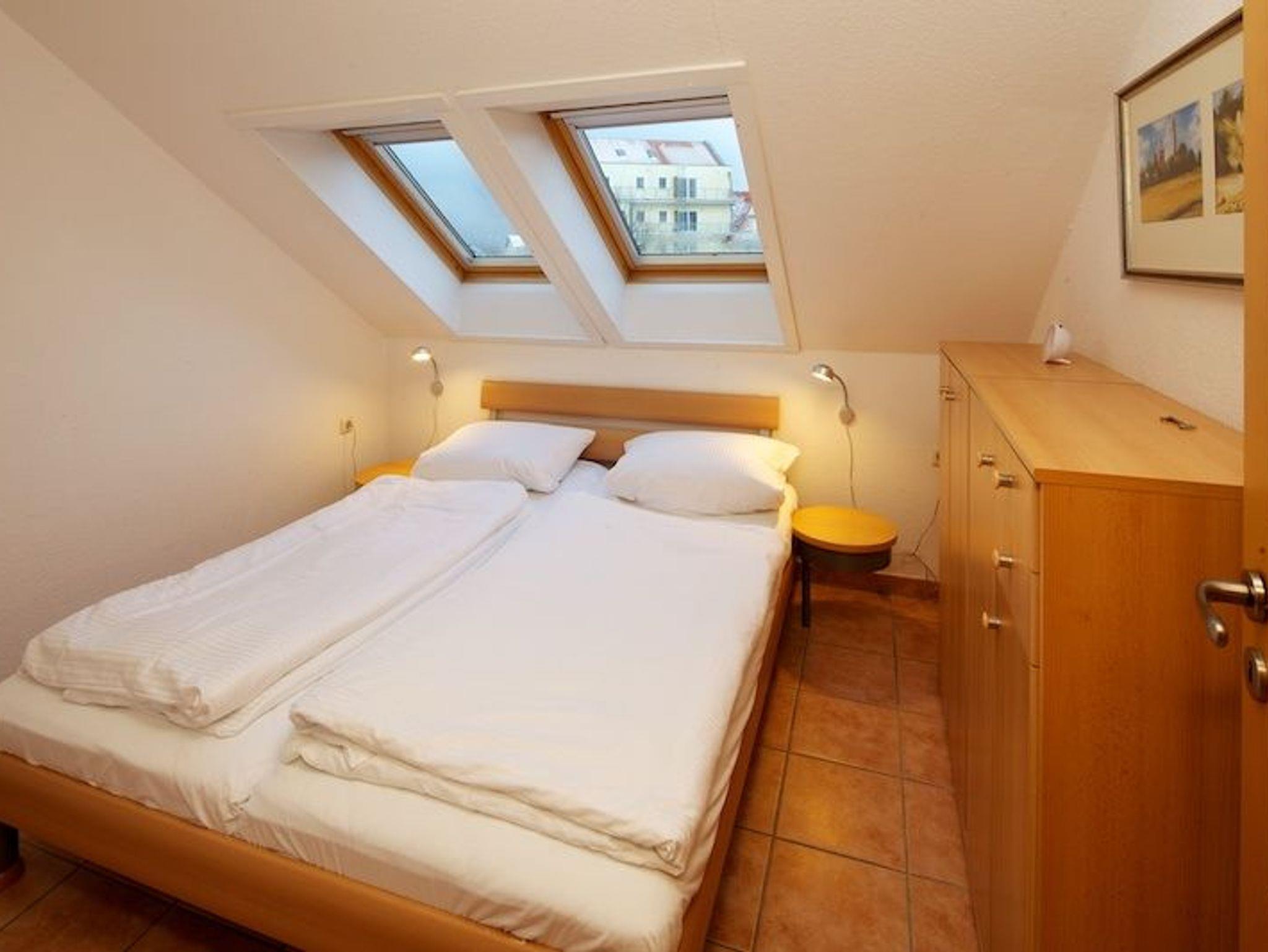 1Schlafz:1 Doppelbett,1 Schlafzimmer: 2 Einzelb, Kinderst.,TG, Bettwäsche und Handtücher bitte mitbr. oder mieten das Wäschepaket für 20,00 €/Person, Mikrowelle, Geschirrspüler, Balkon, Schwimmbad, Sauna und Solarium im Kurhaus, Nichtraucher,WLAN.