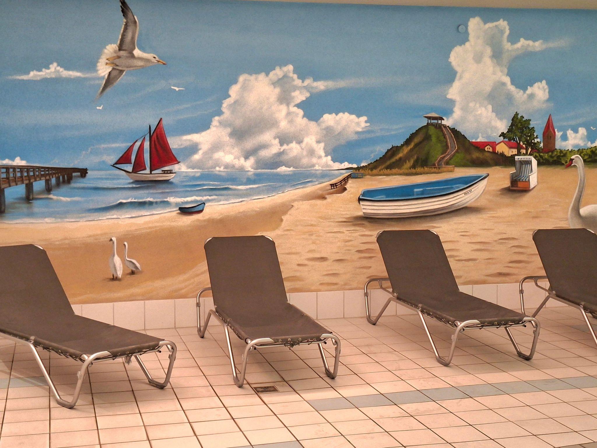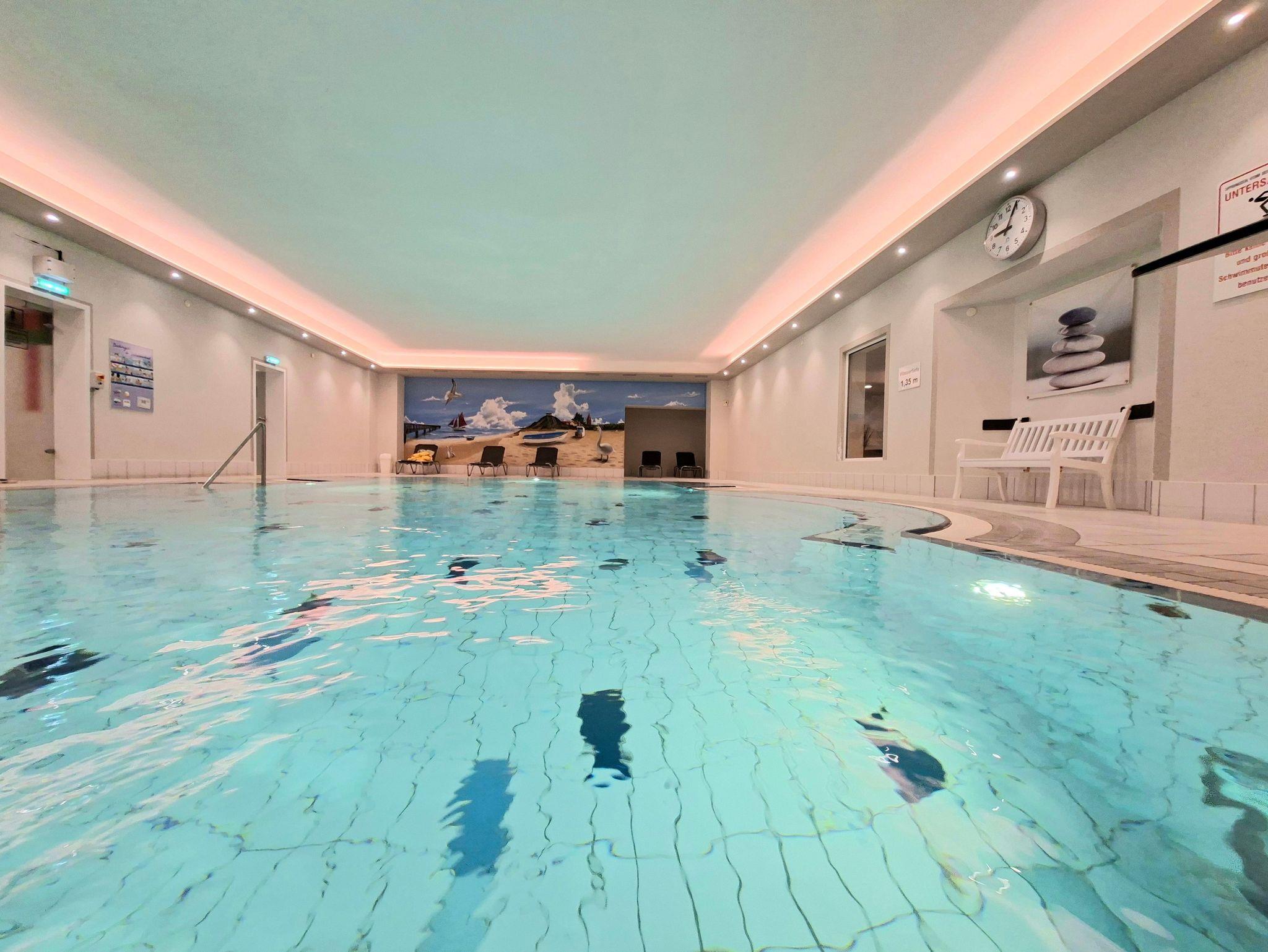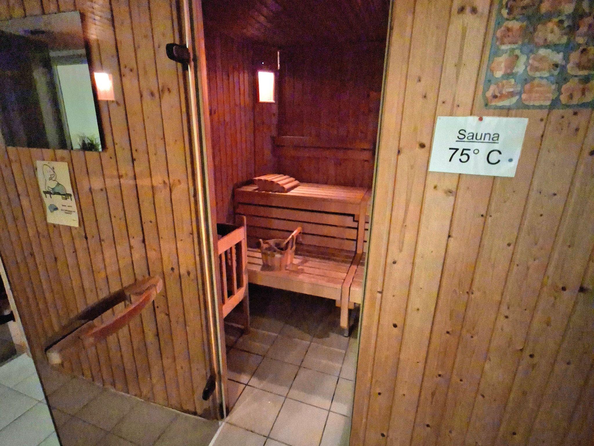 Tägliches Schwimmbad ( Wassertemperatur ca. 30 Grad mit Wasserattraktionen), Sauna ( Di, Fr, Sa) und Tiefgarage inklusive.