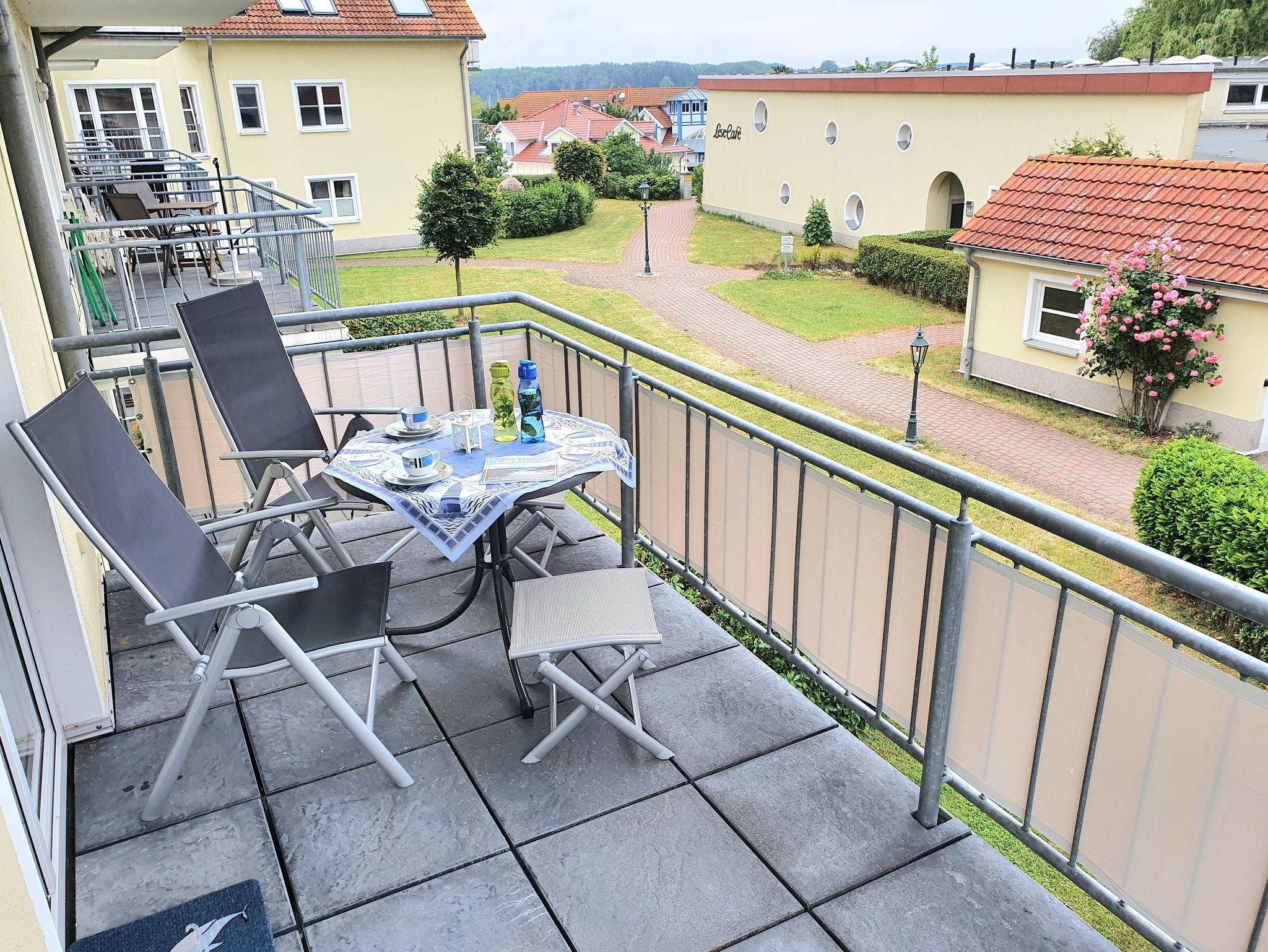 Gemütliche 2-Zimmer-Ferienwohnung an der Ostsee mit Schwimmbad, Sauna und großem Balkon für entspannte Tage.