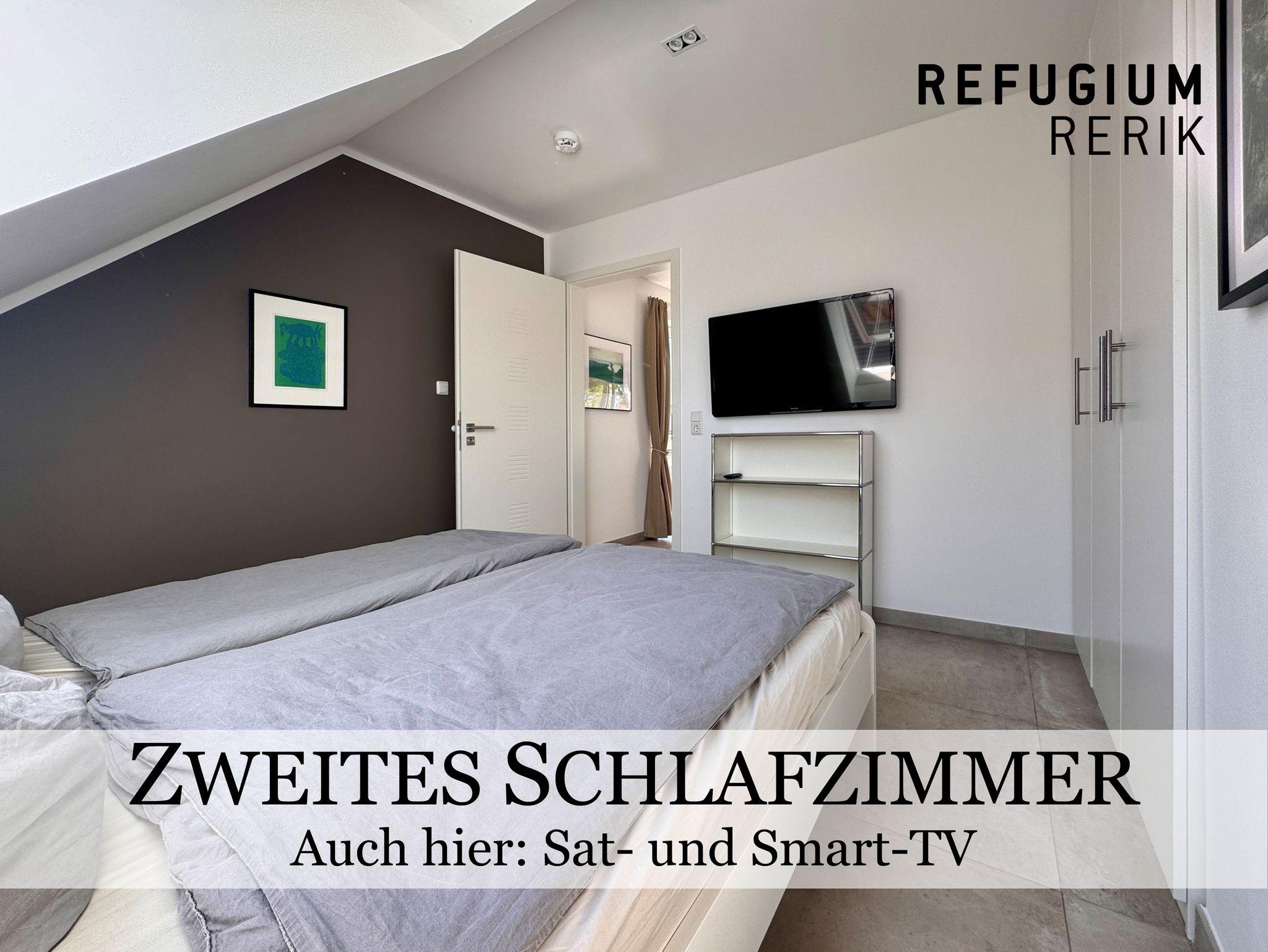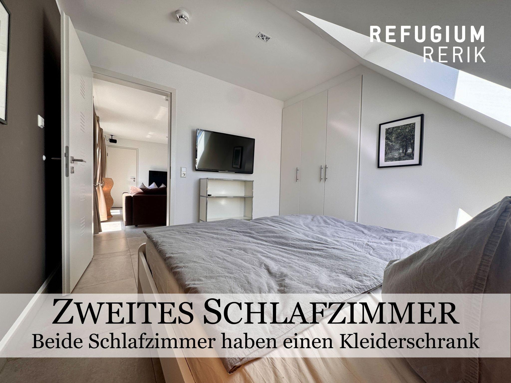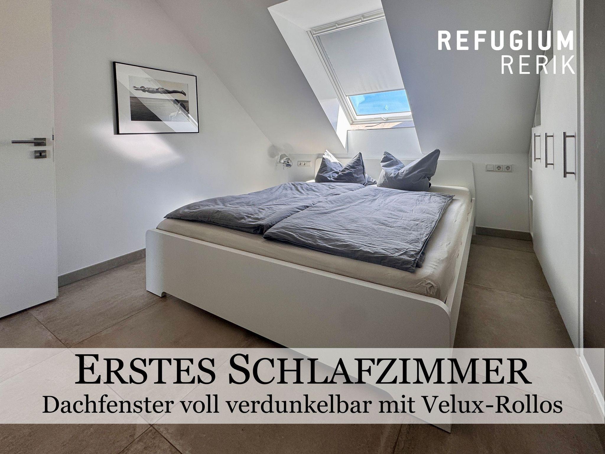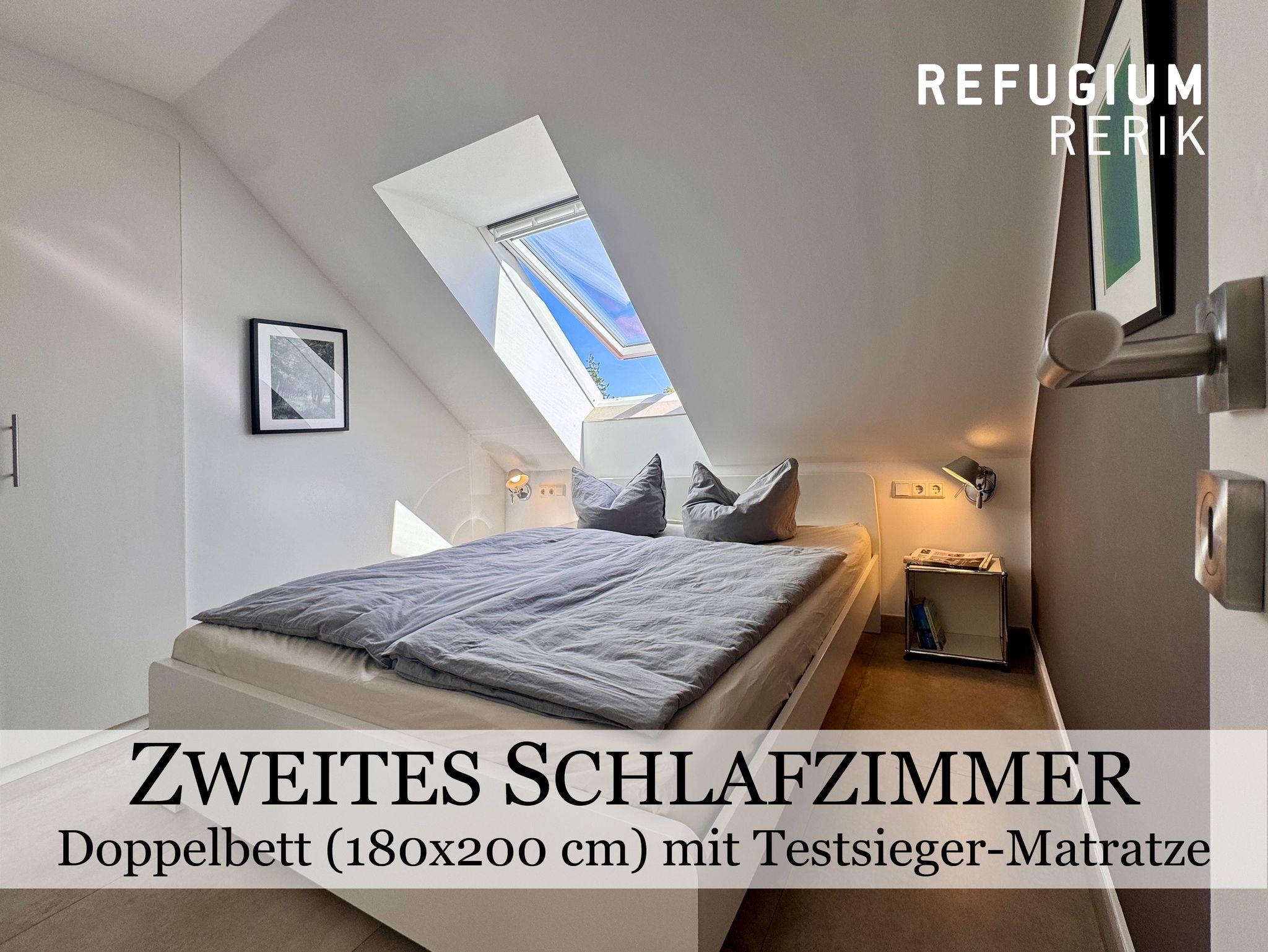 Die beiden Schlafzimmer sind mit je einem Doppelbett (1,80m x 2,00m) und mit Bettwäsche und Handtücher ausgestattet. Die Räume lassen sich komplett verdunkeln.