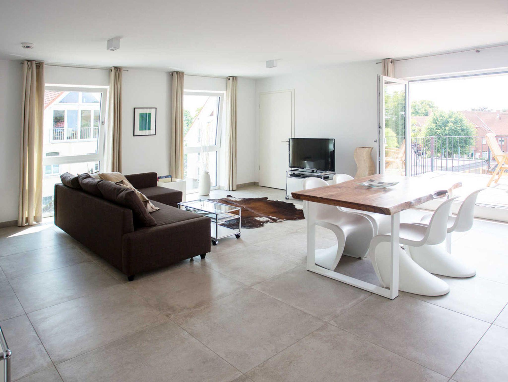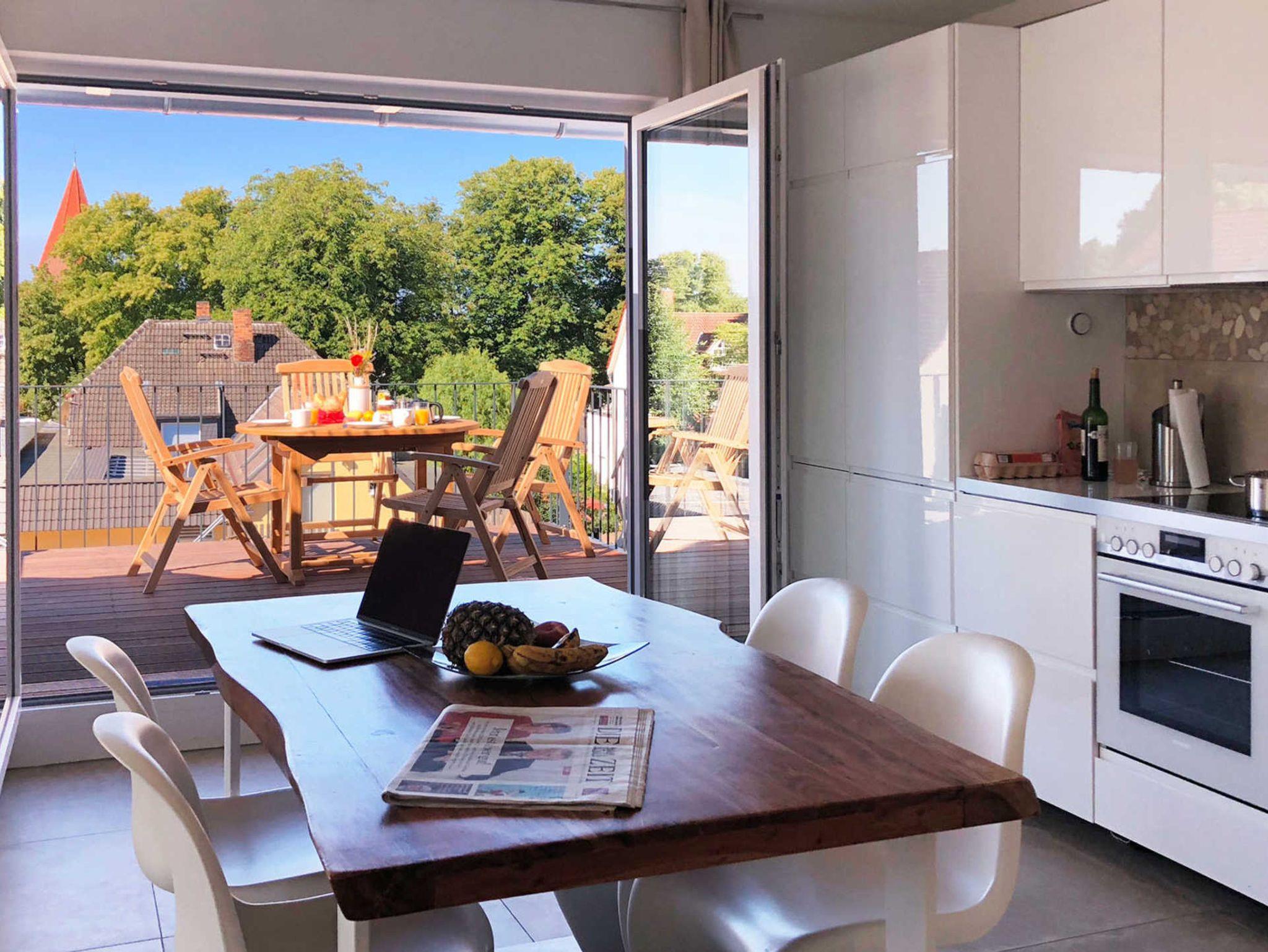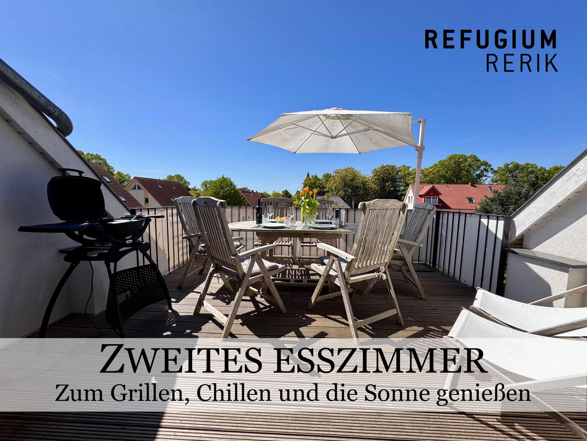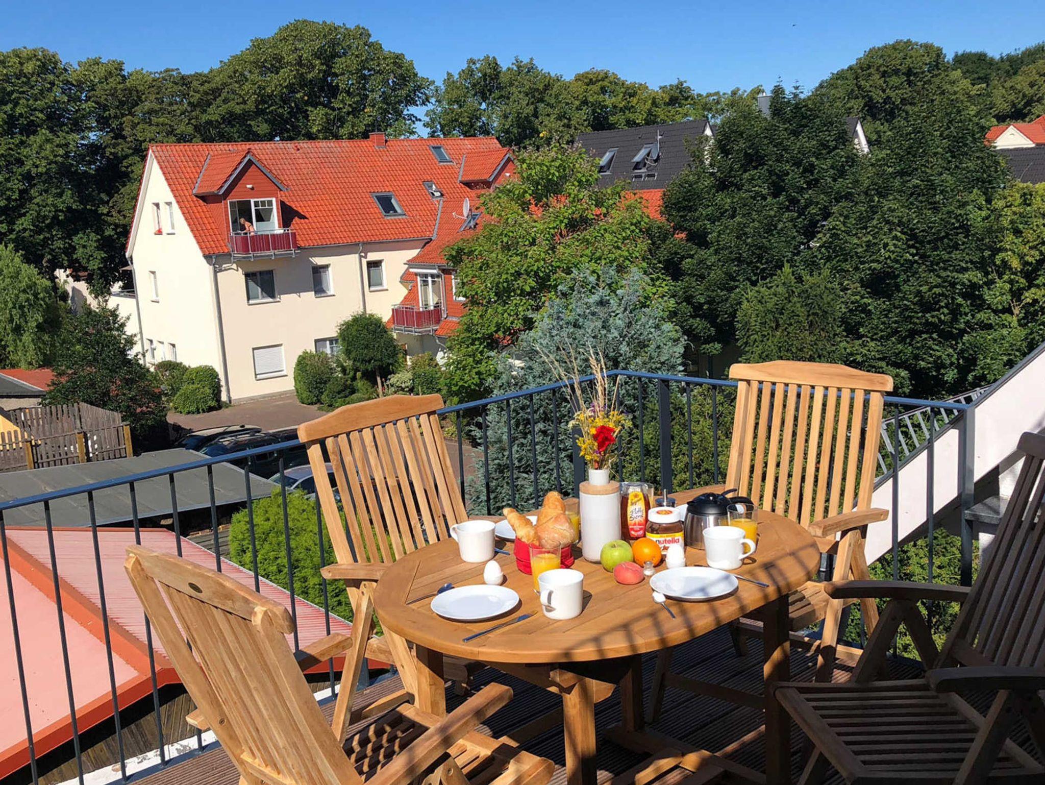5-Sterne-Ferienwohnung Refugium Rerik mit großem Balkon und Blick aufs Meer im Dachgeschoss.