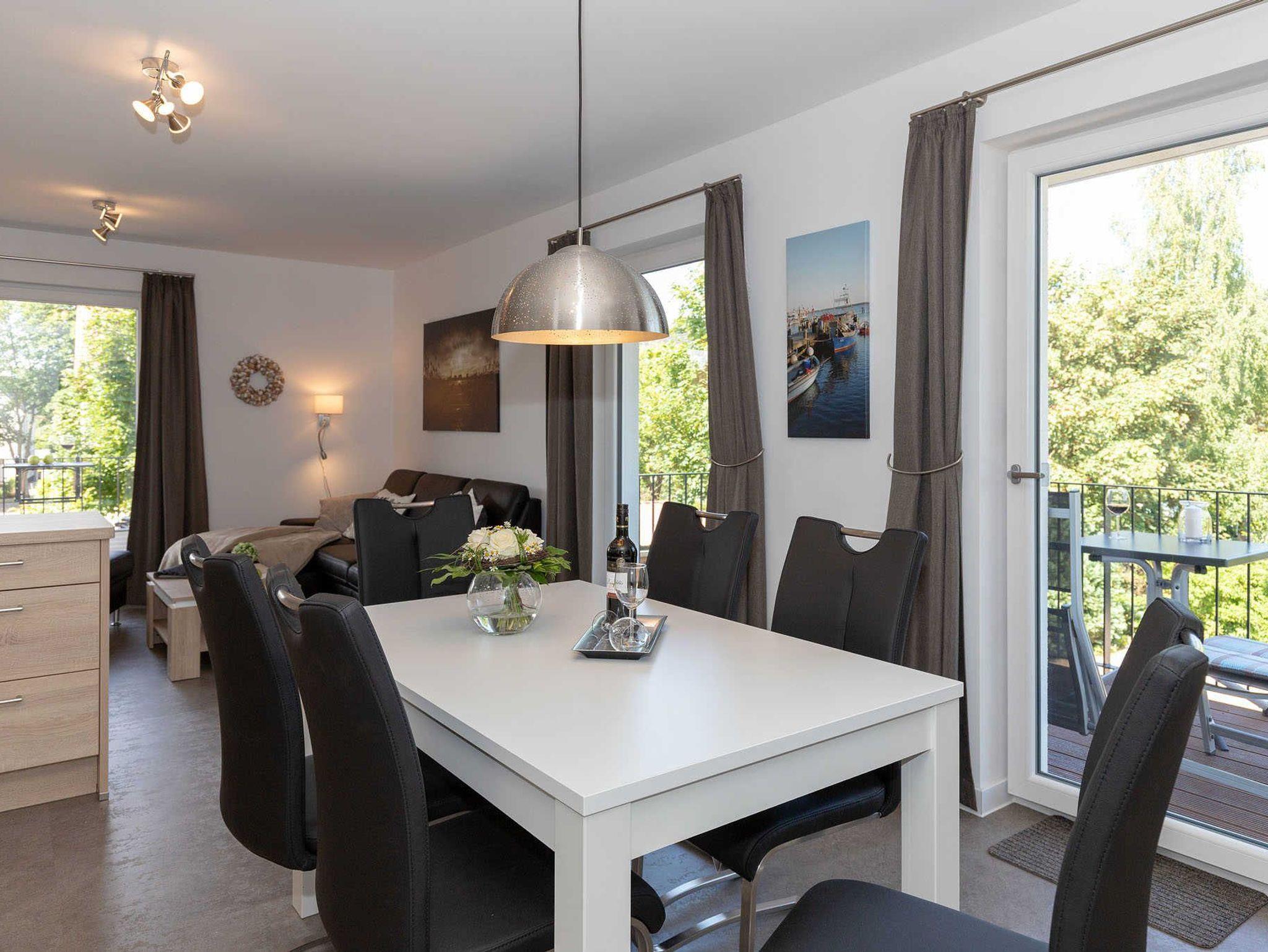 Moderne Ferienwohnung Wolke 3 in Rerik mit Meerblick, zwei Balkonen und Aufzug, ideal für entspannte Urlaubstage am Strand.