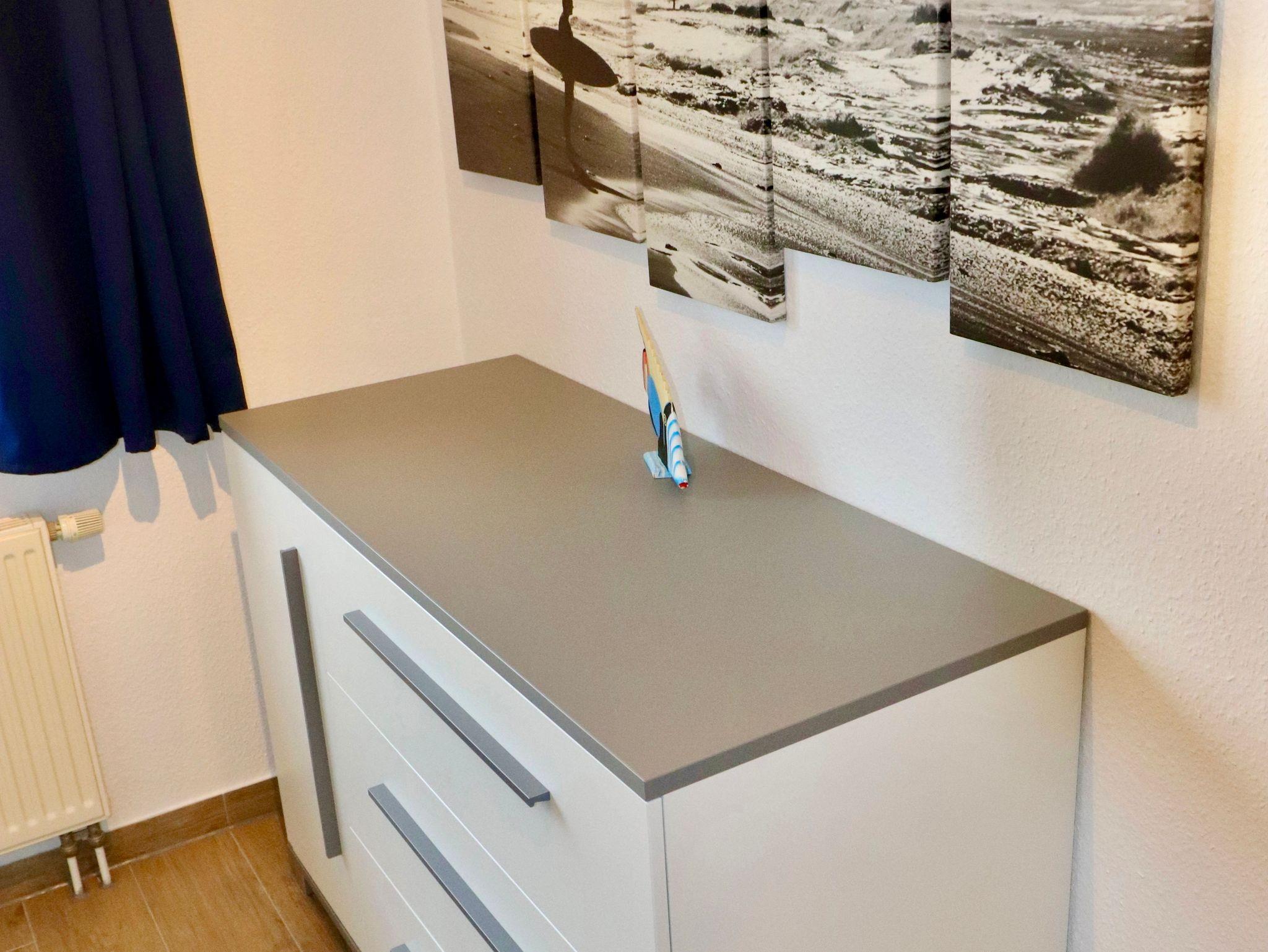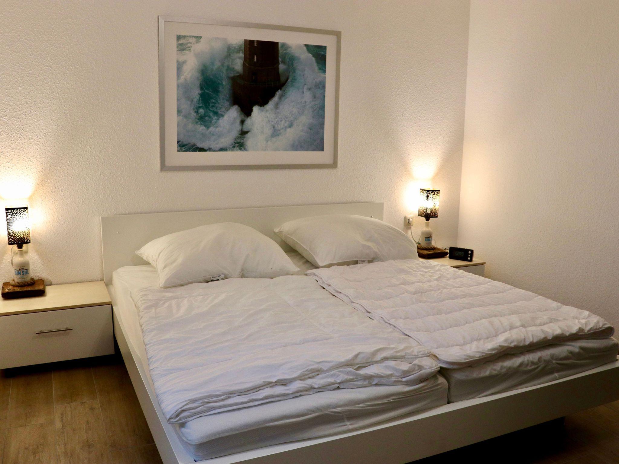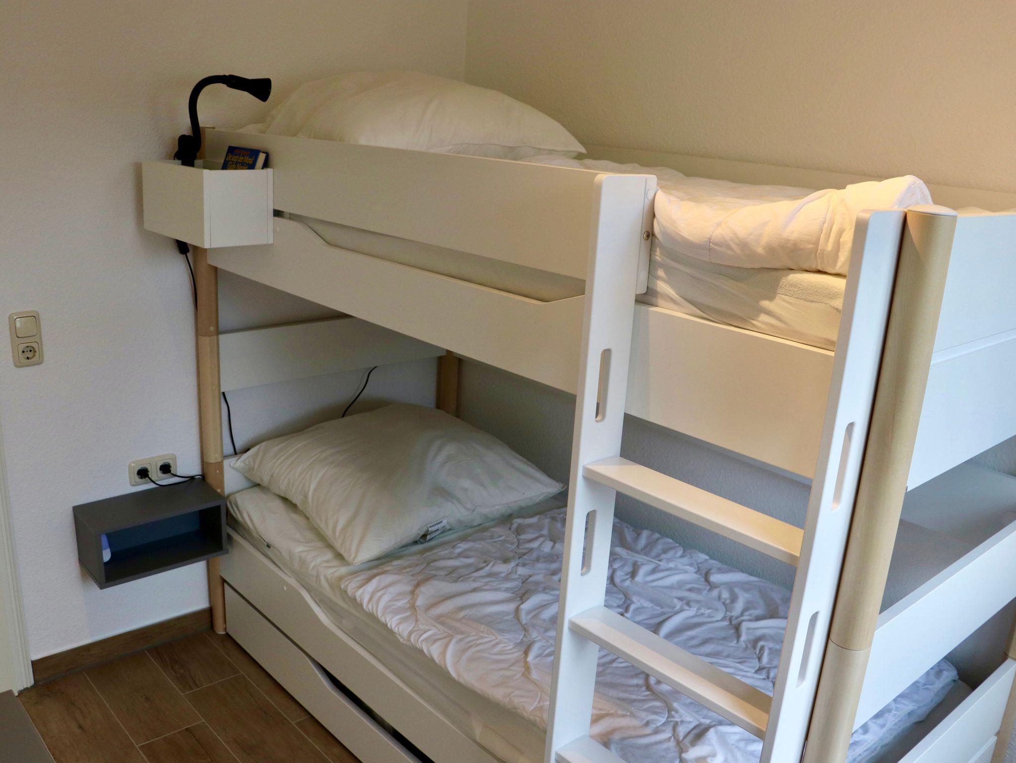 Die Wohnung umfasst ein Schlafzimmer mit einem Doppelbett (180 x 200 cm), ein Kinderzimmer mit einem Etagenbett sowie ein Duschbad. Das Badezimmer wurde im Februar 2026 vollständig saniert und verfügt nun über eine moderne, großzügige, begehbare Dusche.Für unsere kleinen Gäste stehen ein Kinderreisebett und ein Hochstuhl zur Verfügung. Ihr Fahrzeug können Sie bequem und kostenfrei in der Tiefgarage parken. Des Weiteren ist die Wohnung mit SAT-TV, Radio und kostenlosem WLAN ausgestattet.