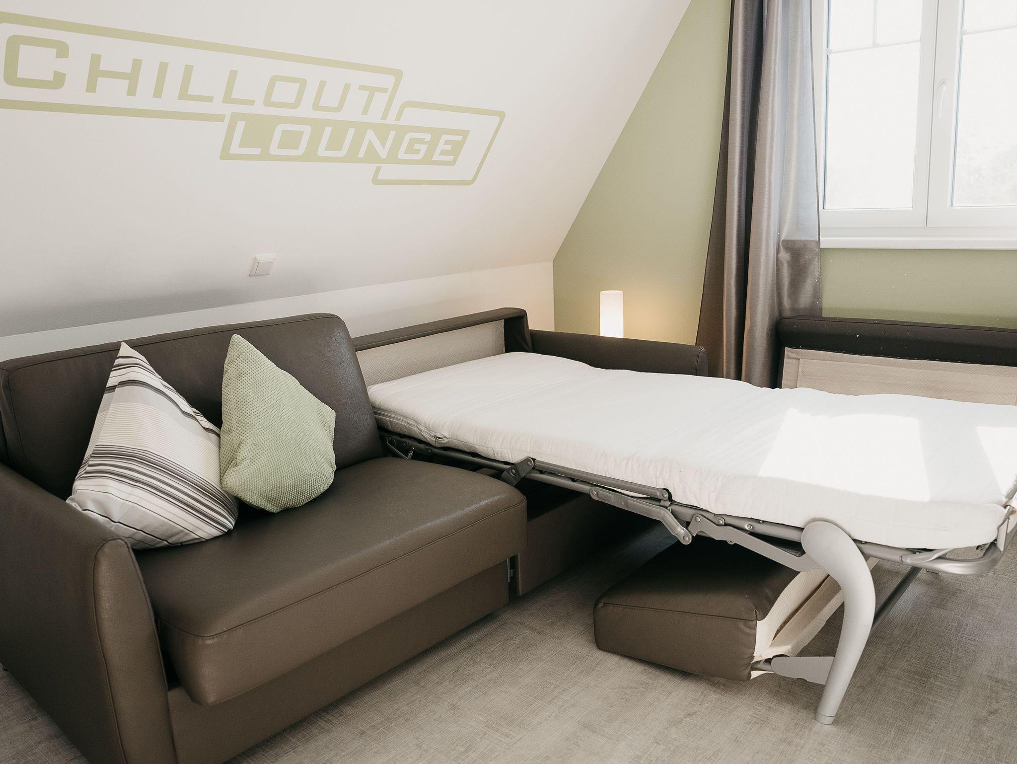 150 qm Wohnfläche bieten Platz für 10 Personen und ein Kleinkind. Das Ferienhaus hat 5 Schlafbereiche. Die Schlafzimmer 1, 2 und 3 haben je ein Doppelbett (180x200 cm). Im vierten Schlafzimmer befinden sich zwei Einzelbetten ( je 90x200 cm). Die Chillout Lounge mit einer Hochwertigen Schlafcouch kann zu einem zusätzlichen Schafbereich umfunktioniert werden. Die Couch besteht aus zwei Betten (90x200 cm). Bis auf das Schlafsofa sind alle Betten mit verstellbaren Lattenrosten an Fuß- und Kopfteil ausgestattet.