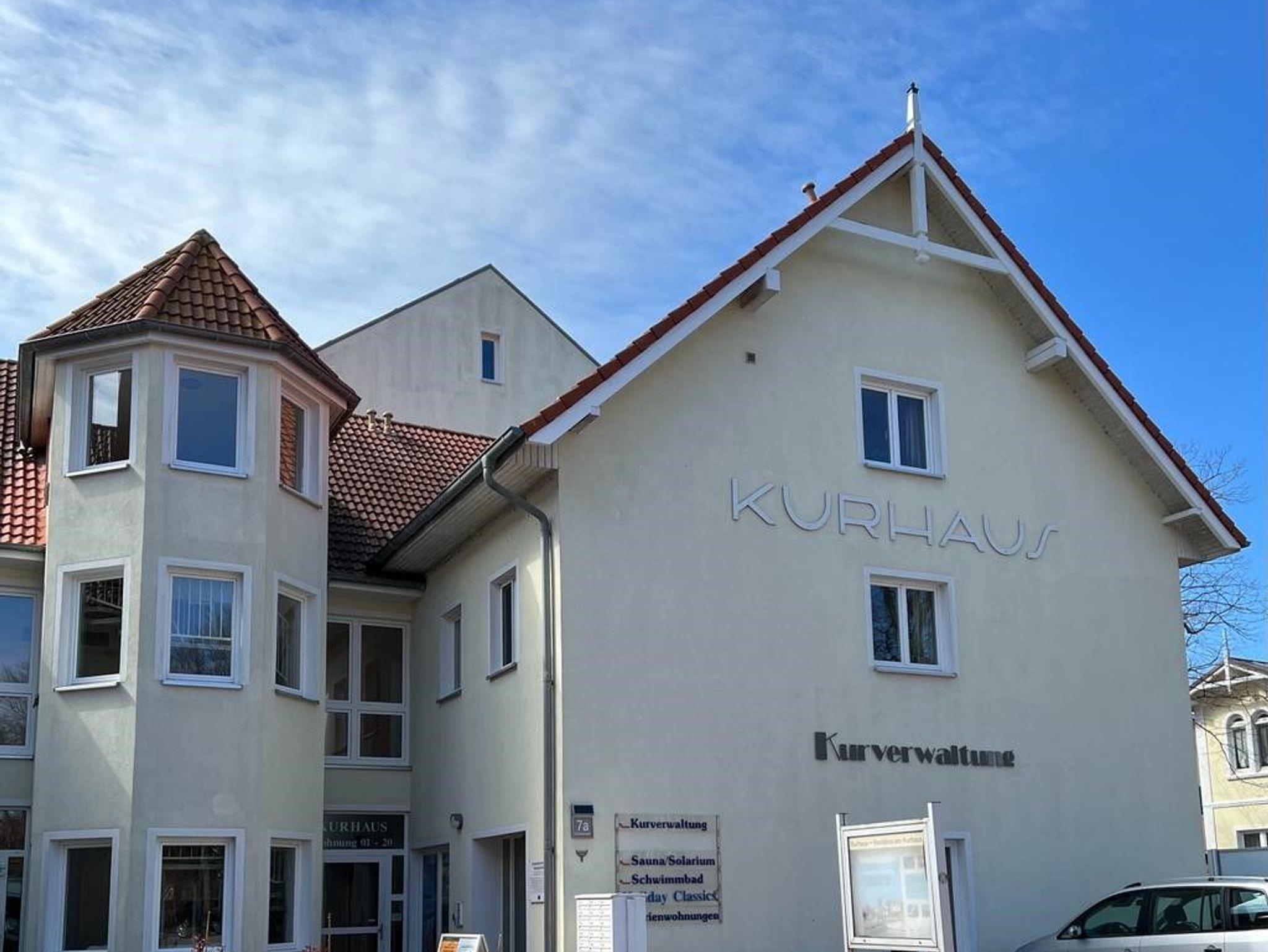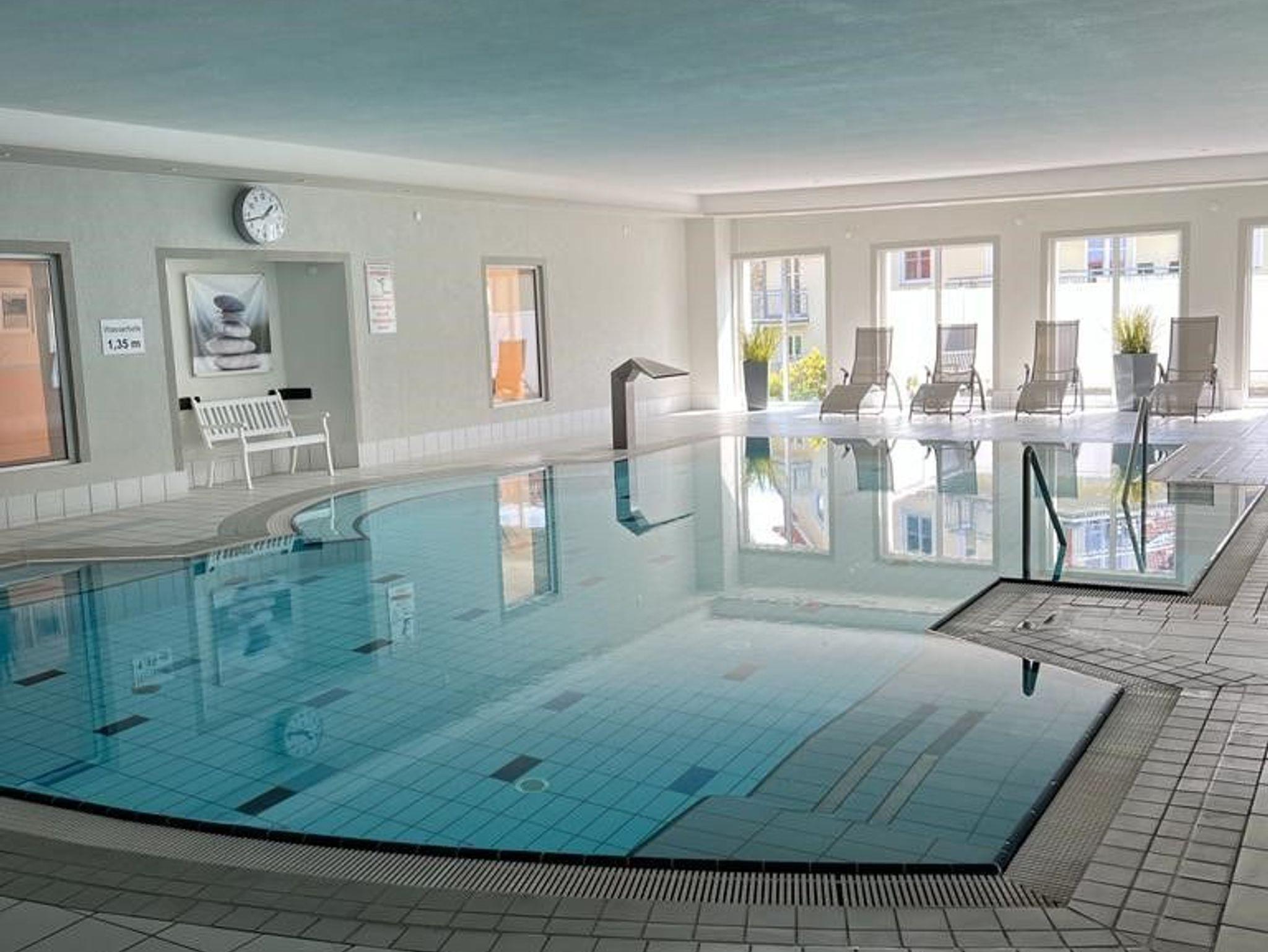 Moderne Kurhaus-Wohnung in Rerik, nur 2 Minuten vom Strand entfernt, mit Sauna, Schwimmbad und Balkon.