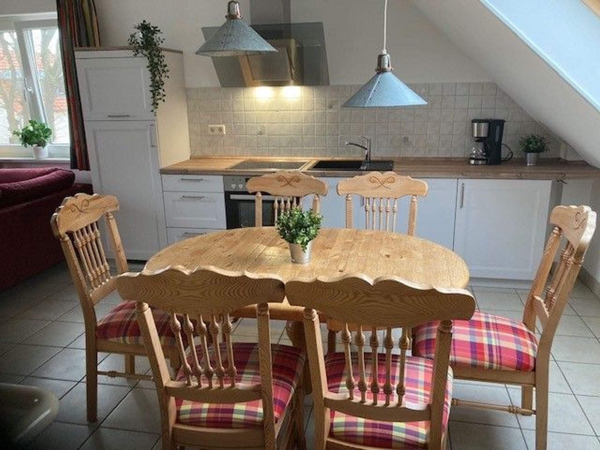Hervorragende Lage - 2 min. zum Strand, 1. OG über drei Ebenen mit Balkon, 1. Ebene: 1 Schlafzimmer - Doppelbett, zusätzlich Schlafcouch in der offenen Diele, DU/WC, 2. Ebene: Wohnbereich mit Küchenzeile, Balkon, 3. Ebene: 2 Einzelbetten in einem Schlafraum offen zur Treppe.