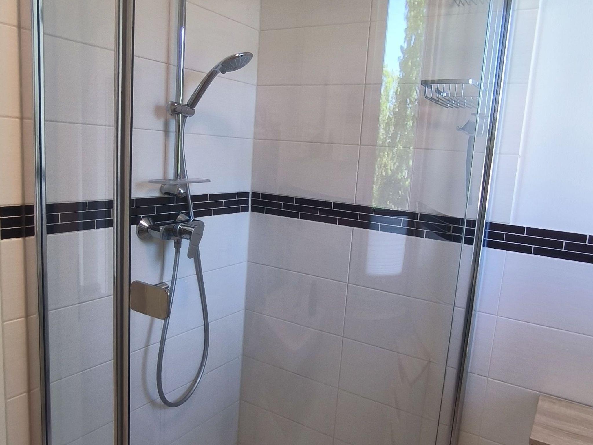 Das Badezimmer ist mit einer Dusche und einem WC ausgestattet. Im Abstellraum befindet sich eine Waschmaschine, die Ihnen kostenfrei zur Verfügung steht.