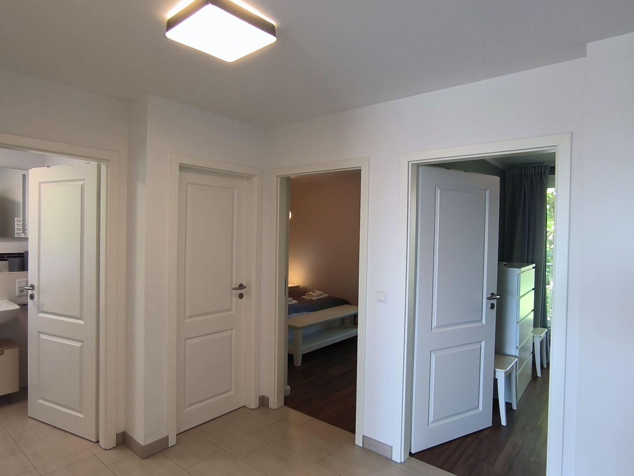Die Wohnung verfügt über einen großzügigen Wohnbereich mit integrierter Küchenzeile sowie einem komfortablen Essbereich. Sie finden bei uns zwei helle, geräumige Schlafzimmer, die Platz für 2 bis maximal 4 Personen bieten. Ein Schlafzimmer verfügt über ein schönes, komfortables Doppelbett (160x200m). Das andere Schlafzimmer über ein Einzelbett (80x200m), mit einer Ausziehfunktion auf 160x200m.