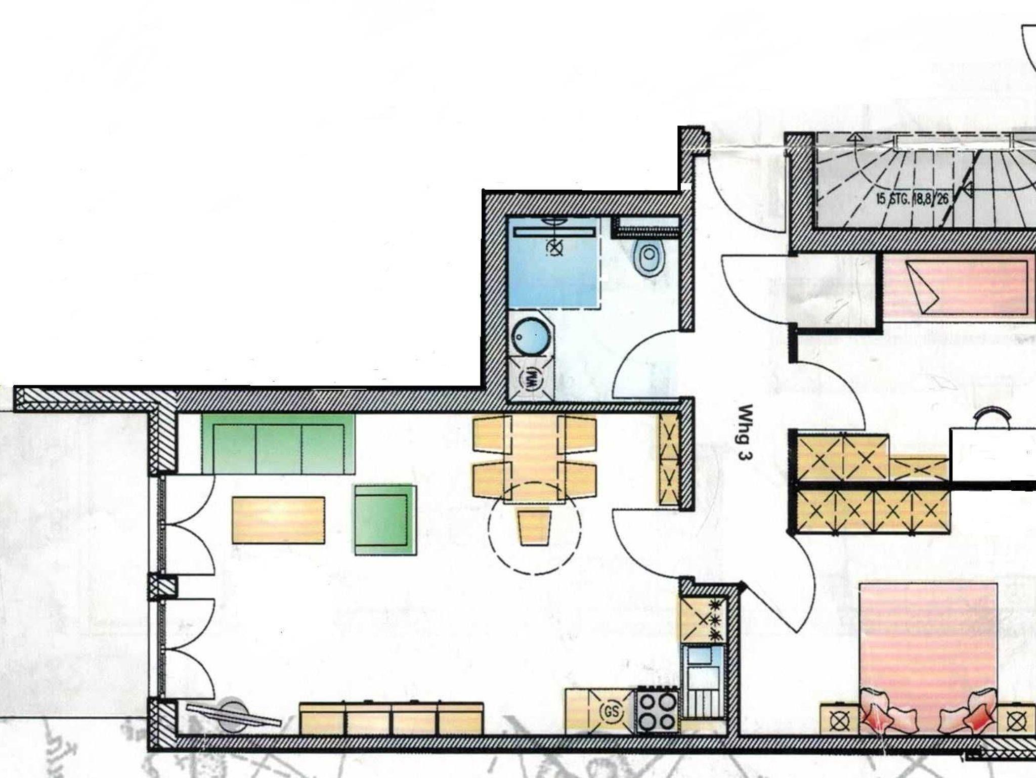 Mit viel Liebe und Herz eingerichtet, erwarten Sie im Erdgeschoss des Hauses auf 65qm für 1-4 Personen + max. 1 Kleinkind zwei Schlafräume, eine offene Küche und ein Wohnraum.