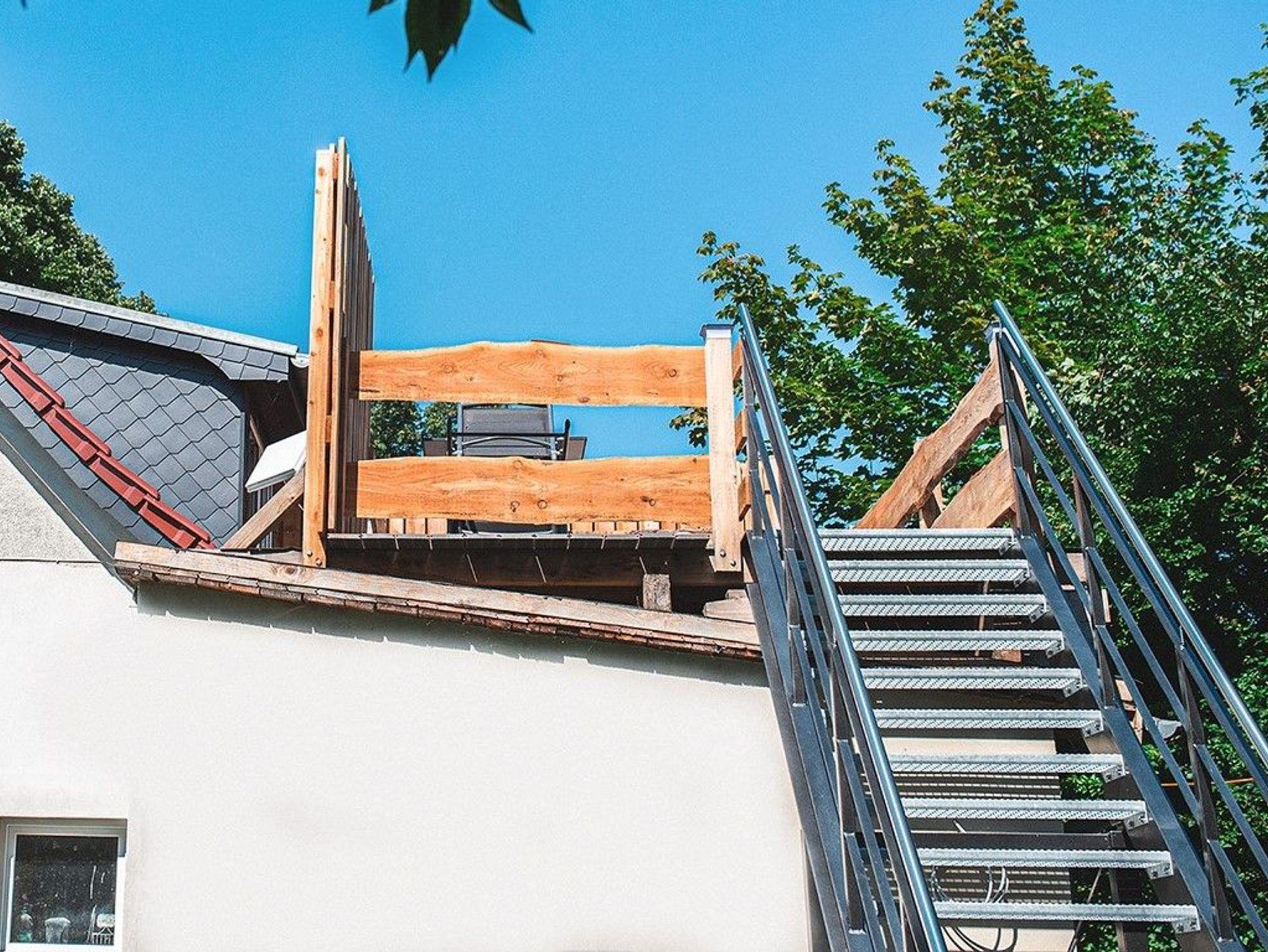 Auf Grund der Lage und Einrichtung der Wohnung (Dachterrasse, Treppe, Teich) ist unsere Wohnung nicht für kleine Kinder geeignet.