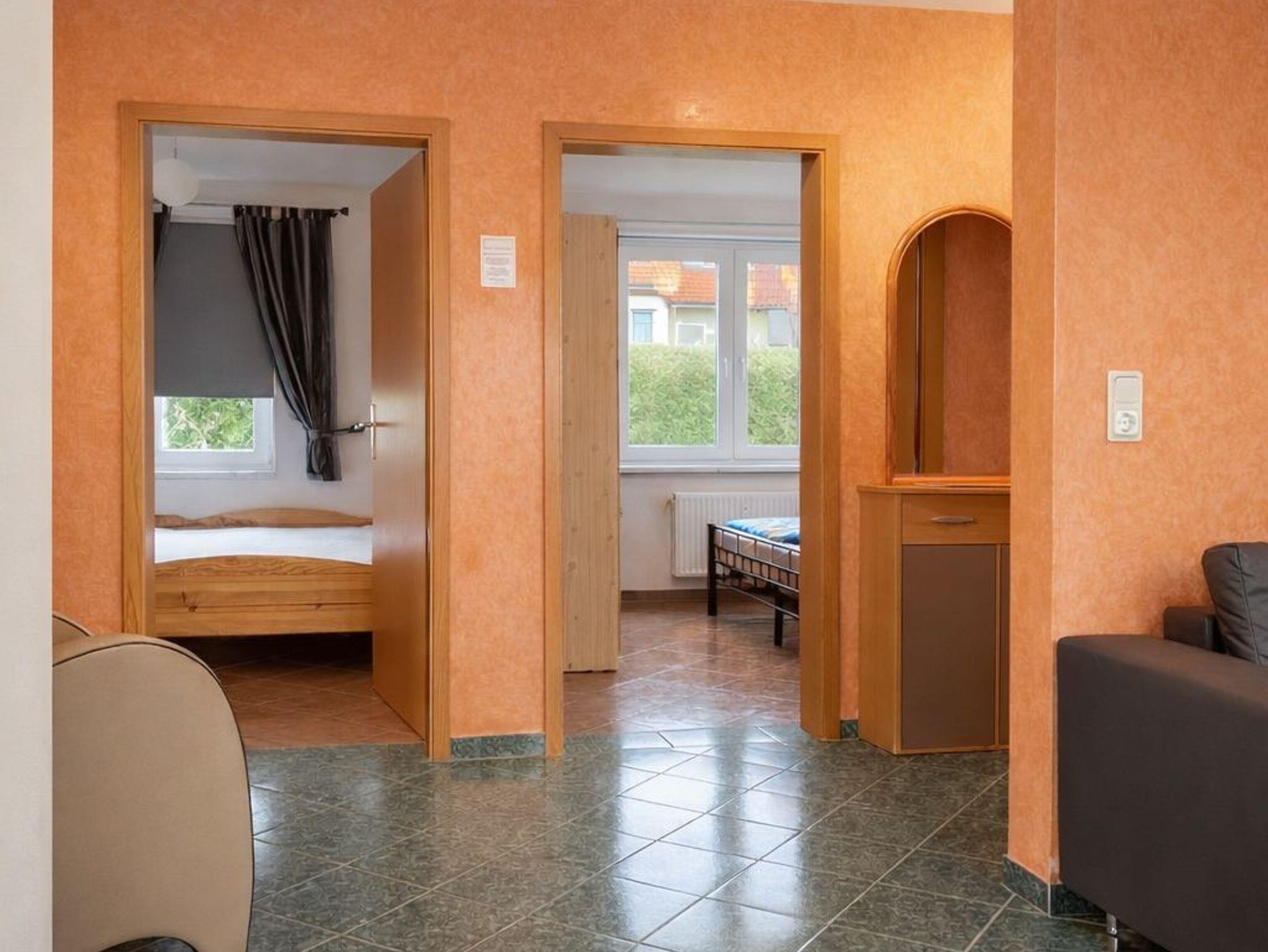 Ebenerdige 3-Raum-Ferienwohnung (65m²; max. 4 Pers. + 1 Baby) mit eingezäuntem Gartengrundstück. Nichtraucherhaus. 1 Haustier willkommen, max. 40cm Schulterhöhe (Gebühr)