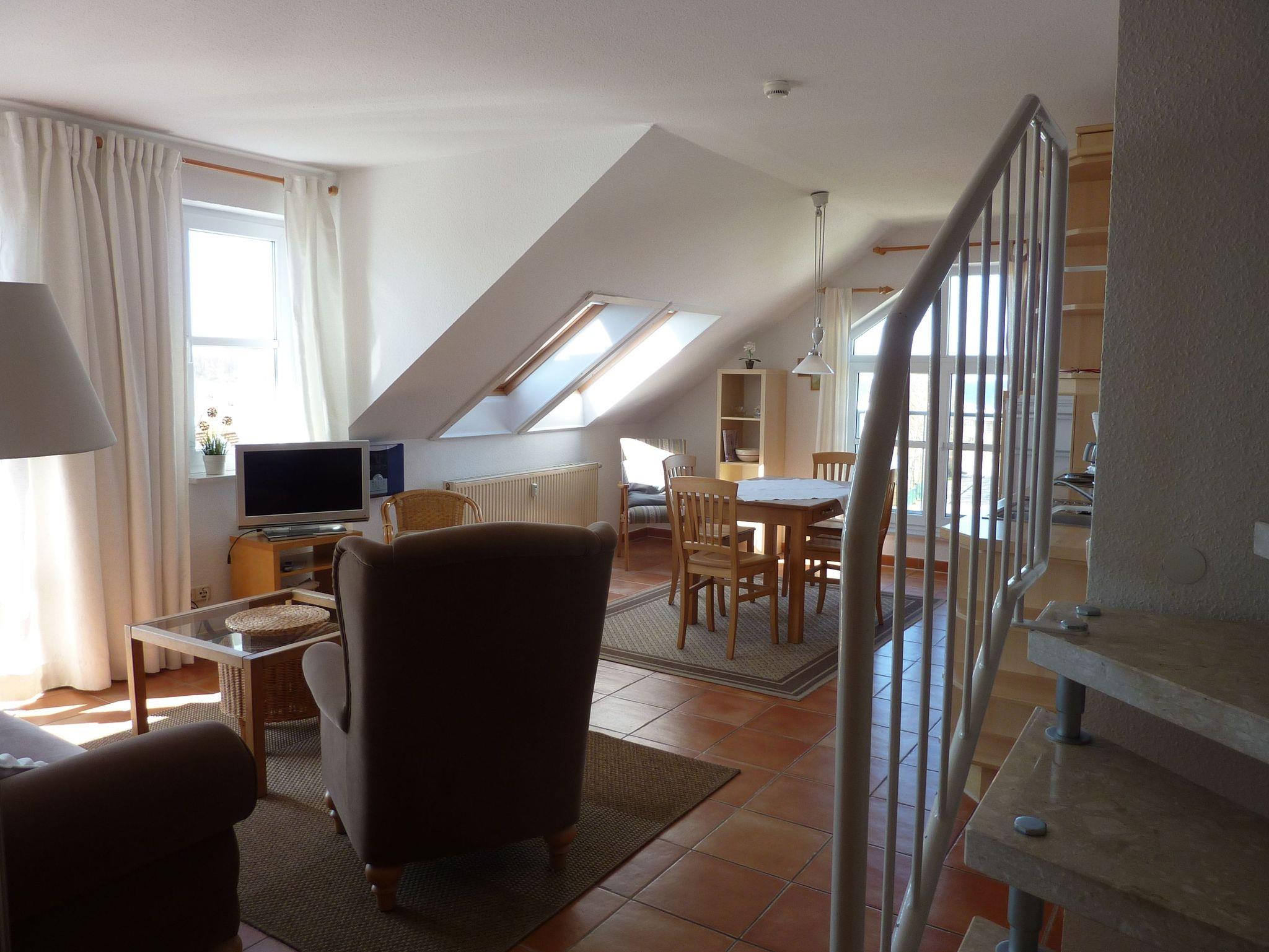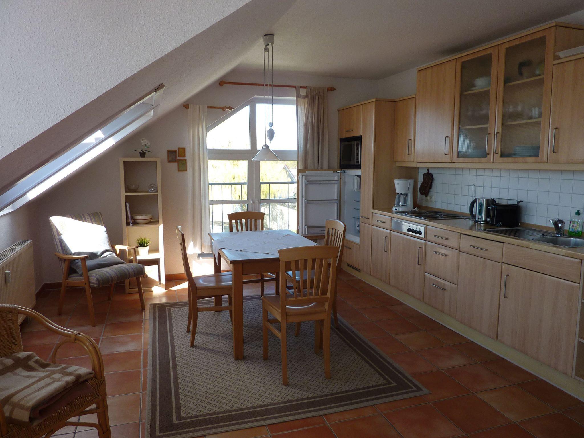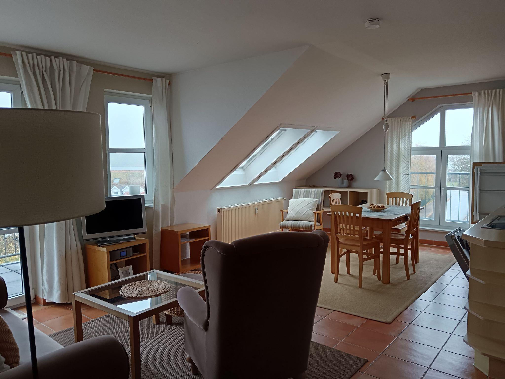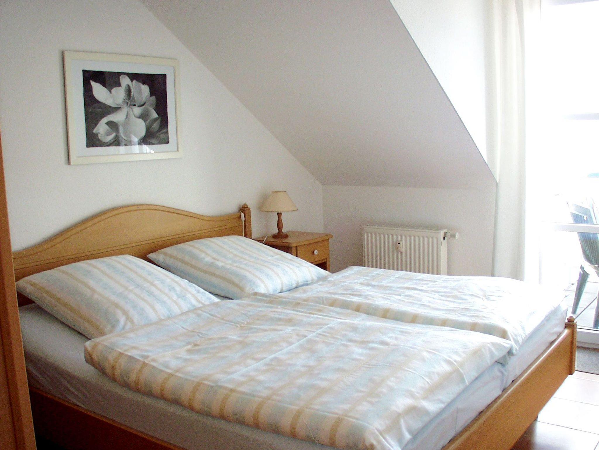 Komfortable Ferienwohnung mit Schwimmbad- und Saunabenutzung. Moderne, gemütliche Ausstattung, 2 Schlafzimmer je 2 Personen, Küchenzeile mit Geschirrspüler u. Mikrowelle. Balkon mit herrlichem Haff- und Seeblick. Solarium, Waschmaschine und Trockner zu nutzen gegen Entgelt, Wäschepaket mietbar 20.00 Euro/Pers.