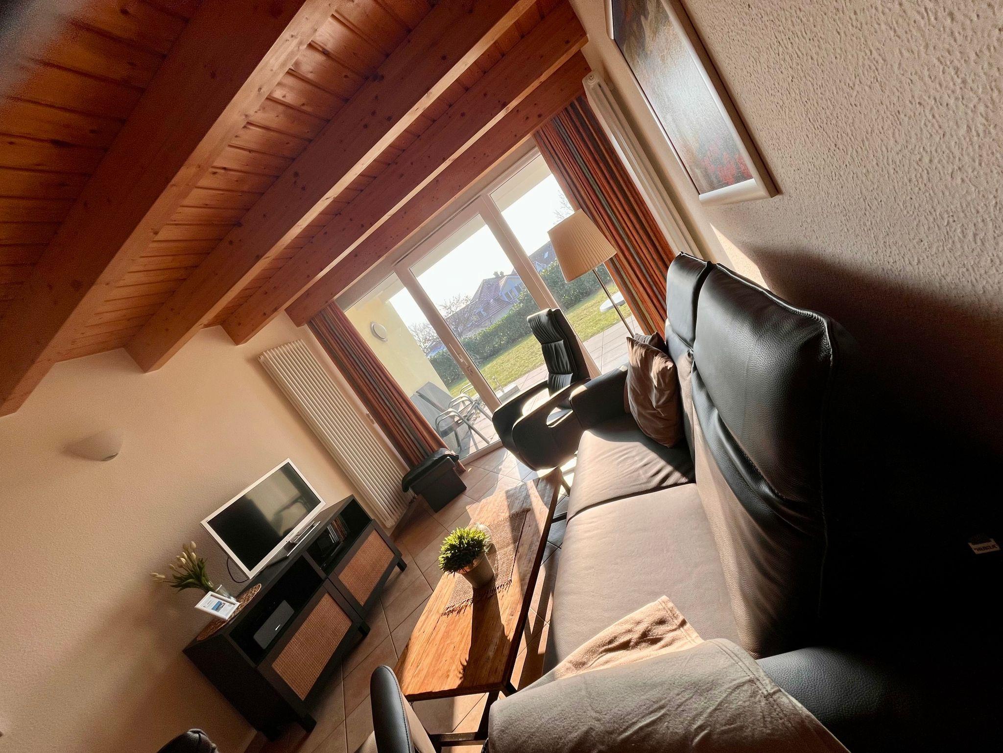 Die Strandmuschel ist eine komfortable Ferienwohnung mit Blick auf das Salzhaff und Zugang zu Schwimmbad sowie Sauna.