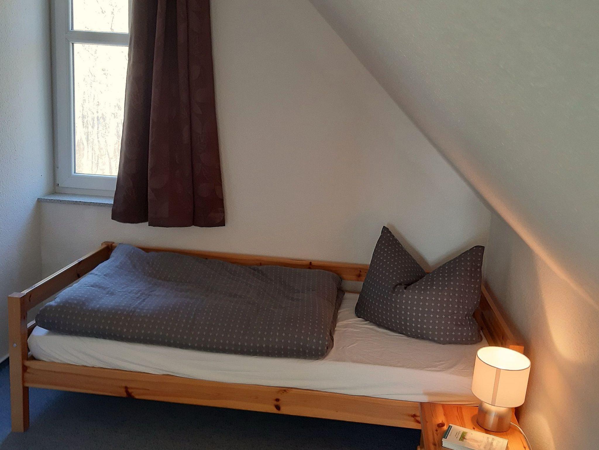 Die Ferienwohnung liegt im 2.OG und verfügt neben dem nach Süd-Osten und Nord-Westen ausgerichteten Wohn-Kochbereich mit Balkon und dem Schlafzimmer über einen weiteren abgeschlossenen Schlaf- u. ggf. Spielbereich in der Empore. Die Wohnung verfügt insgesamt über fünf Betten.