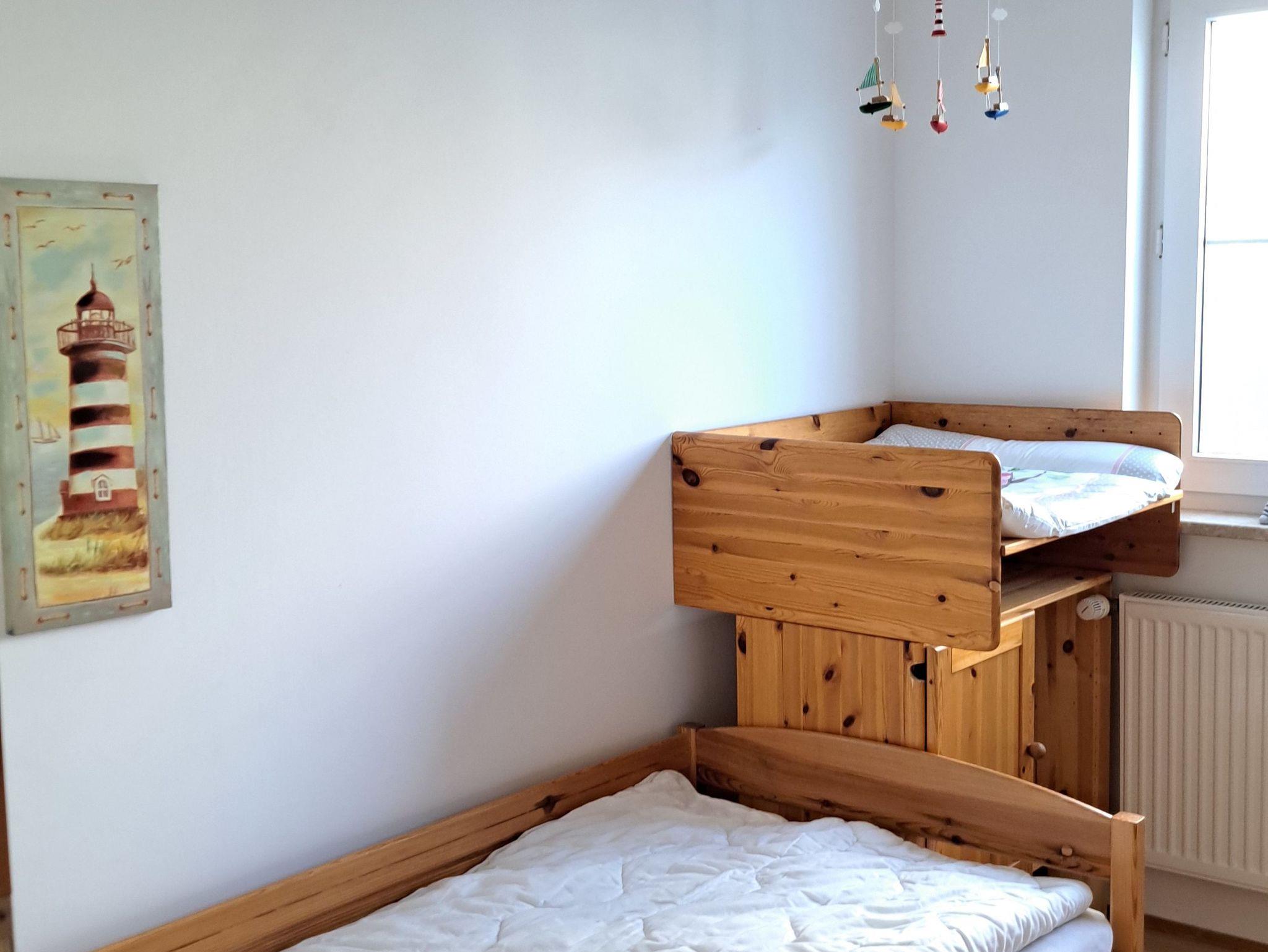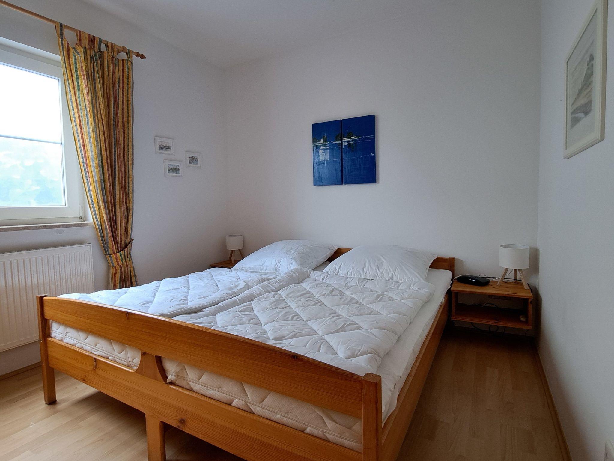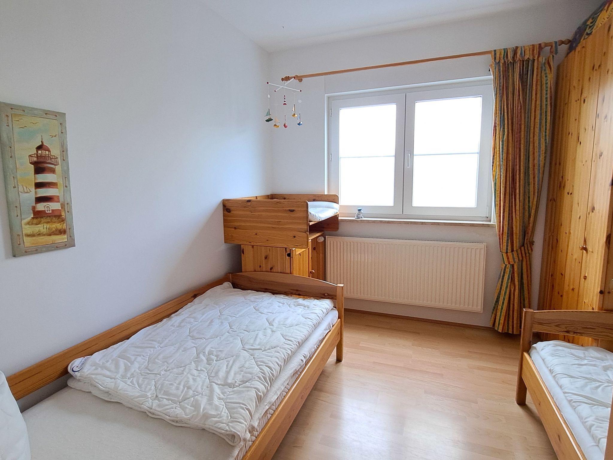 Die Wohnung bietet Erholung zu jeder Jahreszeit. Sie hat eine Größe von 61 qm und ist eingerichtet für 2 bis 4 Personen. Der gemütliche Wohnraum verfügt über eine Sitzecke mit Couch und einen Essplatz. Die integrierte Küche besitzt Spülmaschine, Mikrowelle und Backofen. Die beiden Schlafräume haben jeweils 2 Betten. Neben dem geräumigen Duschbad gehört noch ein Abstellraum zur Wohnung. Die Wohnung ist allergikergerecht ausgestattet und bietet ausreichend Platz für Familien. Kinderbett und Hochstuhl sind vorhanden. Auf der schönen Terrasse können Sie die Sonne genießen. Damit es drinnen auch bei großer Hitze angenehm kühl ist, sind alle Fenster mit Rollläden versehen.