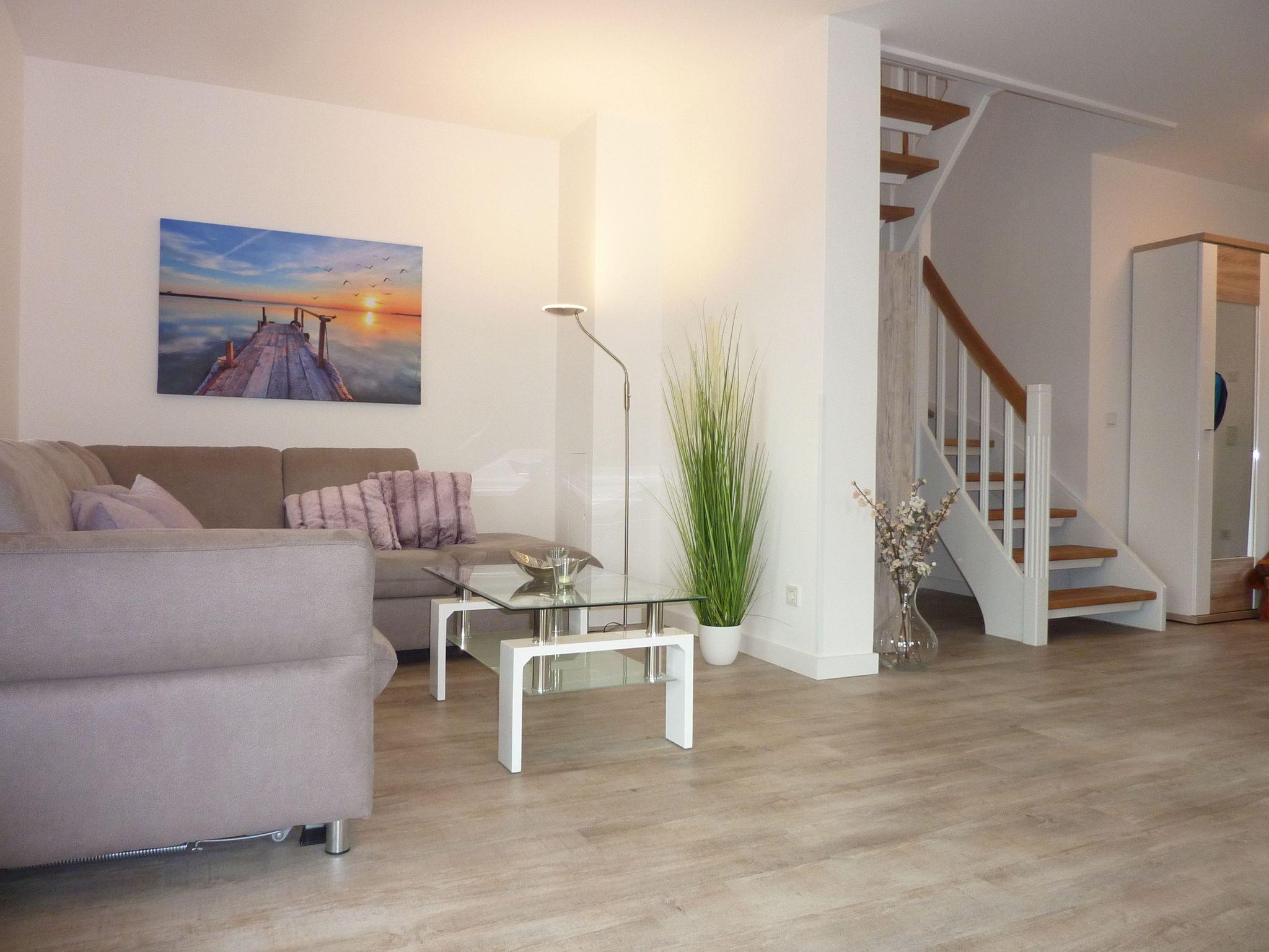 neu erbaute Reetdoppelhaushälfte (Baujahr 2020, Erstvermietung 2021) mit Flair auf großzügigem Grundstück in idyllischem Ort für Naturliebhaber, Ruhe- und Entspannungssuchende, modern eingerichtet, beide Schlafzimmer mit Doppelbetten und hochwertigen, bequemen Federkernmatratzen, Badezimmer (EG, OG) mit ebenerdiger Dusche und Tageslichtfenstern, großer Kicker und Sitzsäcke im Spitzboden, freier Blick in die Natur auf der Süd-West-Terrasse mit ausziehbarem Tisch, Premium Weber-Außengrill (Elektro) steht zur Verfügung, große Rasenfläche lädt zum Spielen ein, abschließbarer Schuppen mit Strom zum Aufladen von E-Bikes vorhanden, Waschmaschine mit integriertem Trockner kann ohne Zusatzkosten genutzt werden, Naturstrand ist fußläufig in ca. 10-15 min zu erreichen, zwei Surfschulen (auch Kitesurfen) in der Nähe