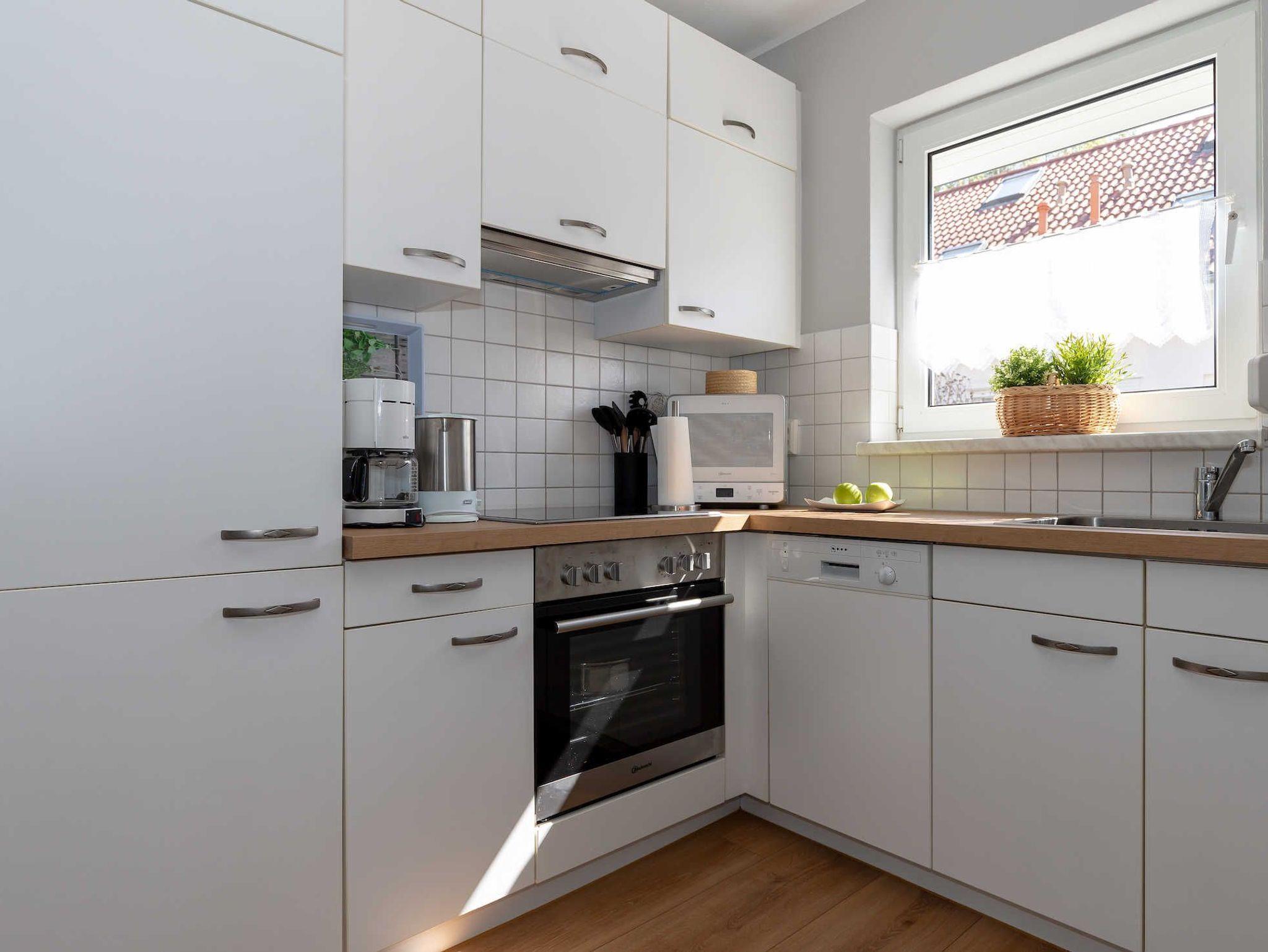 Das Haus wurde Anfang 2019 familienfreundlich im Landhausstil neu eingerichtet. Zwei separate Schlafzimmer mit einem Doppelbett (180x200 cm) bzw. 2 Einzelbetten (davon eins mit weiterer Matratze) bieten ausreichend Platz für 4 bis 5 Personen. Neben den Schlafzimmern befindet sich im OG ein Duschbad mit WC. Im EG steht Ihnen ein Gäste-WC und der offene Wohn-/Essbereich mit komplett eingerichteter Küche zur Verfügung. Zum Außenbereich des Hauses gehören ein PKW-Stellplatz und ein Schuppen. Der kleine von Hecken umfasste Garten mit Terrasse und Grillplatz bietet Ruhe und Erholung. Gartenmöbel und zwei Liegen sind selbstverständlich vorhanden.