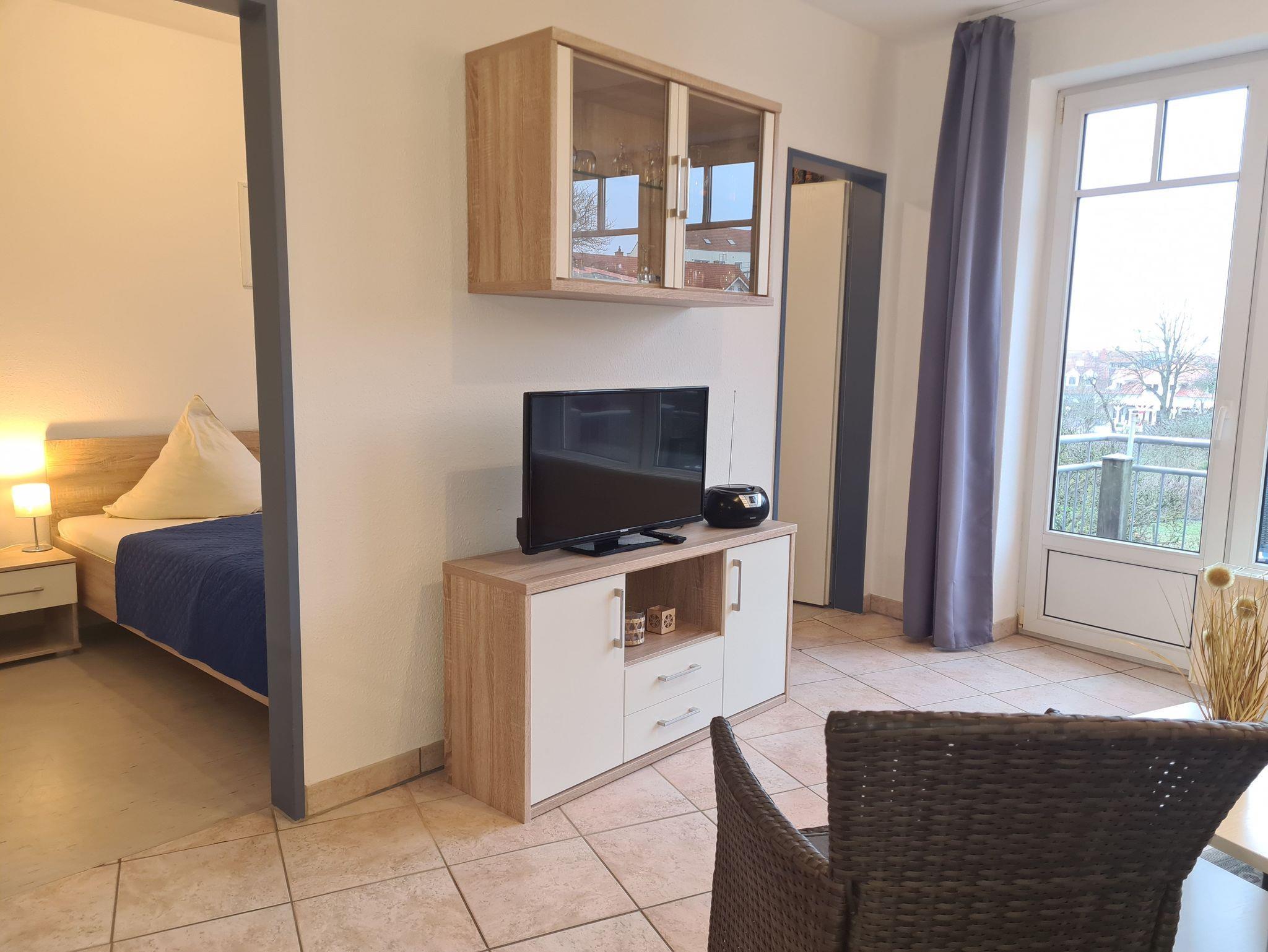 Komfortable 2-Raum-Ferienwohnung mit Seeblick und Balkon in Rerik, nahe Ostsee und Strandpromenade.
