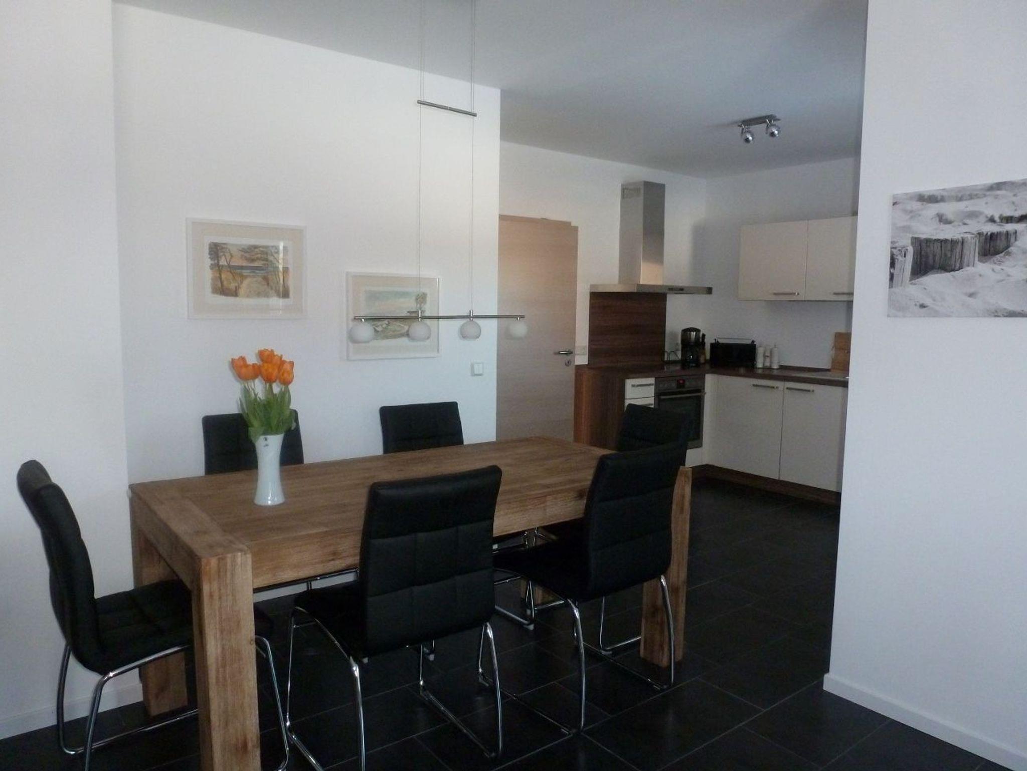 großes Wohnzimmer mit offener Küche, 2 Schlafzimmer, Bad mit Badewanne, Dusche, WC, Sauna, extra Gäste-WC, großer Flur
