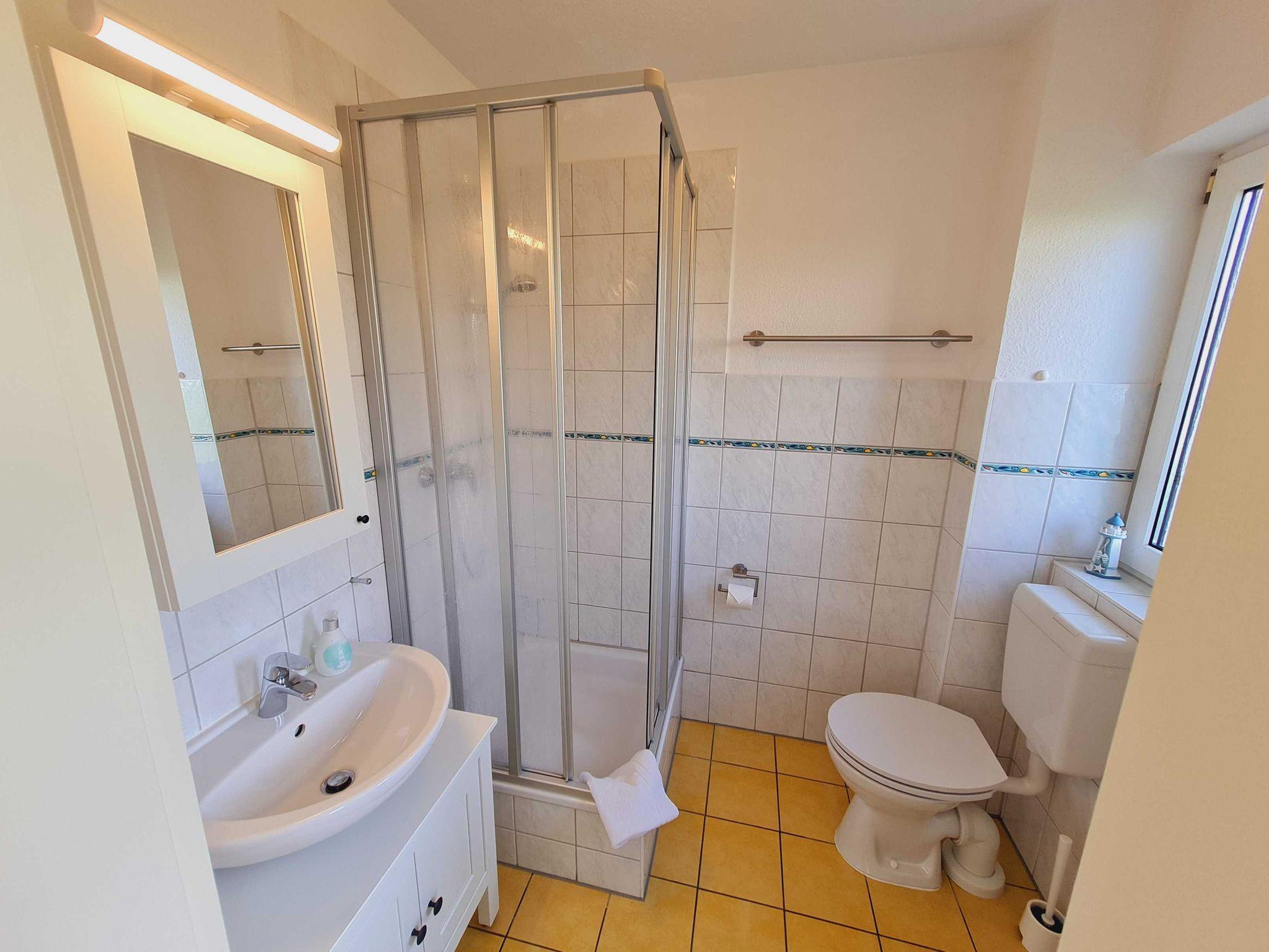 In der oberen Etage können Sie in der Badewanne nach einem ausgiebigen Strandspaziergang an der stürmischen See auch an Wintertagen die Vorzüge Ihrer Ferienwohnung genießen.