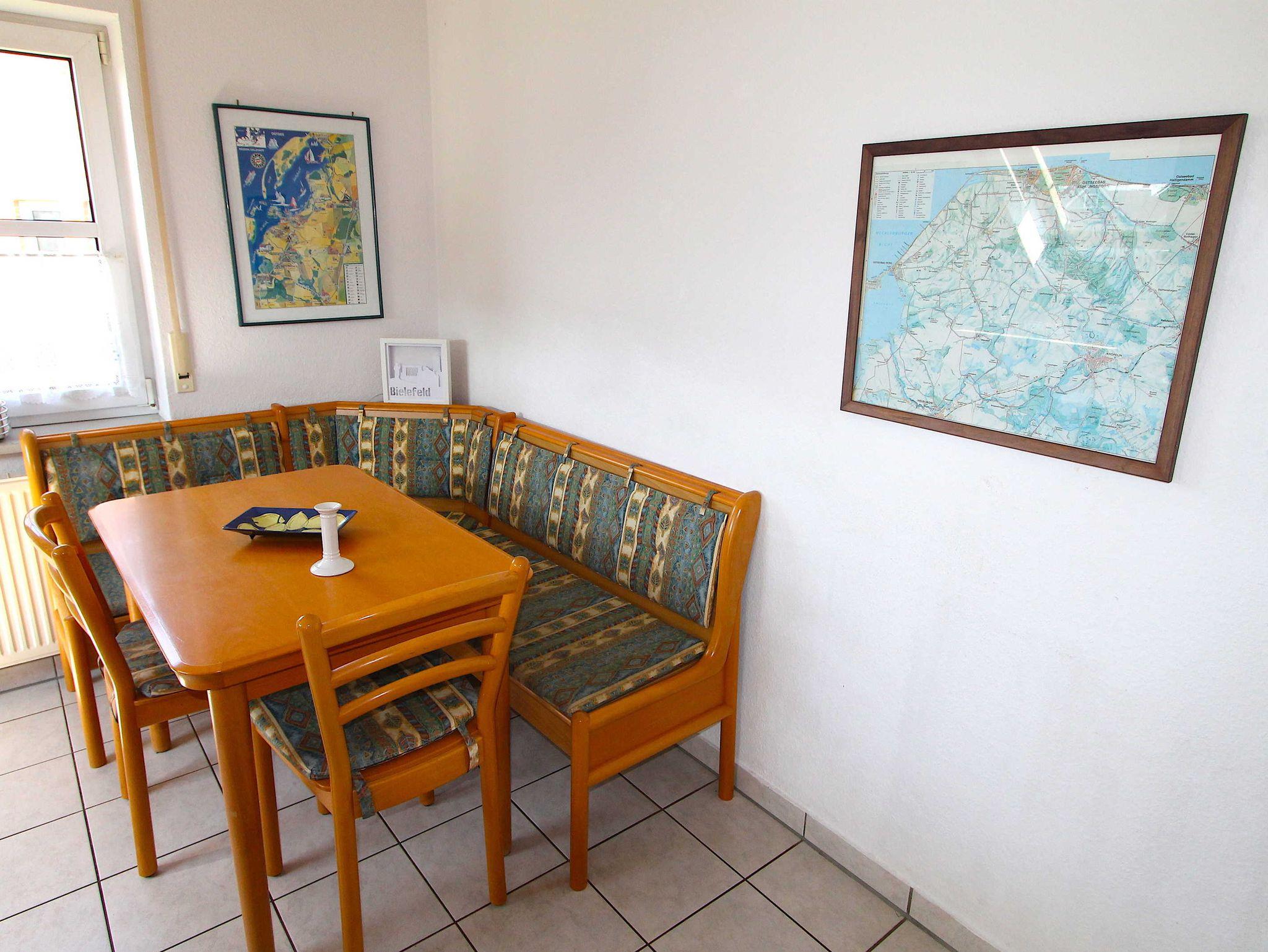 - Küche mit Essecke, Herd- Backofen, Kühlschrank mit Gefrierfach, Geschirrspüler