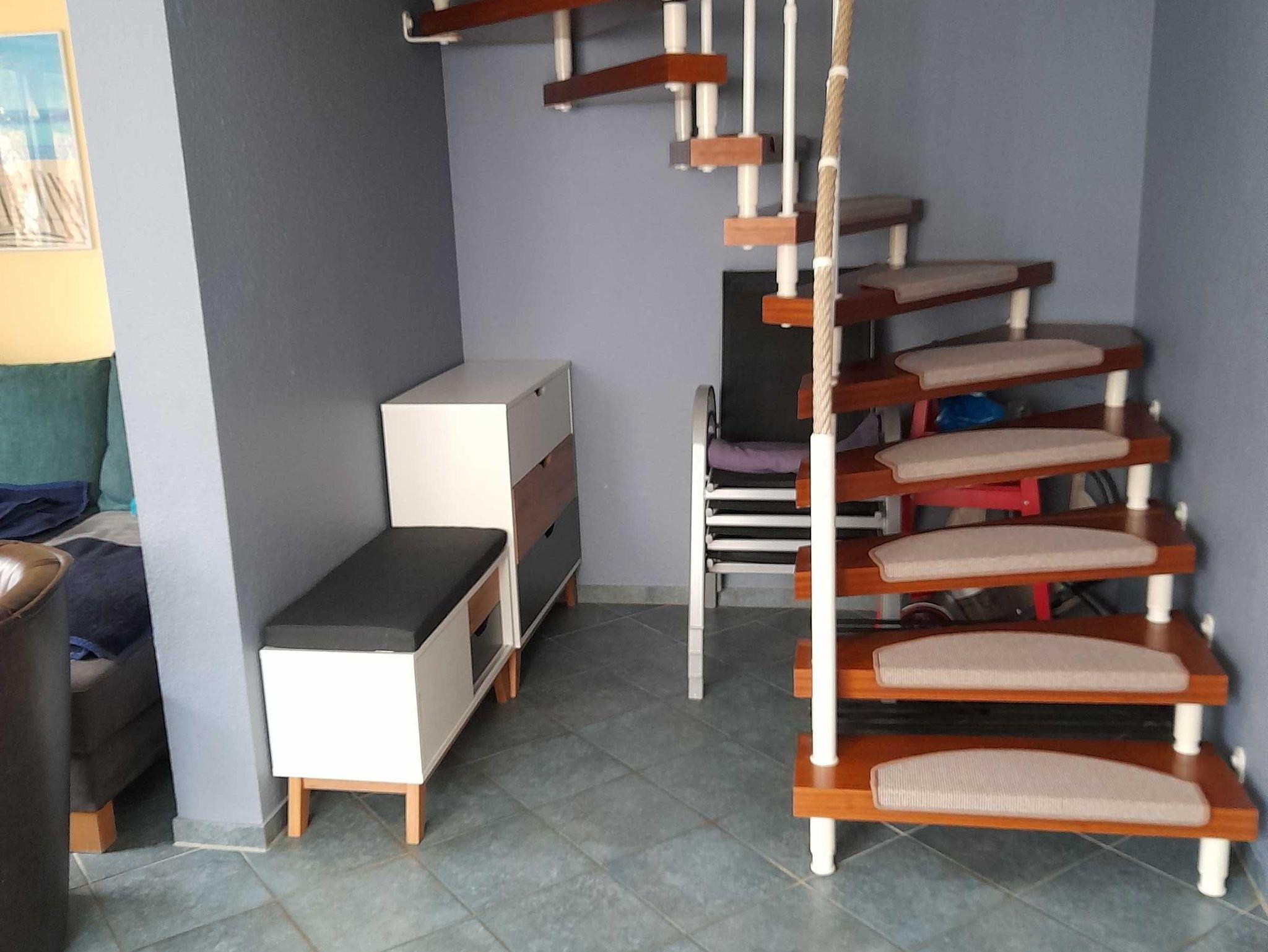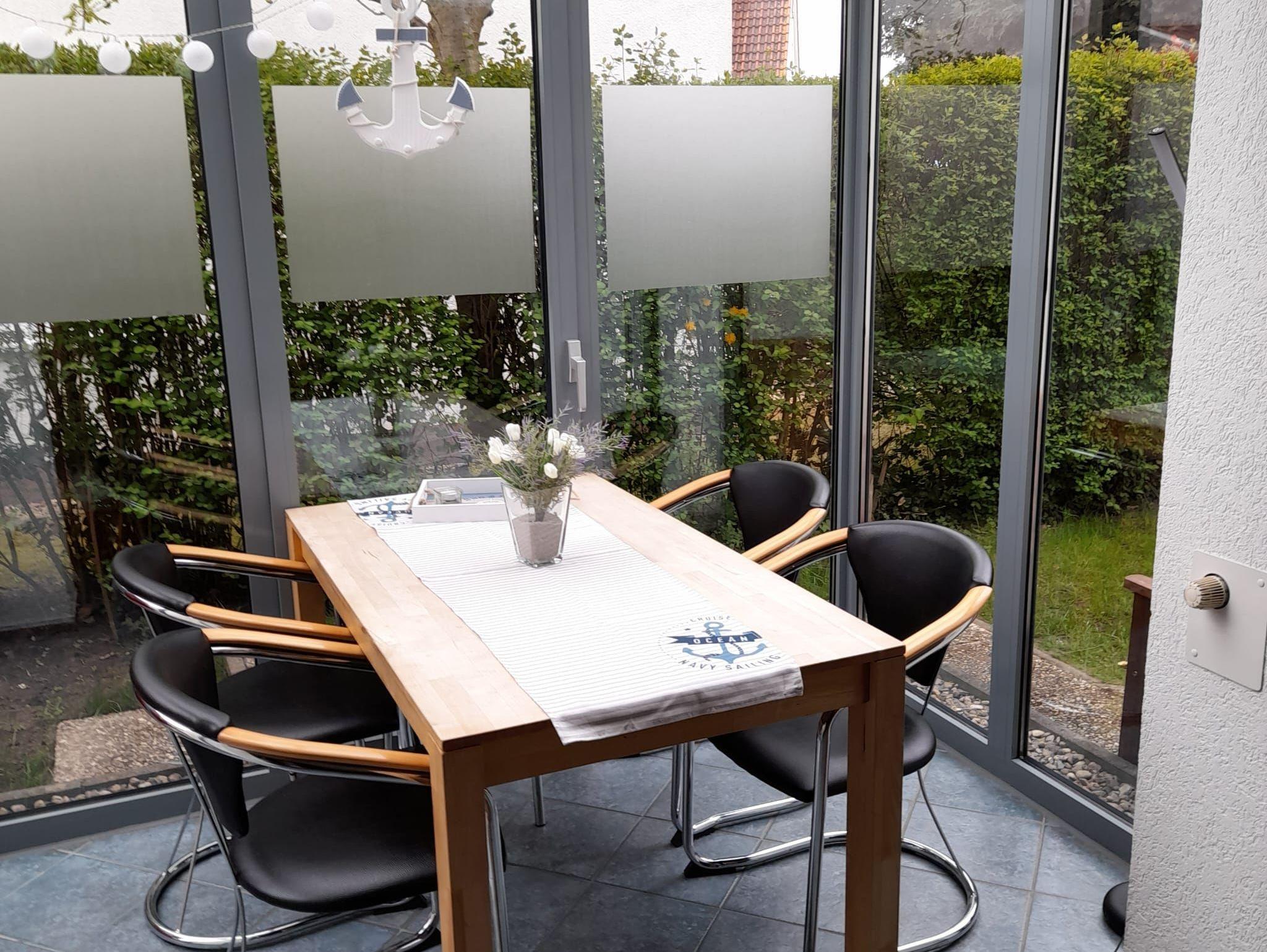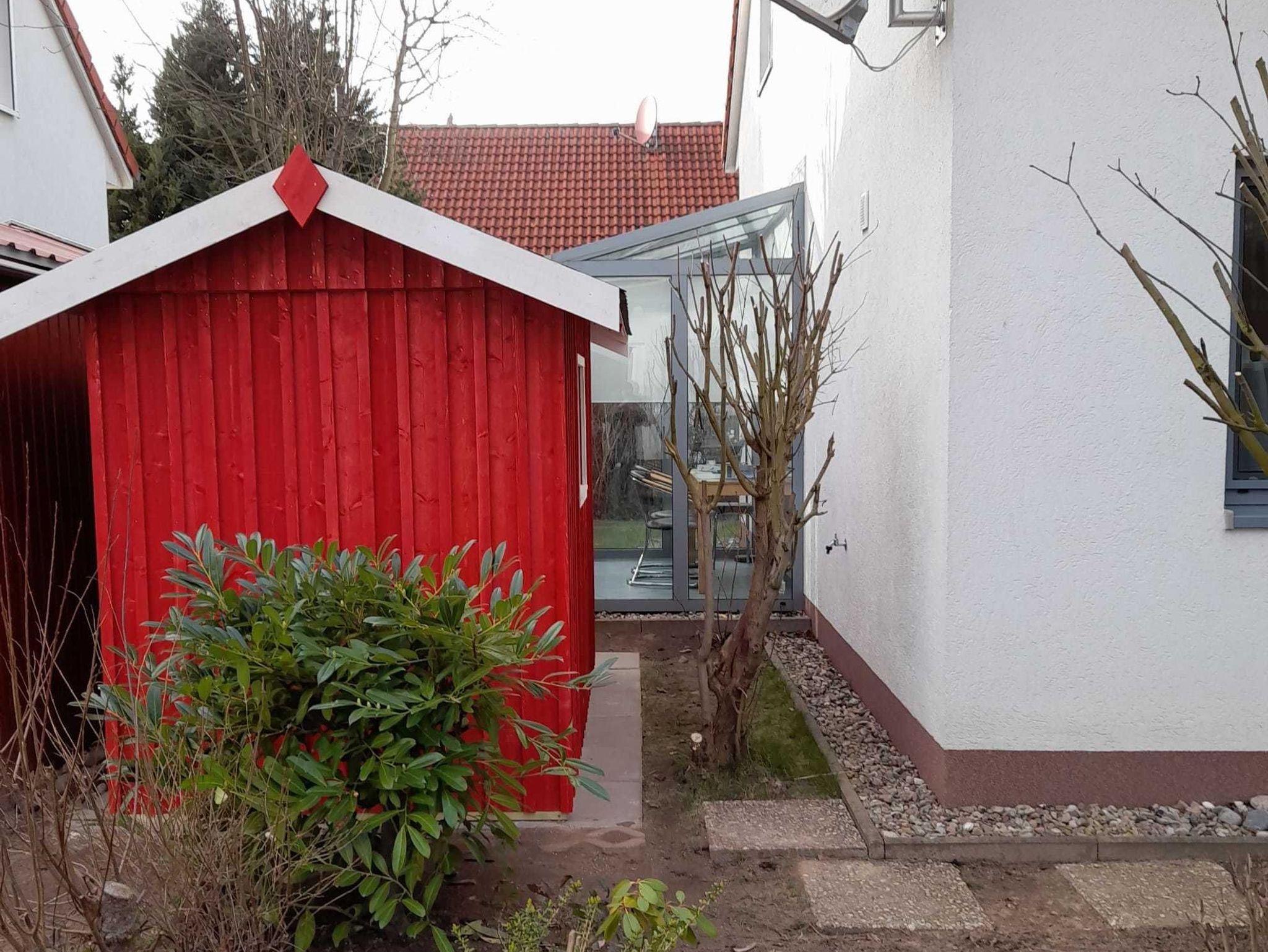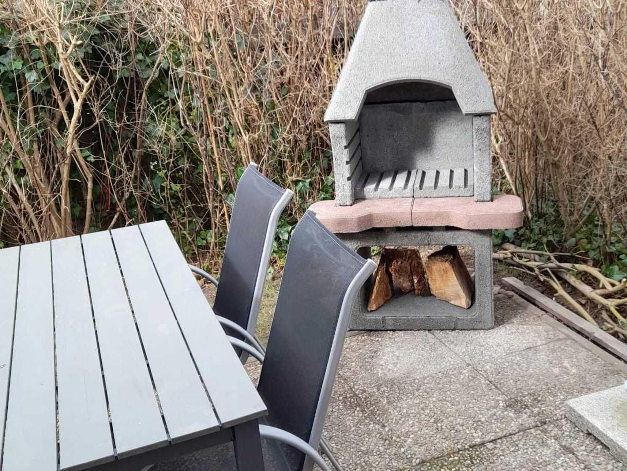 Neben den Schlafzimmern befindet sich im OG ein Duschbad mit WC. Im EG steht Ihnen ein Gäste-WC und der offene Wohnbereich mit einem tollen Winteergarten und einer komplett eingerichteten Küche zur Verfügung. Zum Außenbereich des Hauses gehören ein PKW-Stellplatz und ein Schuppen für Fahrräder. Der kleine von Hecken umfasste Garten mit Terrasse und Grillplatz bietet Ruhe und Erholung. Gartenmöbel und ein Grill sind selbstverständlich vorhanden.