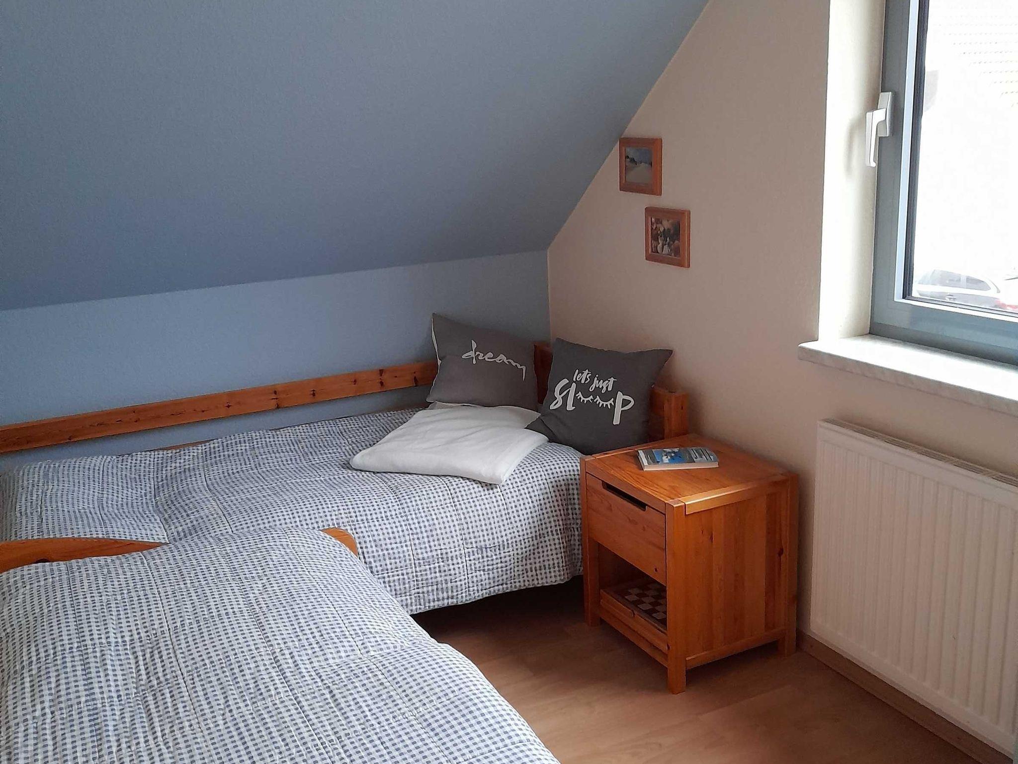 Zwei separate Schlafzimmer mit einem Doppelbett (180x200 cm) bzw. 2 Einzelbetten bieten ausreichend Platz für 4 Personen.