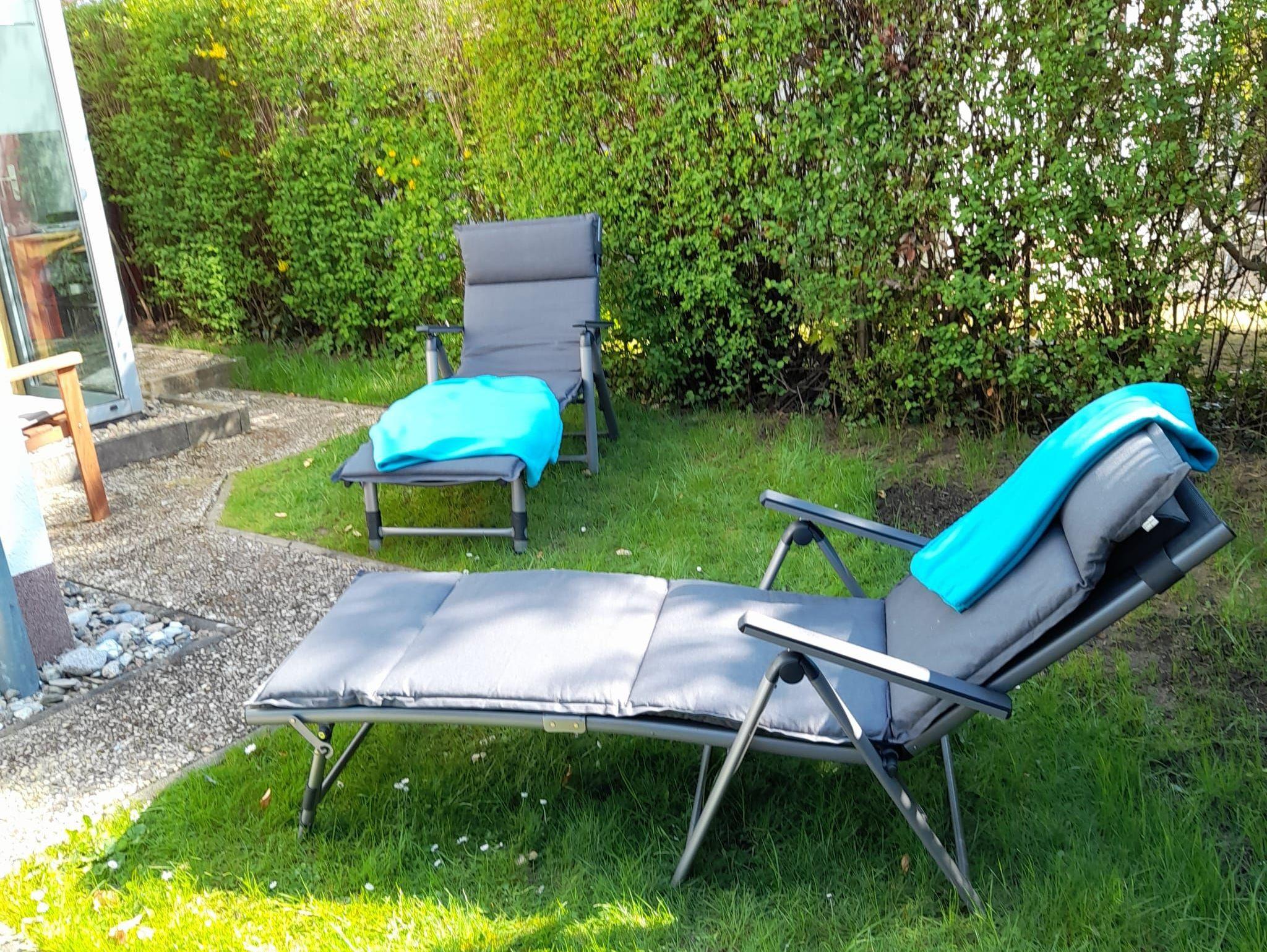 Neben den Schlafzimmern befindet sich im OG ein Duschbad mit WC. Im EG steht Ihnen ein Gäste-WC und der offene Wohn-/Essbereich mit komplett eingerichteter Küche zur Verfügung. Zum Außenbereich des Hauses gehören ein PKW-Stellplatz und ein Schuppen. Der kleine von Hecken umfasste Garten mit Terrasse und Grillplatz bietet Ruhe und Erholung. Gartenmöbel und zwei Liegen sind zum relaxen vorhanden.