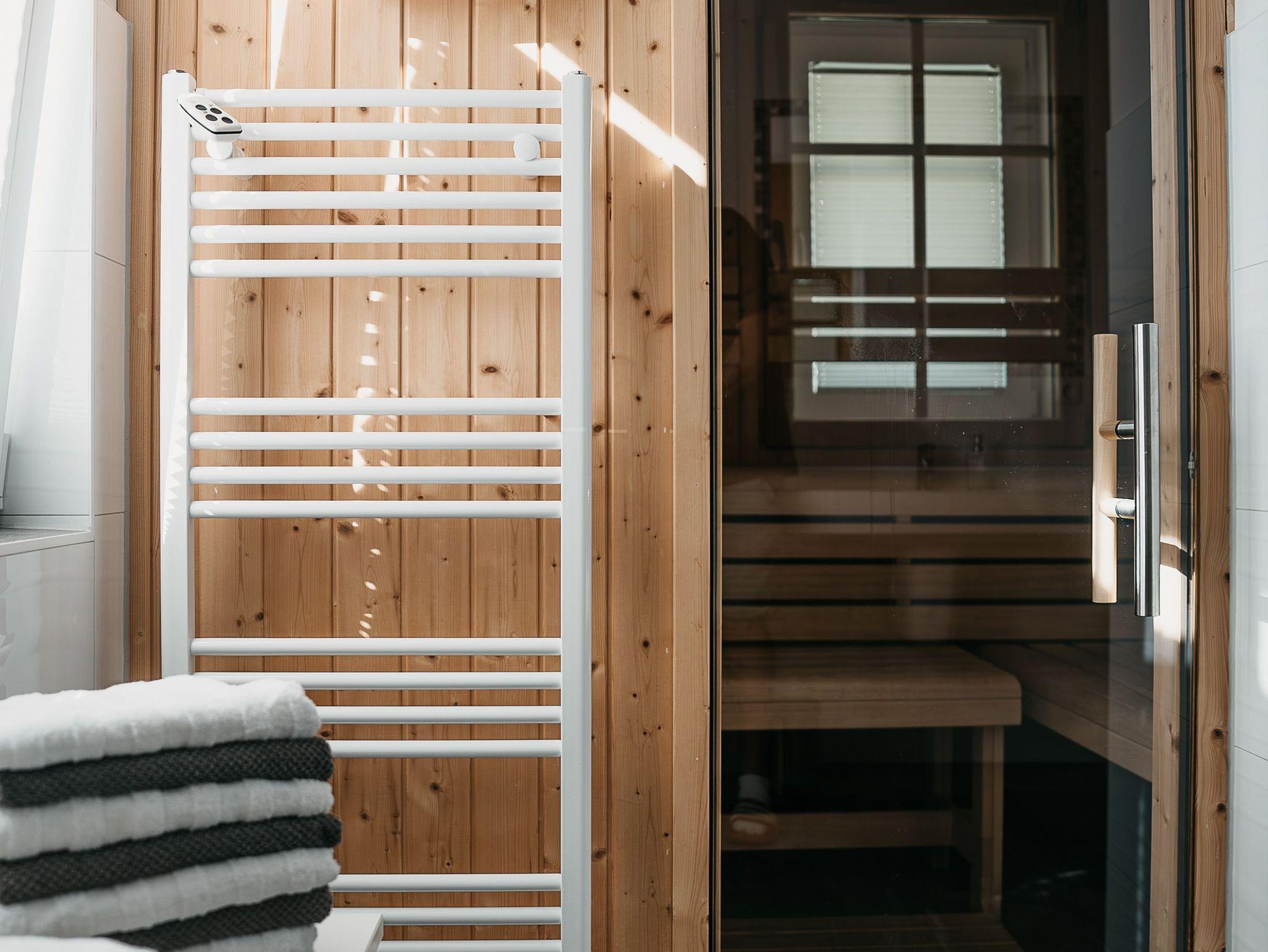 Das hat 2 Bäder, im Erdgeschoss befindet sich ein Saunabad mit einer bodengleicher freibegehbarer Dusche. Das exklusive Bad im ersten 1.EG mit Badewanne, bodengleicher Dusche lädt zum relaxen ein.