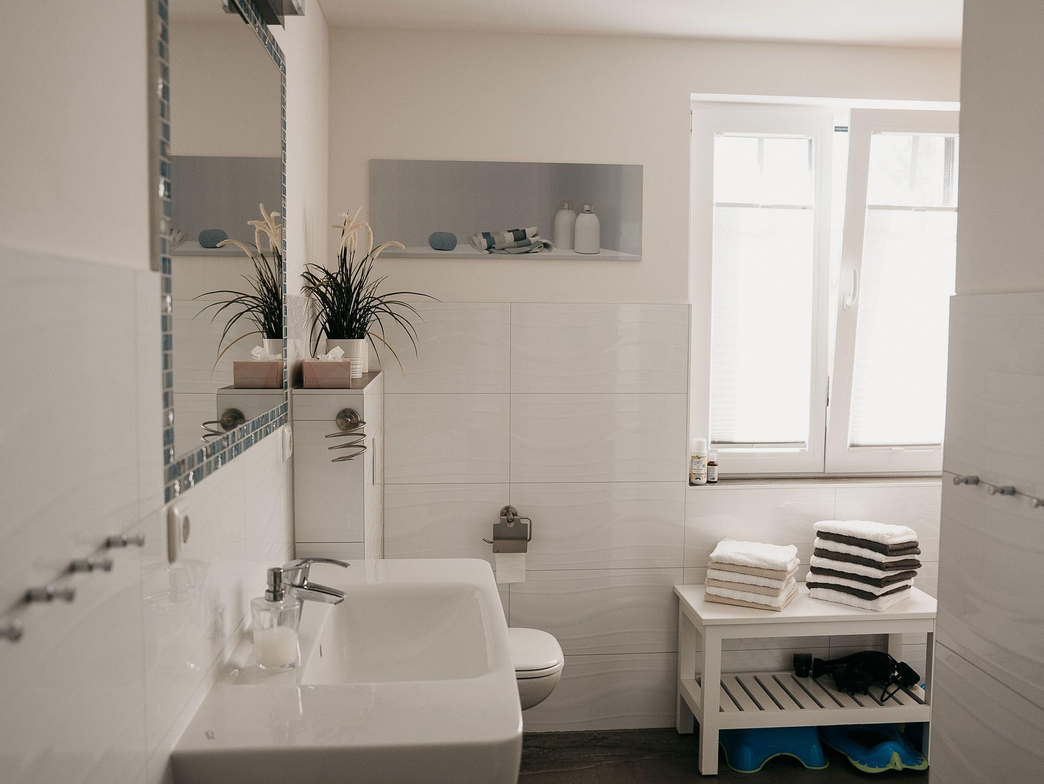 Das Haus hat 2 Bäder, im Erdgeschoss befindet sich ein Saunabad mit einer bodengleicher freibegehbarer Dusche. Das exklusive Bad im ersten 1.EG mit Badewanne, bodengleicher Dusche lädt zum relaxen ein.