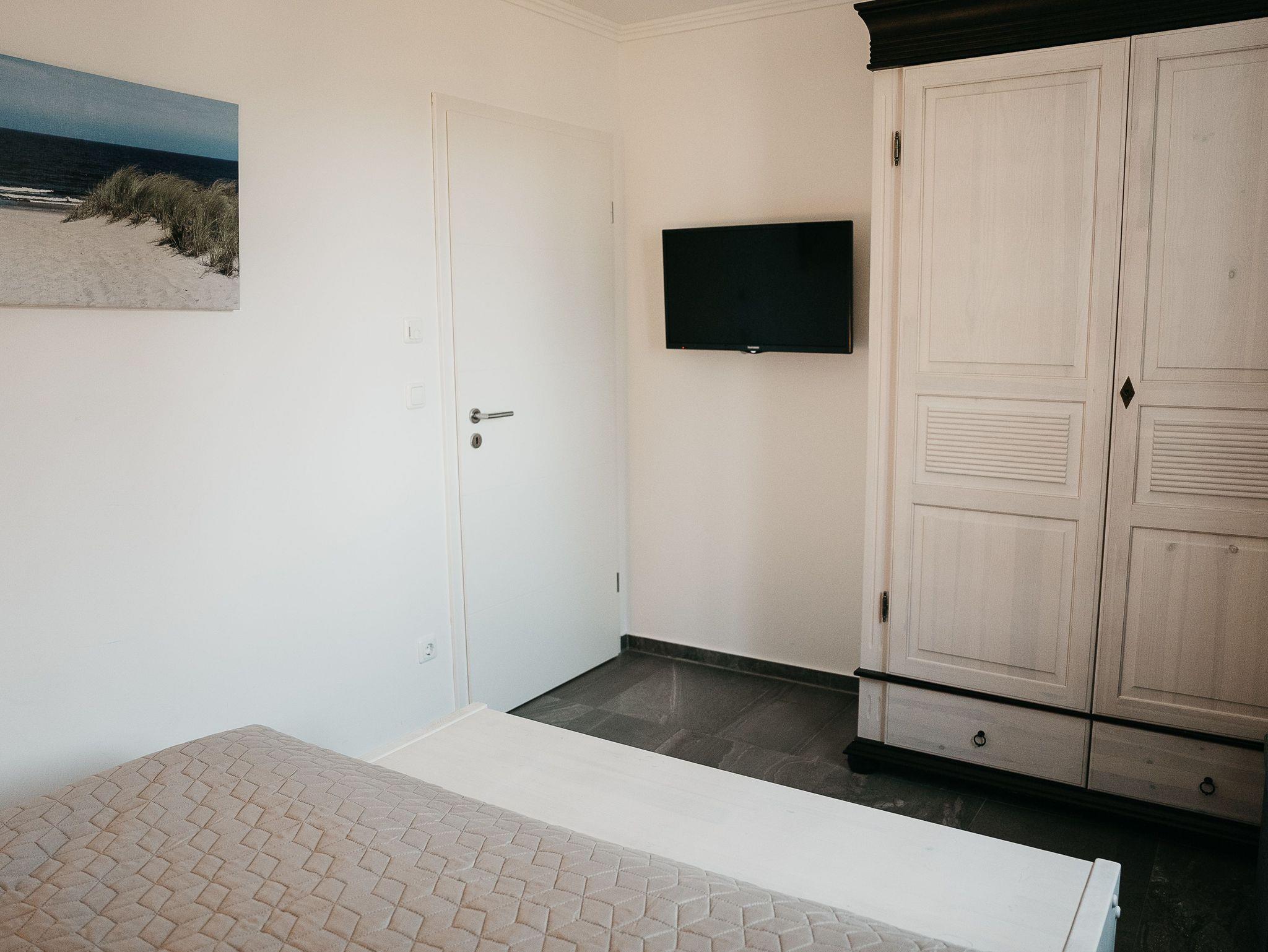 Der Hauseingang befindet sich auf der Nordseite, Sie parken direkt neben dem Haus. Zwei Stellplätze (hintereinander) stehen Ihnen zur Verfügung. Weitere öffentliche Parkplätze können im Osteeferienpark kostenlos genutzt werden. Das Haus hat 5 Schlafzimmer, 4 Schlafzimmer davon haben ein Doppelbett(180x200 cm), Nachtkonsolen, Kleiderschrank und eine Sat-TV Anlage. 1 Schlafzimmer hat zwei Einzelbetten (90x200 cm) sowie ein Schreibtisch und eine Sat- Anlage. Alle Betten sind mit verstellbaren Lattenrost an Fuß- und Kopfteil ausgestattet.