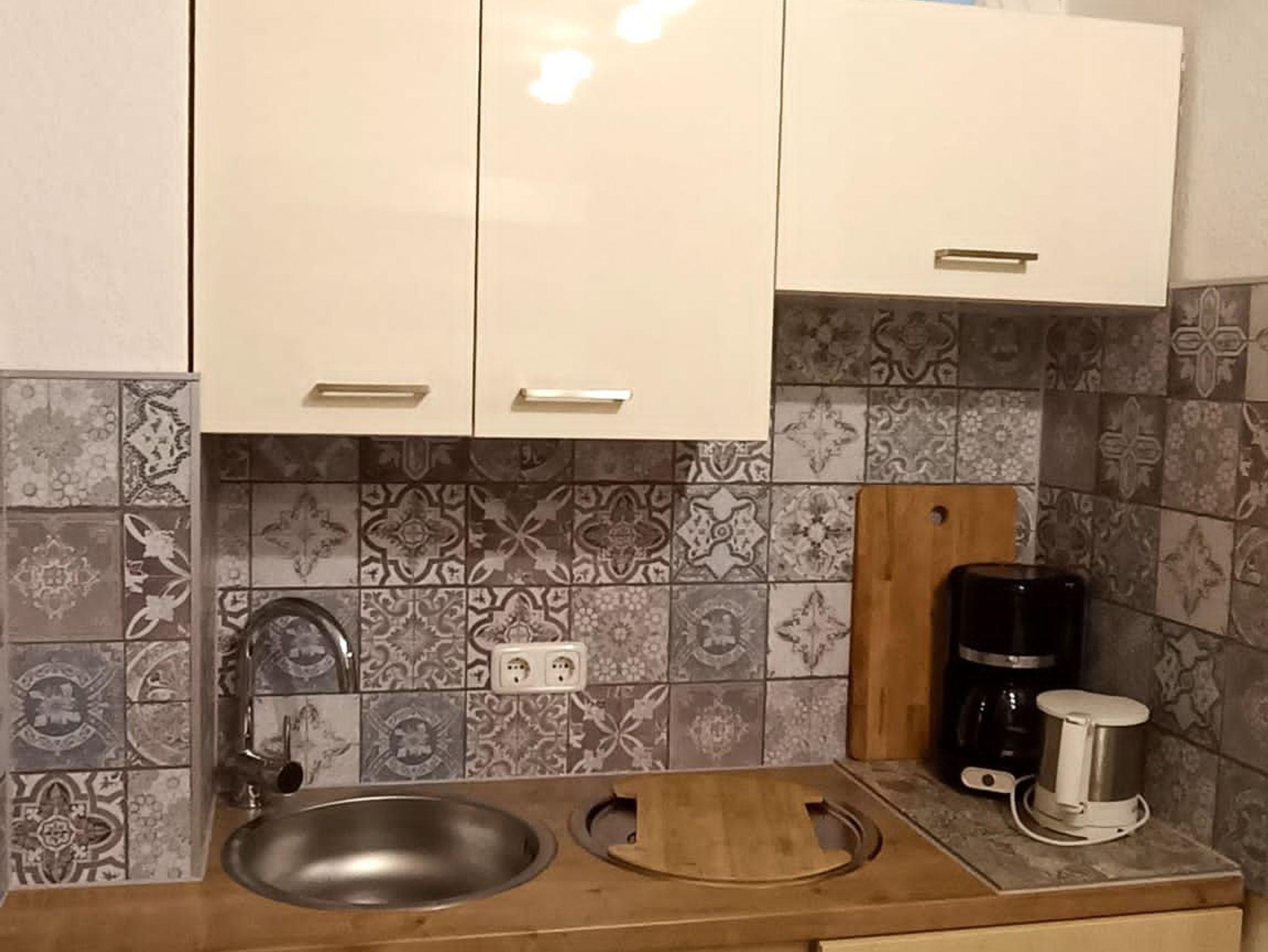Die Küchenzeile ist ausgestattet mit einem kleinen Induktionsherd ( 2 Platten ) Kühlschrank mit einem kleinen Gefrierfach, Kaffeemaschine, Toaster und Wasserkocher.
