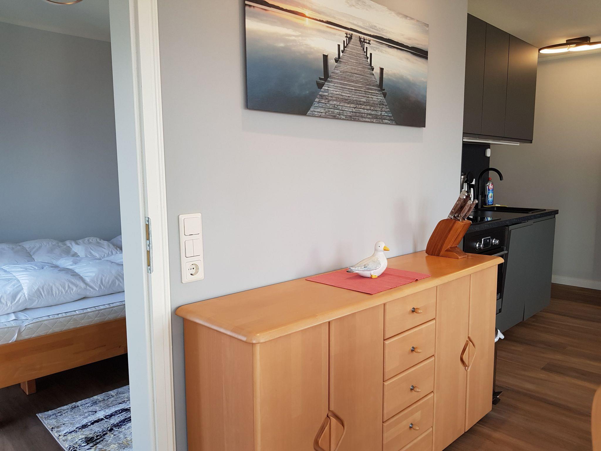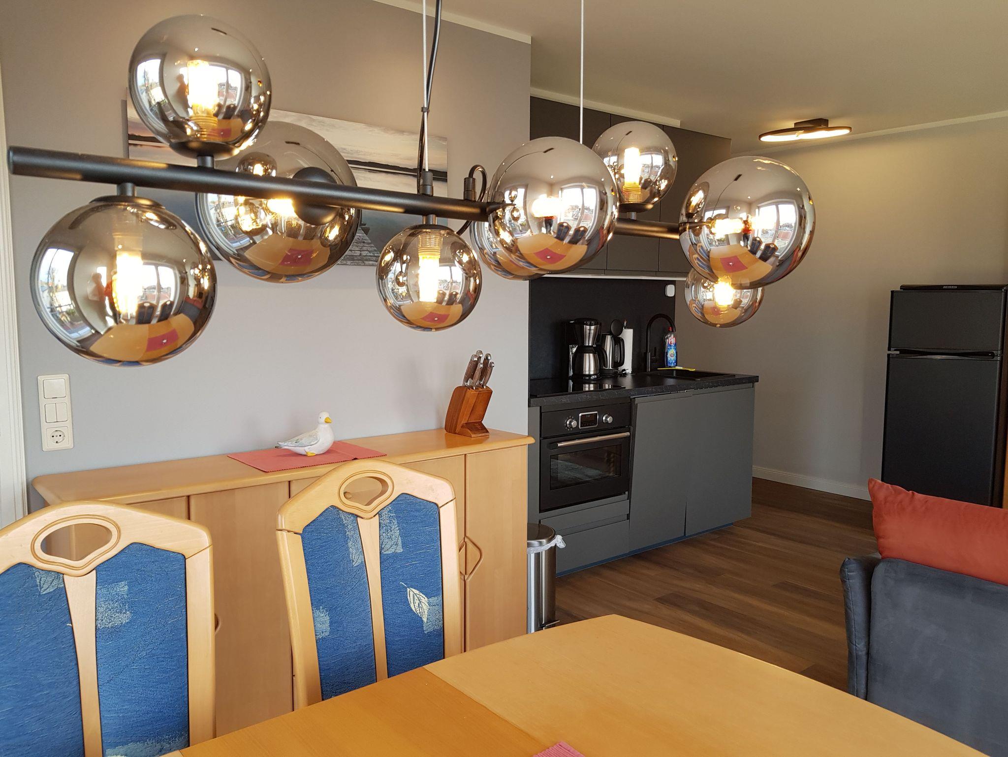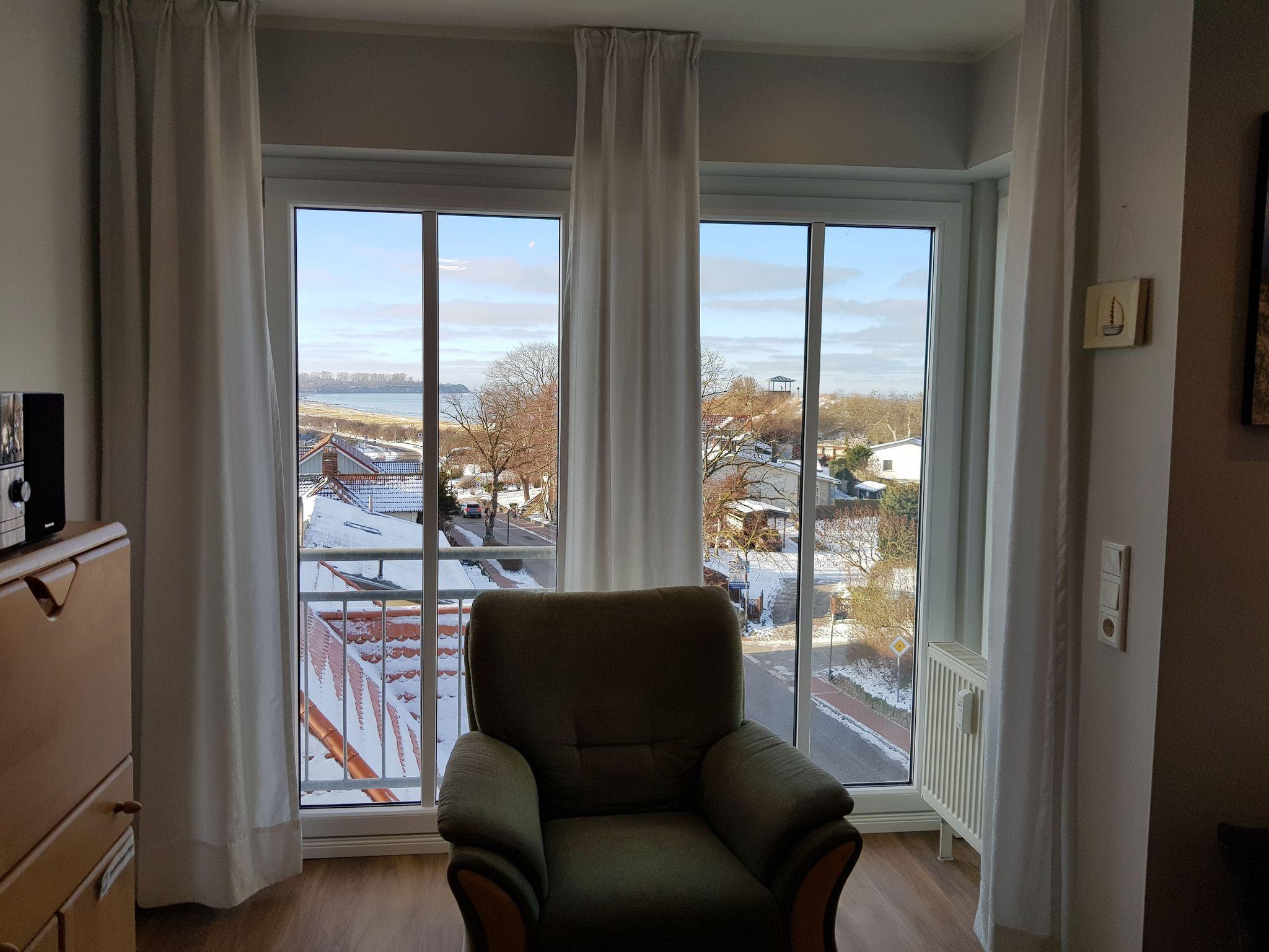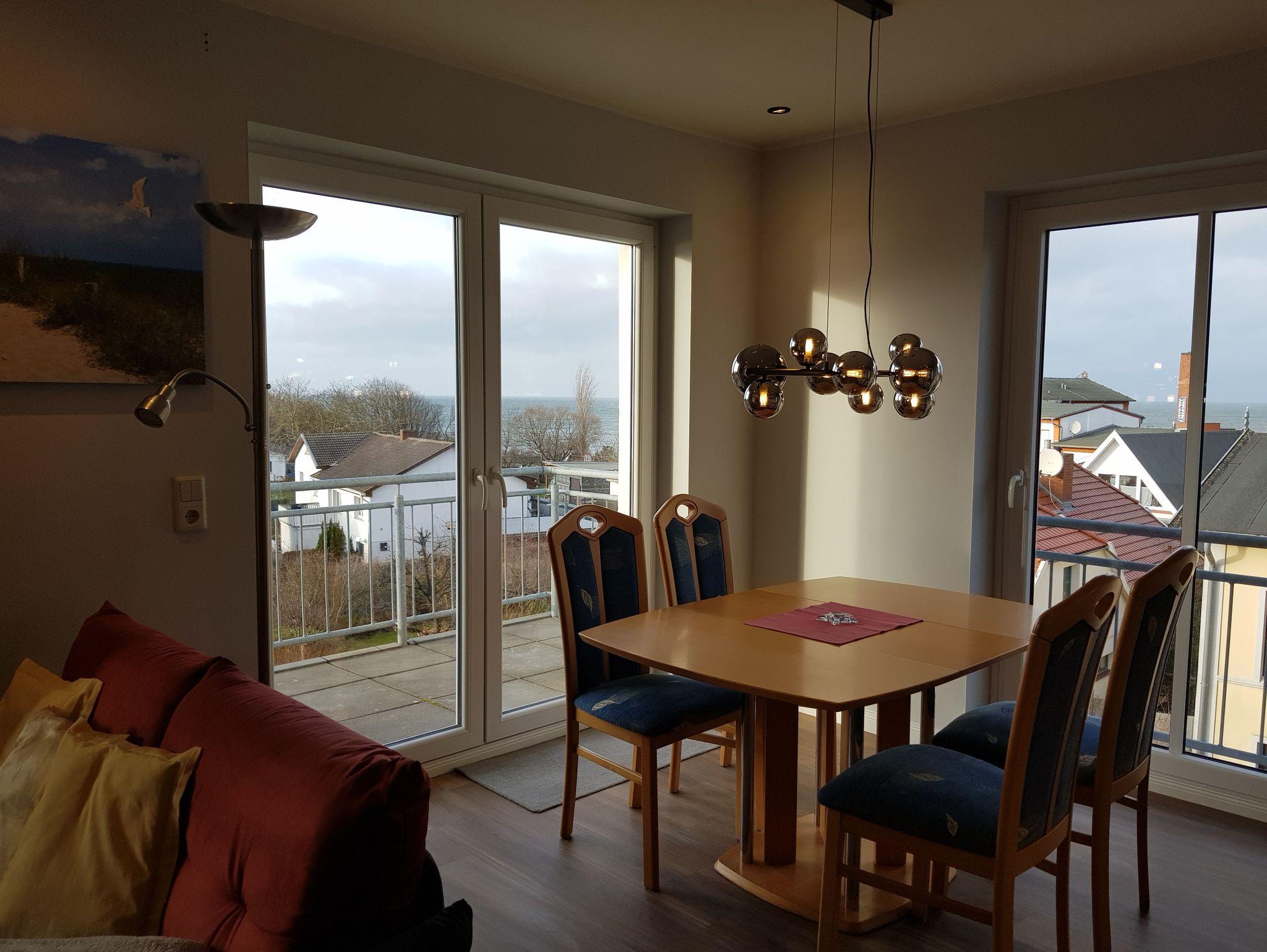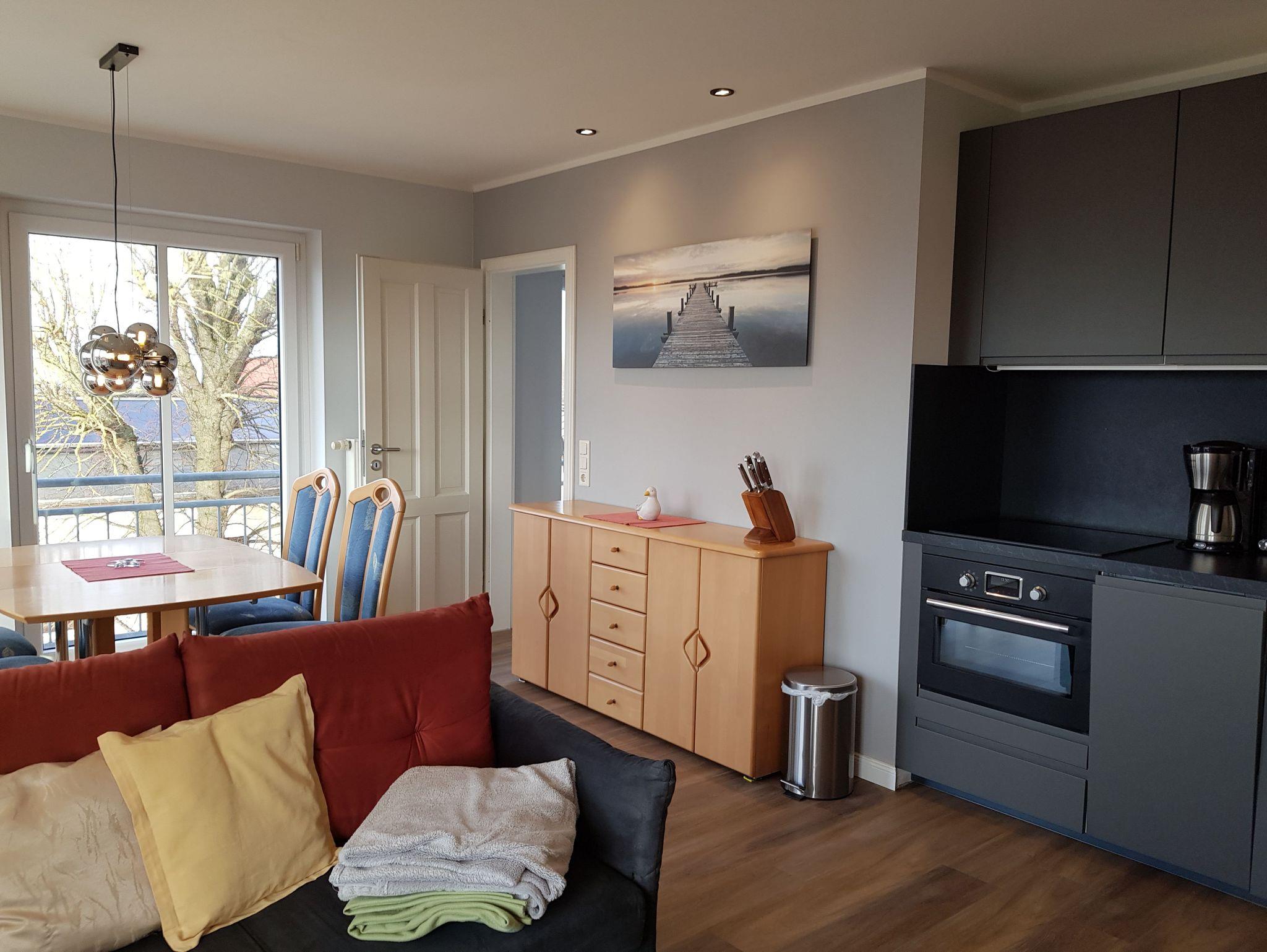 Komfortabel eingerichtete Ferienwohnung im Kurhaus Rerik mit Blick auf Ostsee und Salzhaff. Zur Ausstattung gehören WLAN, Geschirrspüler, Backofen mit Mikrowelle, Waschmaschine, LED SAT-TV inkl. Blue Ray-Player , Radio/CD