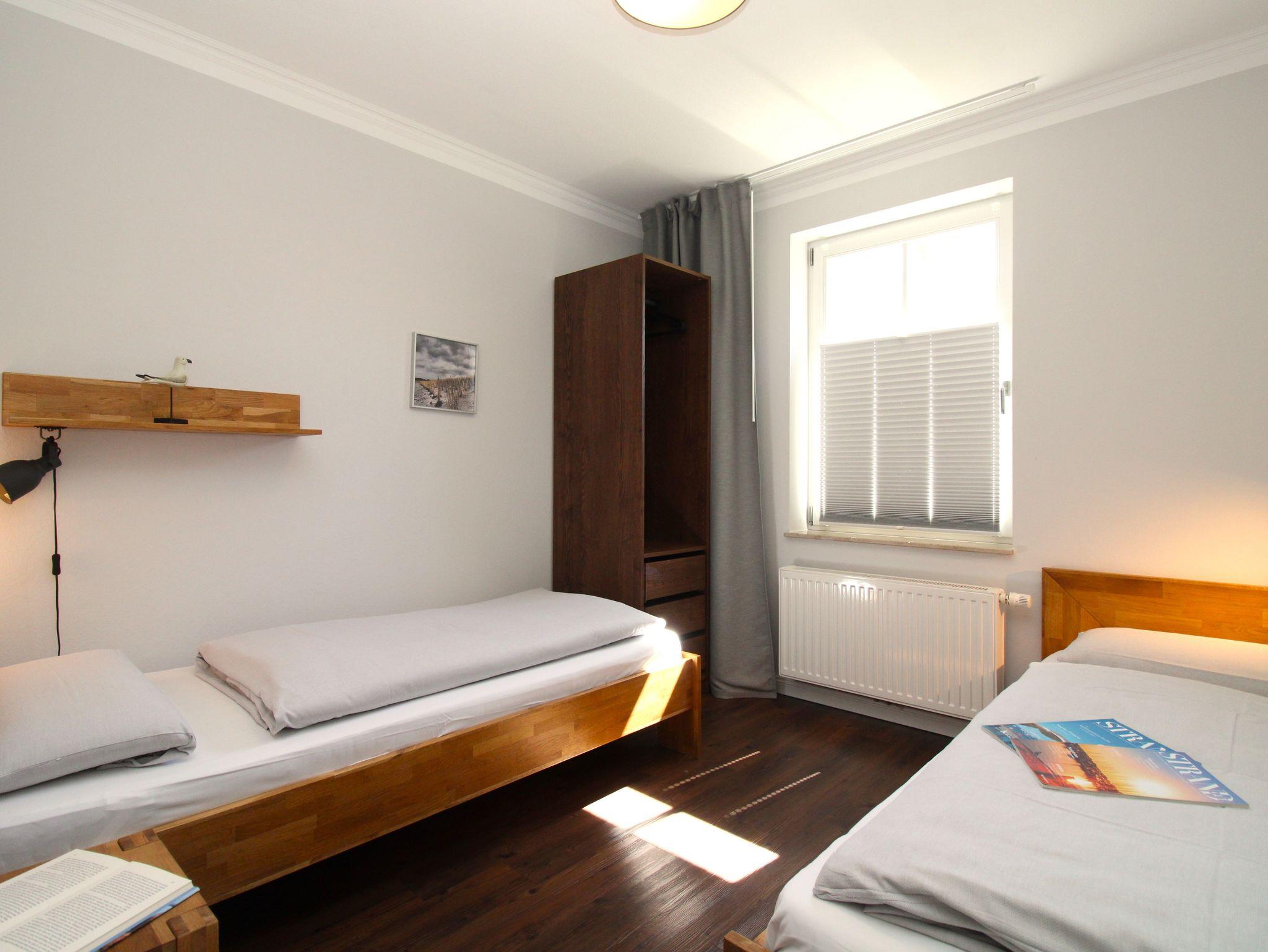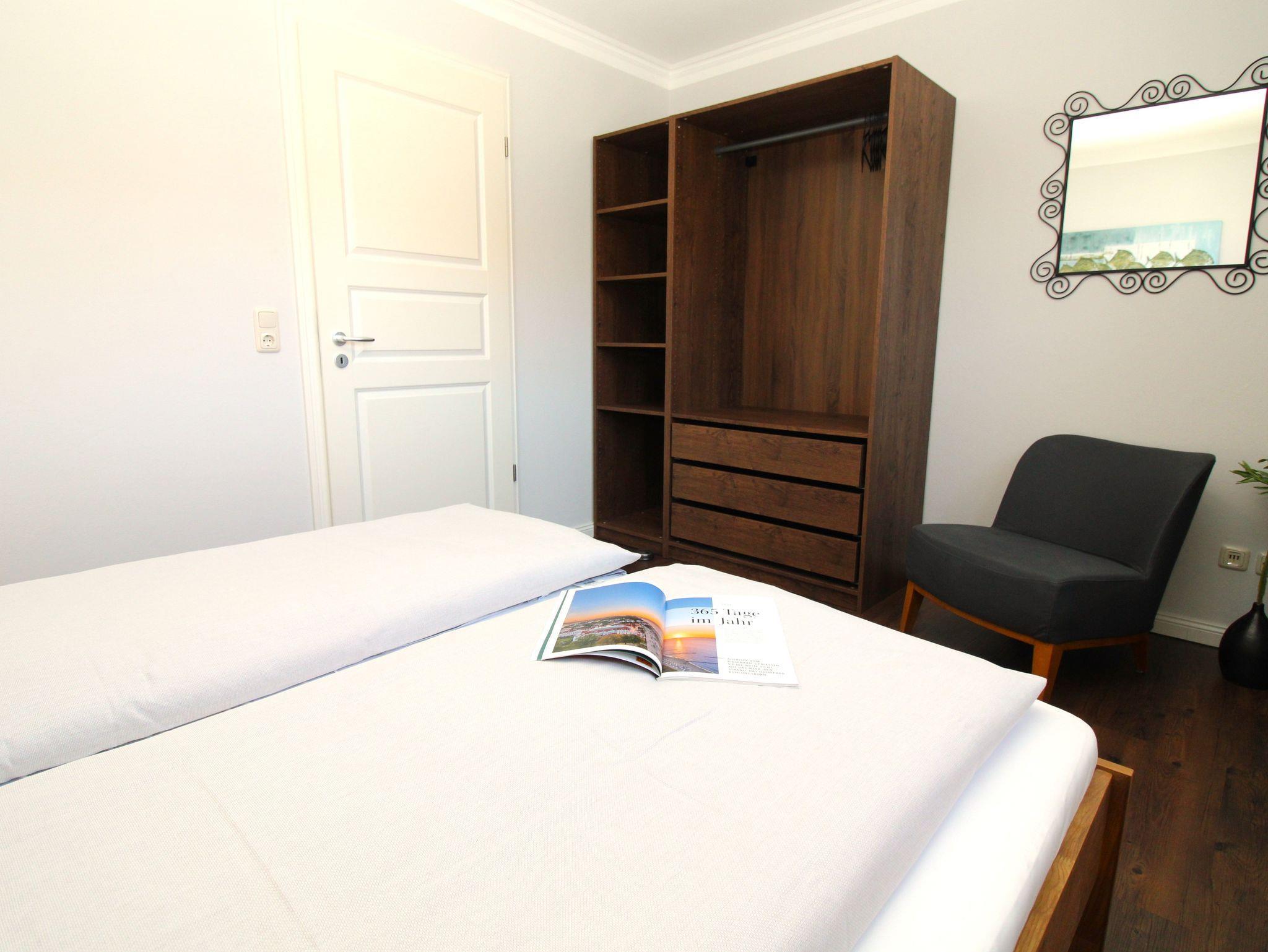 Im großen Schlafzimmer I befindet sich ein Doppelbett (180x200 cm) und im Schlafzimmer II, zwei Einzelbetten (jeweils 90x200 cm).