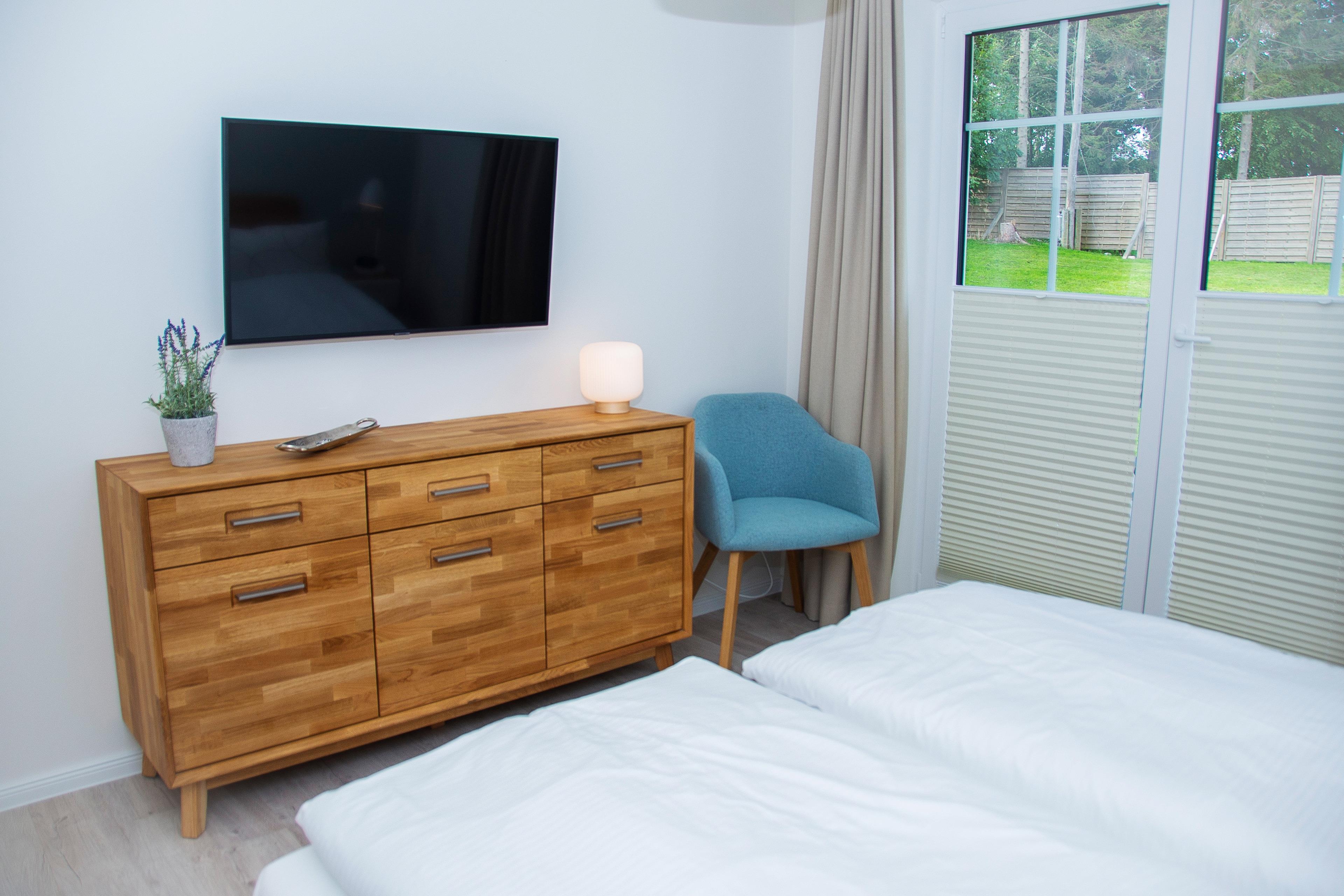Ihr Domizil beherbergt 2 SCHLAFZIMMER. Eines ist mit einem Doppelbett (180x200 cm), das andere mit einem Einzelbett (90x190 cm) sowie jeweils einem großen Kleiderschrank ausgestattet. Flachbild-TV und LAN-Anschlüsse sind ebenfalls vorhanden. Das Sofa im Wohnbereich kann als Aufbettung für die 4. Person (150x200 cm) genutzt werden. Ein Kinderreisebett, eine Kindersitzerhöhung sowie ein Kinderhochstuhl stehen zur Verfügung.