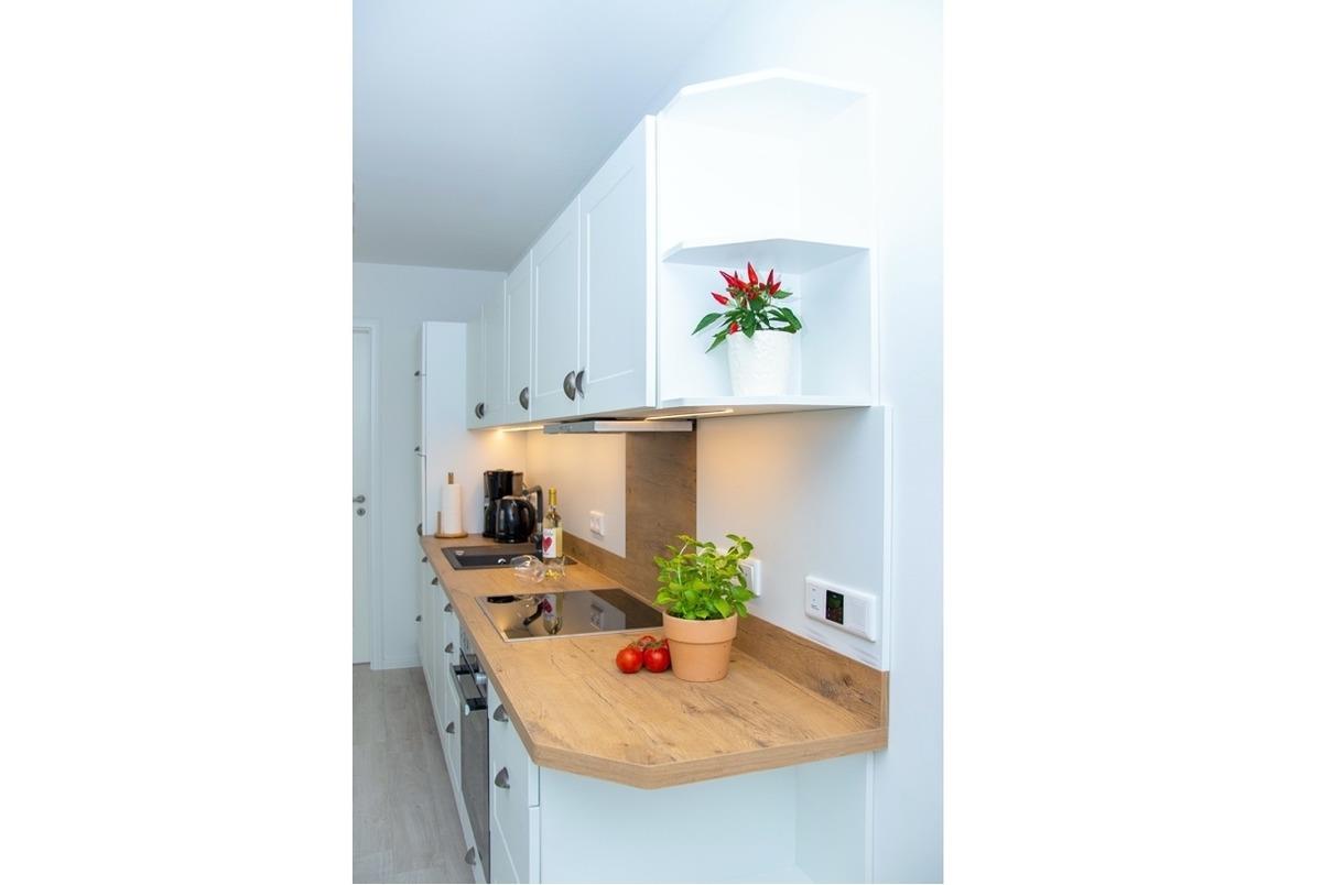 Die offene KÜCHE im Landhausstil lässt keine Wünsche offen. Zur technischen Ausstattung gehören Backofen, Spülmaschine, 4er- Cerankochfeld, Kühlschrank mit Gefrierfach, Mikrowelle, Kaffeemaschine, Toaster und Wasserkocher. Dazu gesellen sich zahlreiche Kochutensilien. Die zubereiteten Speisen servieren Sie am Esstisch mit 4 Stühlen. Dieser eignet sich auch hervorragend für einen Spieleabend.