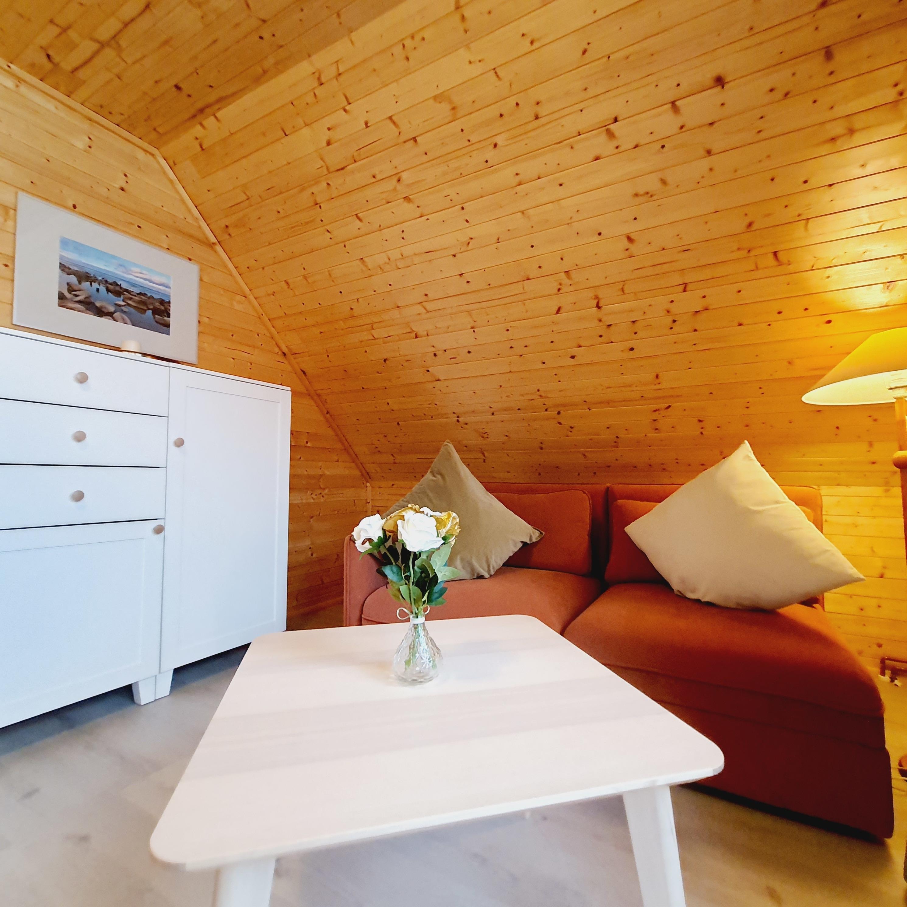 Die ruhige, sonnige und naturgebundene Lage am Landschaftsschutzgebiet Kühlung bietet eine gute Sicht auf die umliegenden Wiesen und Felder. Im Dachgeschoß öffnet sich der Blick über die anliegenden Wälder, Pferdekoppel und Ferienhaussiedlung und auf die nur wenige Meter entfernten Rad und Wanderwege so wie Wälder. Das Ferienhaus Ostseeperle verfügt über eine moderne, hochwertige Ausstattung und bietet viel Platz für 2 bis 6 Personen (2 Doppelbetten, 1 Einzelbett und ein Babybett.