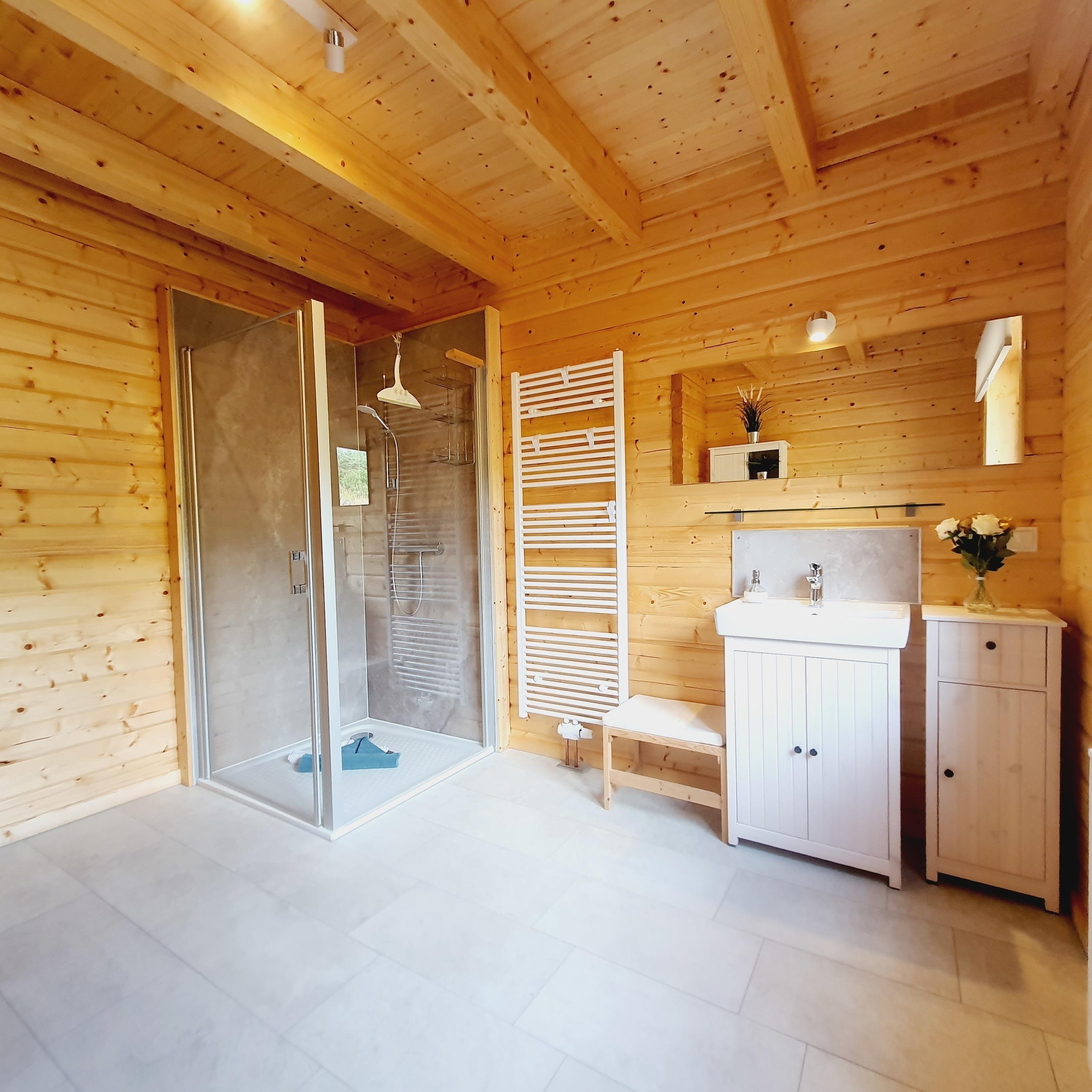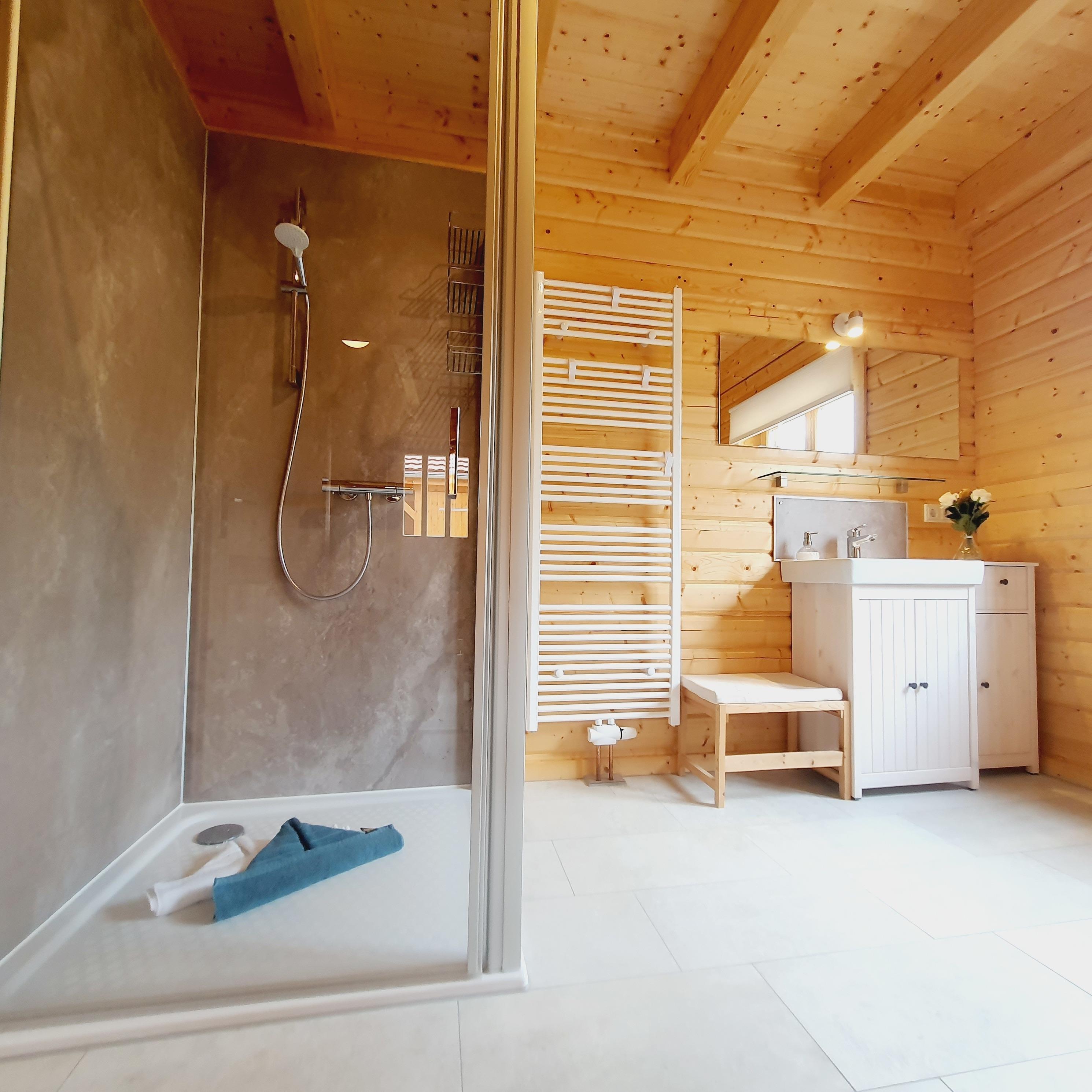 Badezimmer 1 Dusche (ebenerdige Dusche), Waschbecken, Toilette, Föhn