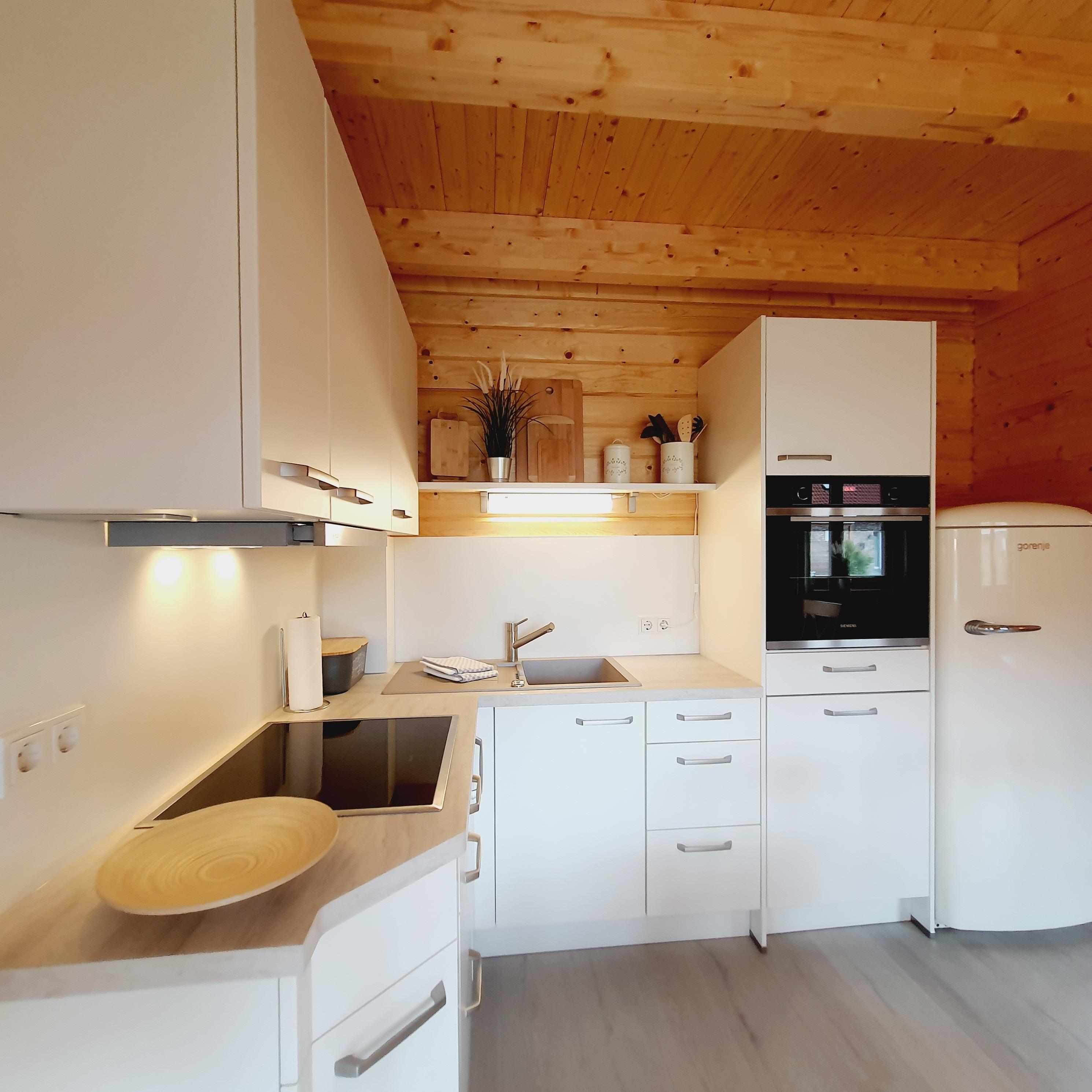offene Küche 1 Esstisch (6 Personen), Radio, Wasserkocher, Toaster, Kochfeld, Dunstabzugshaube, Kaffeemaschine, Backofen, Spülmaschine, Kühlschrank (+ Gefrierfach)